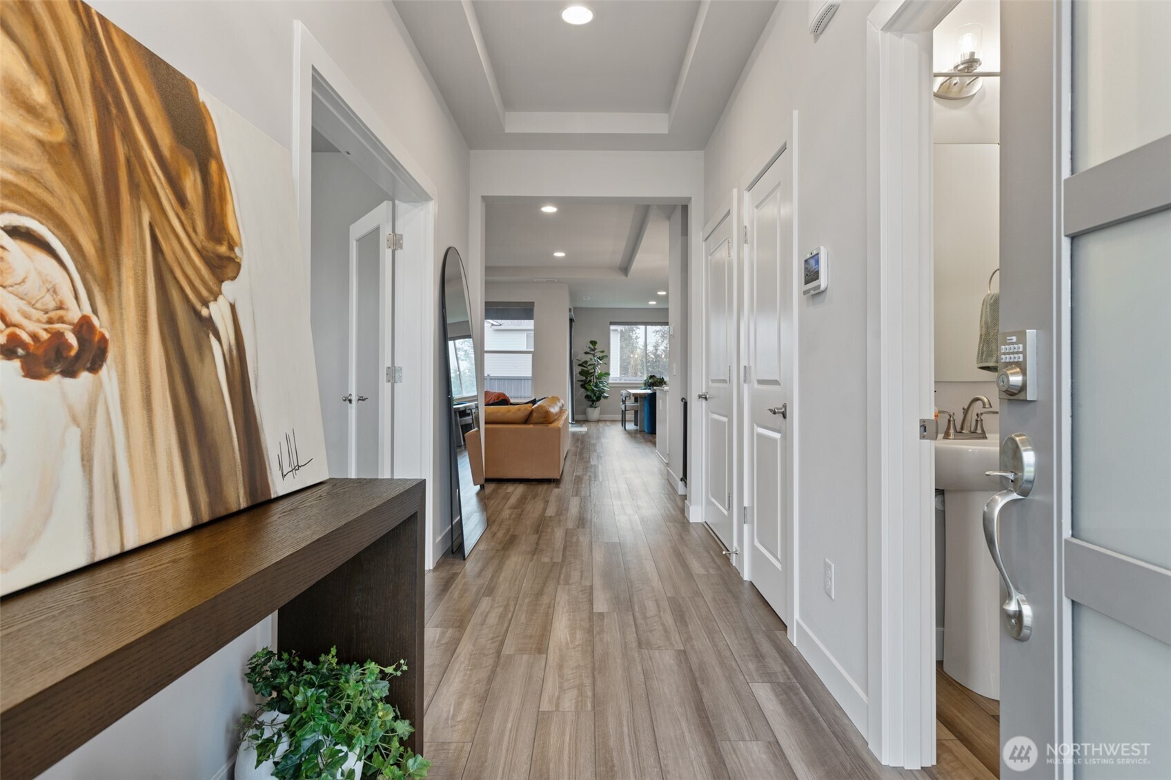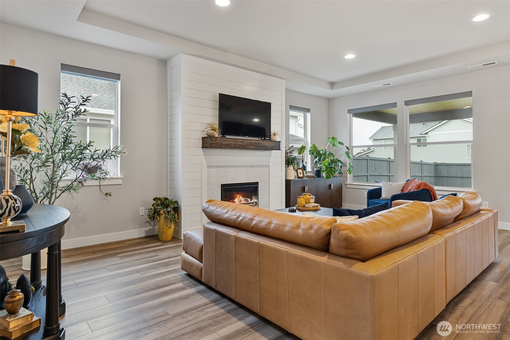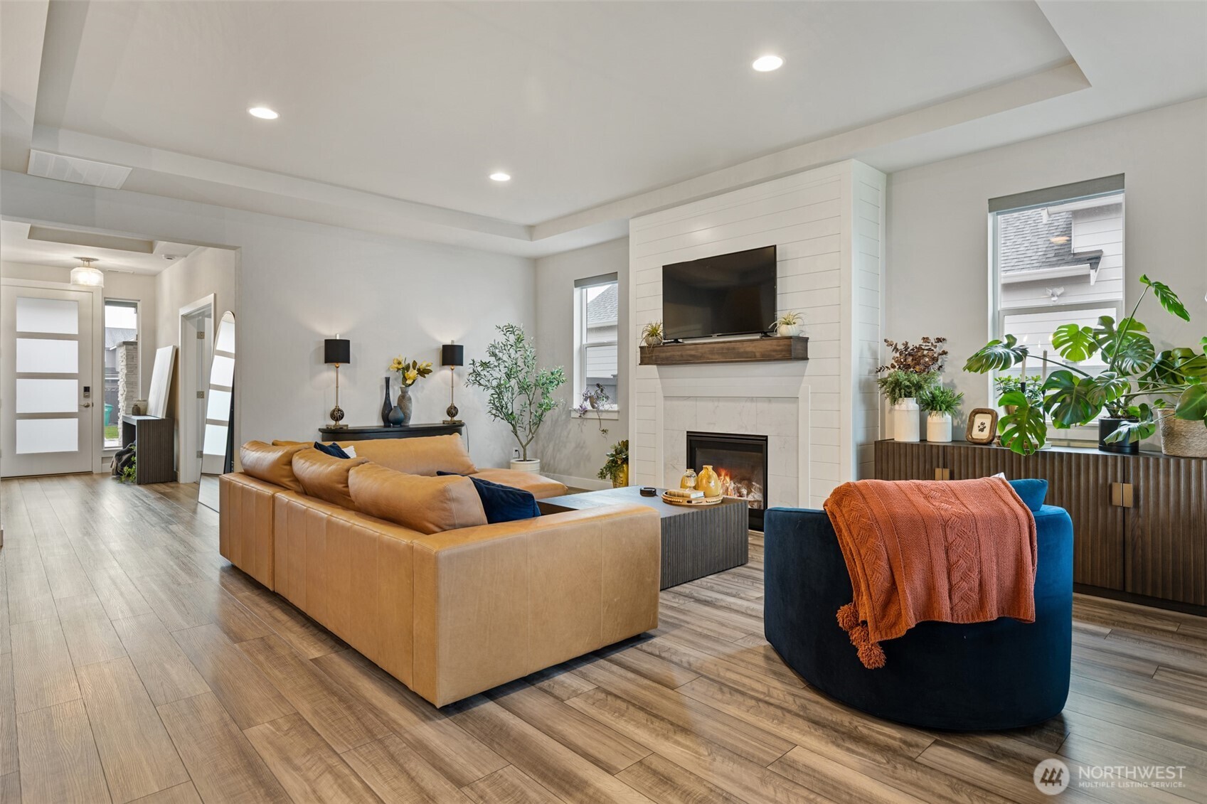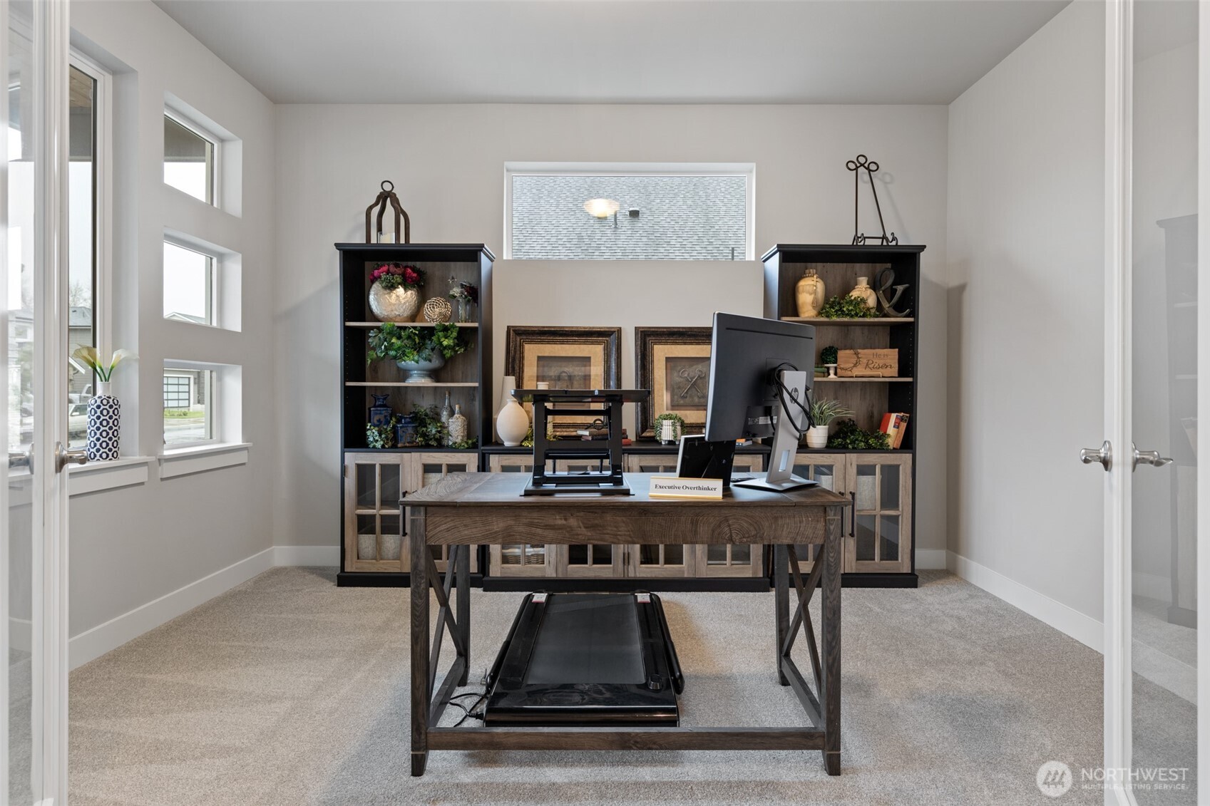 Nestled in the foothills near downtown Enumclaw, this barely lived-in Pacific Lifestyle Home blends modern comfort with a welcoming community atmosphere. While you're close to town and still in King County, Enumclaw serves as a gateway to mountain adventures - whether hiking, exploring, or simply enjoying the natural beauty nearby. Inside, the main floor primary suite offers a spacious walk-in closet and luxurious five-piece bath. The chef's kitchen includes a gas cooktop, stainless steel appliances, a walk-in pantry, and a casual eat-in area. The dining space, accented by a feature wall, opens onto a covered patio - perfect for year-round enjoyment. Custom blinds provide a polished touch and privacy. The main floor also includes an office with double glass doors. Upstairs, a spacious loft and two oversized bedrooms await. The fully fenced yard is ideal for activities and pets. Enjoy Enumclaw's local charm and the mountain lifestyle right at your doorstep!
