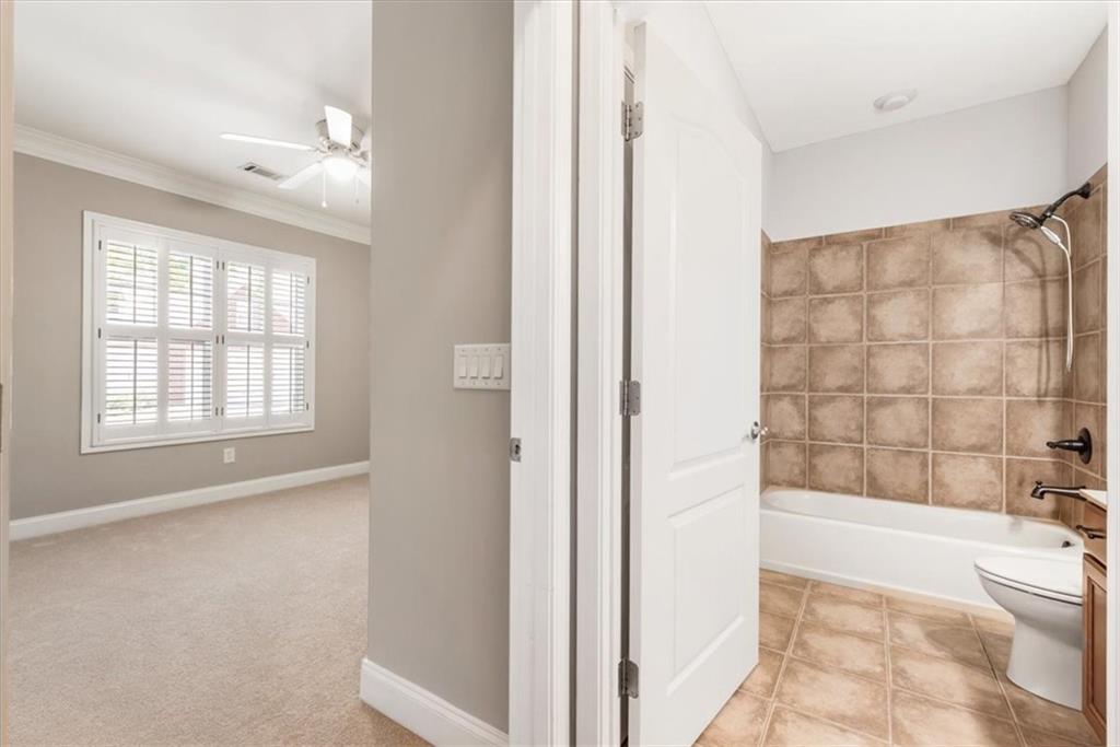 Seasons at Creekside is a charming swim and clubhouse community in an unbeatable location - just minutes from downtown Alpharetta and Crabapple, with an easy walk to Wills Park. This well-maintained end-unit is positioned in the back of the community and offers convenient one-level living. Upon entry, you'll find two secondary bedrooms and a full bath, thoughtfully positioned for privacy. The spacious dining room flows seamlessly into the kitchen, which features granite countertops, a stylish backsplash, and warm wood cabinetry. The fireside family room provides an ideal setting for both everyday living and entertaining. Tucked away at the rear of the home, the private owner's suite includes a cozy sitting area overlooking the courtyard, full bathroom with shower enclosure and walk-in closet. Enjoy year-round relaxation in the All Season room, with direct access to a private outdoor patio. Upstairs offers finished space perfect for home office, bedroom or craft room with half bathroom and closet area. Meticulously maintained, this home also includes updated light fixtures, new carpet and fresh interior paint. Don't miss this rare opportunity to own in a quaint, sought-after community of just 27 homes in the heart of Alpharetta.