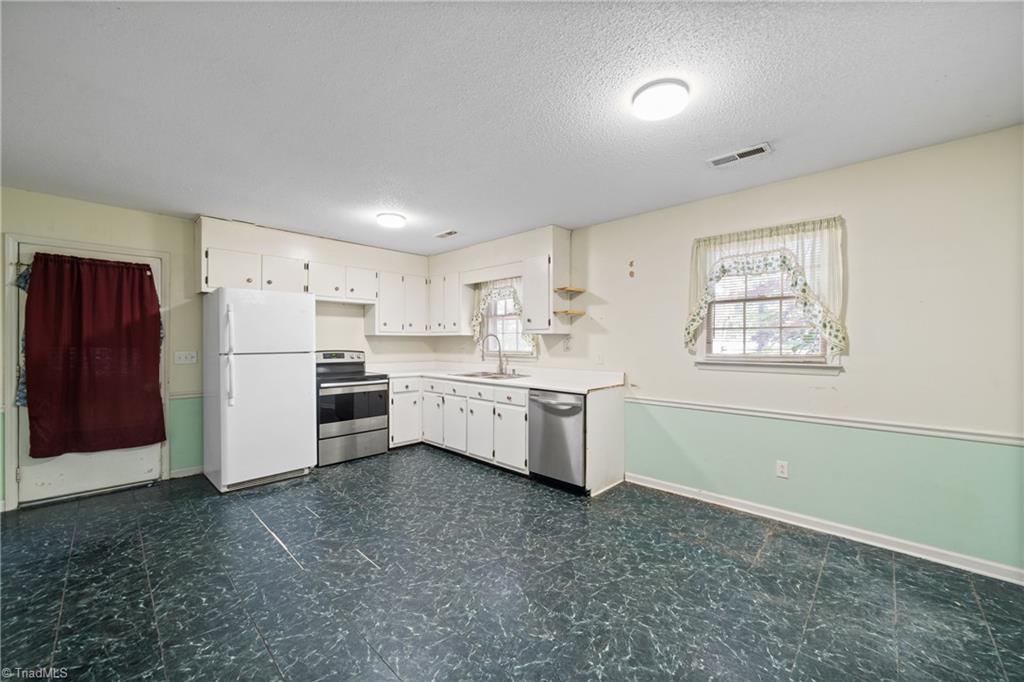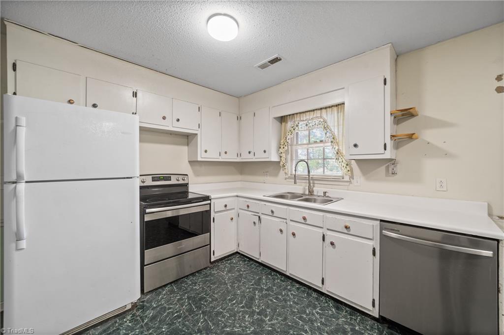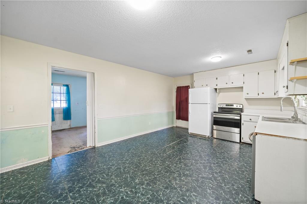 One-level 3-bedroom, 1-bath home in a country setting on nearly half an acre with mature trees - ready for your updates and personal touch. Bathroom LVP installed within the last 2 years. Refrigerator, washer and dryer are included. A wired storage building adds extra space for tools, hobbies, or equipment. Enjoy a convenient location near downtown Kernersville, Triad Park, major highways, and Oak Ridge. No HOA and low county taxes. Sold As-Is - an excellent opportunity to renovate and make it your own.