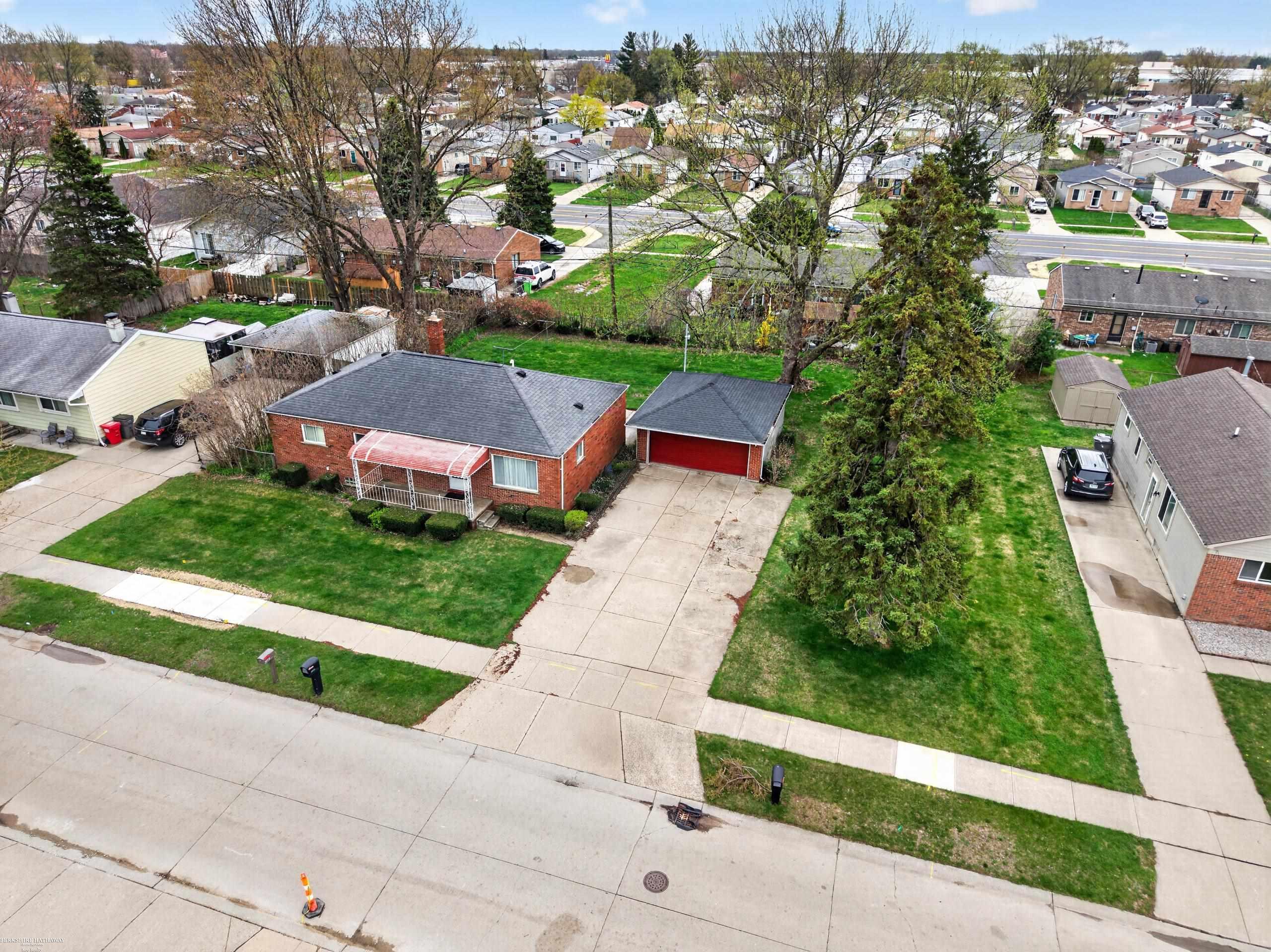 Open floor plan on this full brick ranch sitting on 3 lots total so room for your boat, camper, etc. No HOA here! Extra lot to the right of the garage. 2 1/2 car block and brick garage too! Hardwood floors under carpet on the main floor, formal dining room, large bathroom and large kitchen with plenty cabinets with roll out drawers. Vinyl windows, newer roof, hot water tank and Furnace just installed fall of 2025. Home has central air. Large covered porch and a patio in back with beautiful yard to enjoy, garden, etc. All appliances stay including the extra stove in basement, storage cabinets and work bench. Close to freeways, shopping, hospitals and all of the necessities!