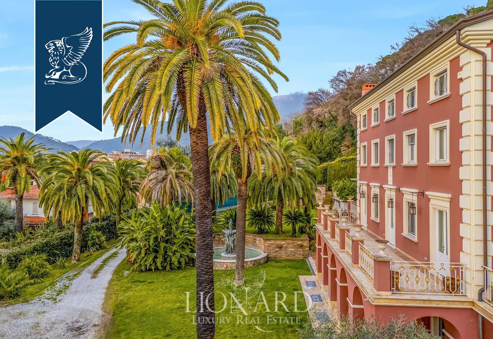 Located on a prestigious hillside above Massa, this elegant villa is set within a 10,000-sqm park with Italian gardens, palm trees, fountains, and panoramic views stretching to the mountains. Its colourful façade with loggias and terraces reflects a refined Mediterranean aristocratic style, while expansive lawns offer space for relaxation and a future swimming pool.The main floor is dedicated to entertaining, featuring a grand hall with decorative columns, frescoes, Venetian floors, and fireplaces. Interconnected living and dining rooms open to the park, while a spacious kitchen with a stone fireplace serves as the home’s convivial heart.Across three levels, the layout allows flexible use, including suites, guest rooms, and relais-style accommodations, totalling seven bedrooms and ten bathrooms. A lift connects all floors, including a modern adjacent apartment.The top-floor loft, with exposed beams and an open-plan design, offers a striking living space. With approved plans for a spa, and already featuring patios and a car park, this property blends historic charm with modern potential.Ref: 15594https://www.lionard.com/villa-panoramic-loft-tuscany-sea-apuan-alps.html