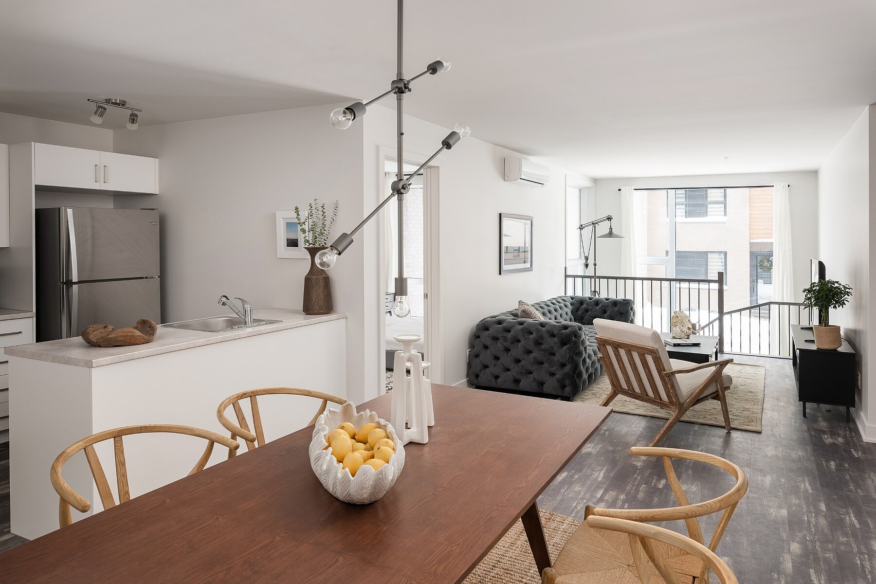 Available July 1st: Modern 4½ condo in Ville-Marie's vibrant Village. Includes 2 large bedrooms, fully equipped kitchen with stainless steel appliances (fridge, oven, dishwasher, hood, microwave), bright living room with AC, in-unit washer/dryer, private balcony, and optional indoor parking. Steps from La Fontaine Park, restaurants, shops, and metro. Elevator, air exchanger, security cameras. Hot water included. Unfurnished. No pets (1 cat allowed). References & credit check required.