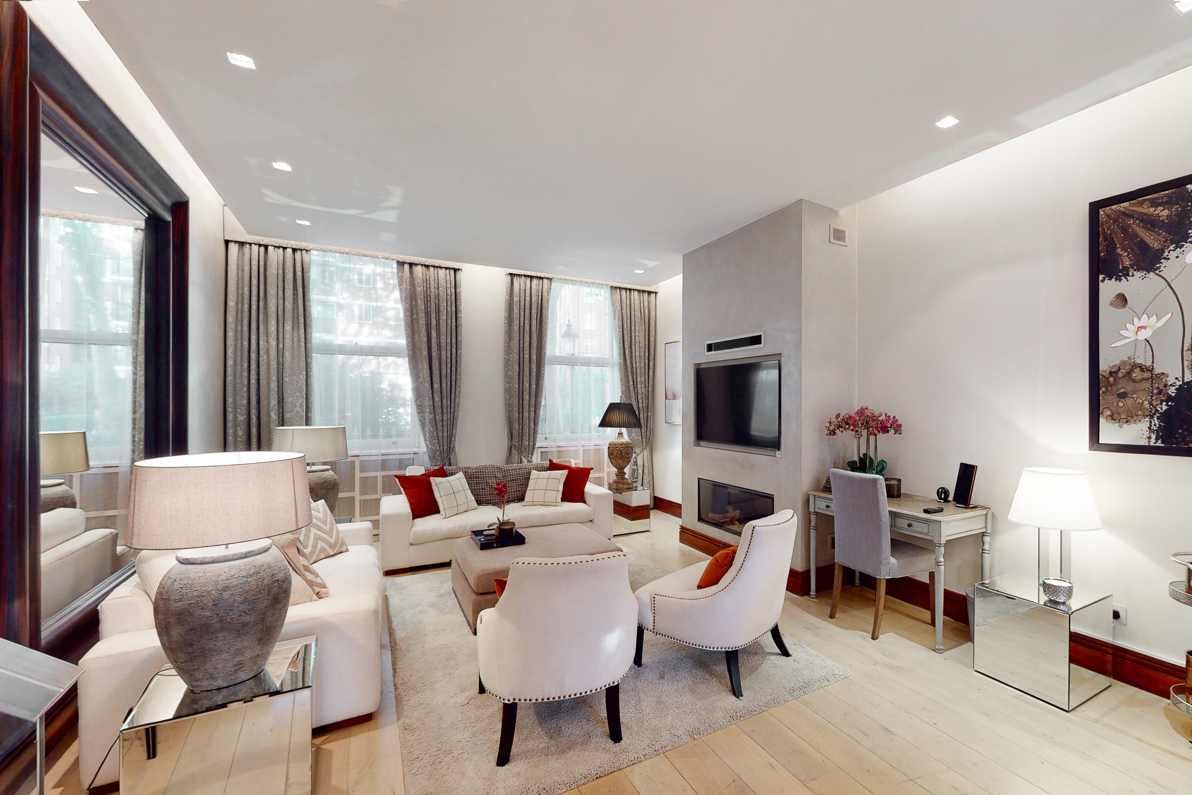Rutland Gate sits just to the south of Hyde Park, within easy reach of Knightsbridge’s shops and restaurants, yet feels quietly removed from it. The immediate setting is defined by grand stucco terraces and access to some of the area’s most established garden squares, giving the building a sense of calm that is increasingly rare at this address.