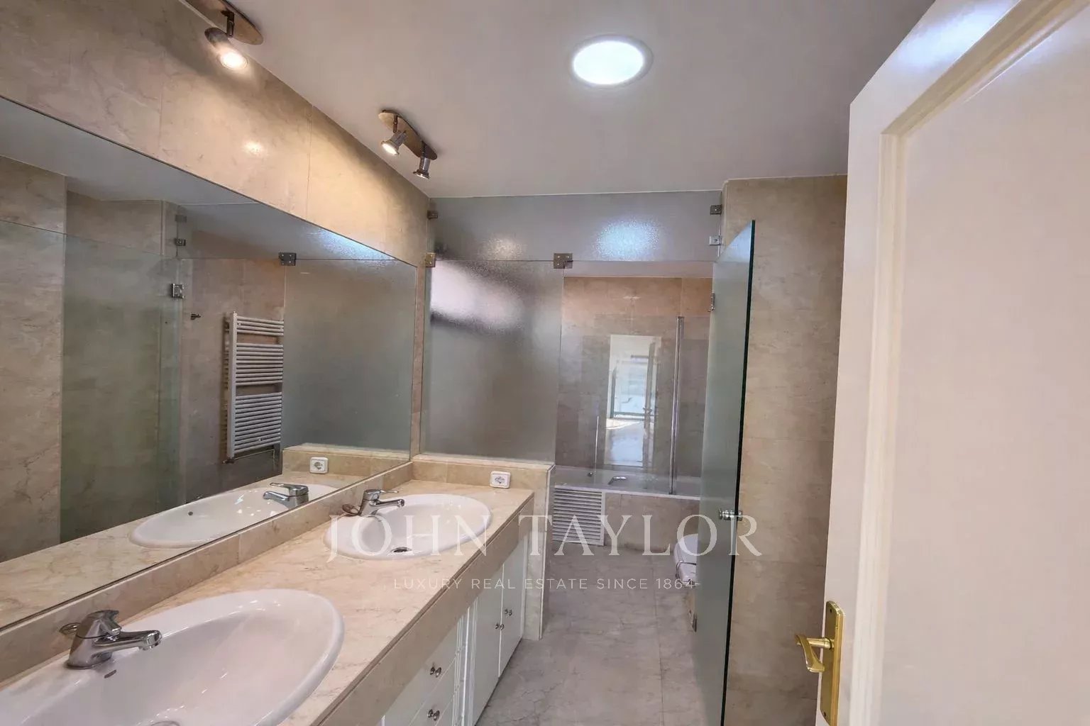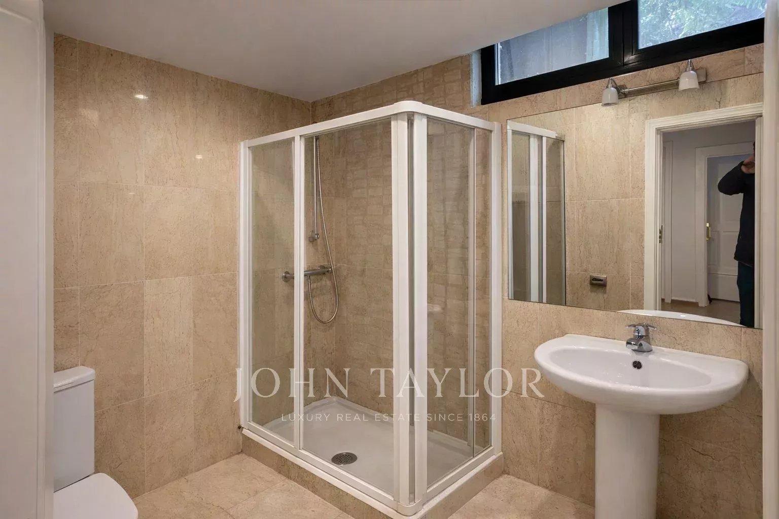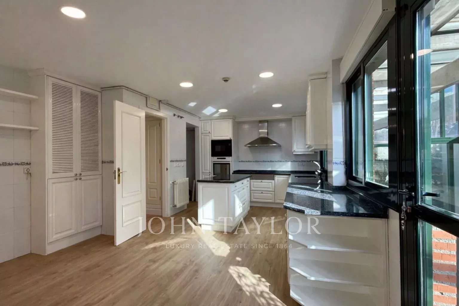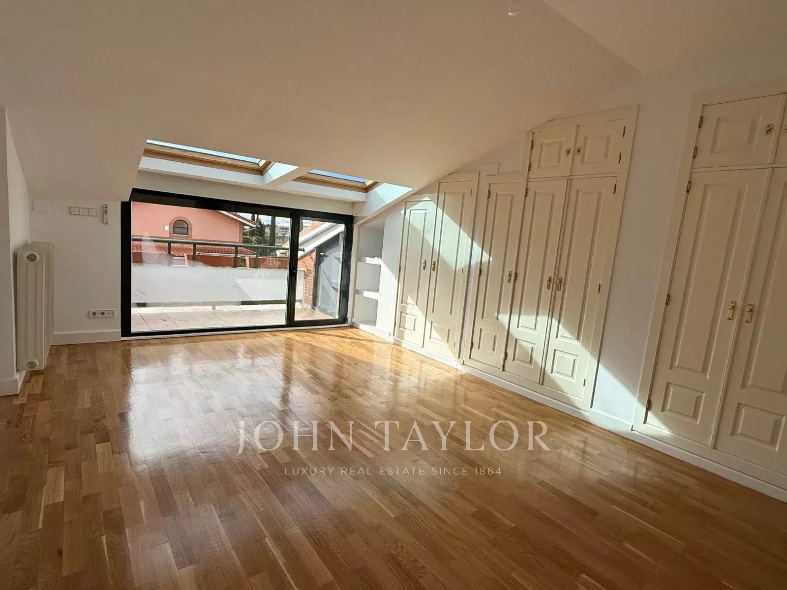 John Taylor presents this magnificent villa located in a first class residential environment. This elegant townhouse represents an exceptional opportunity for those seeking quality of life, privacy and security in one of the most sought after areas of northern Madrid. The property is in impeccable condition, with a careful conservation and a south orientation that guarantees natural light throughout the day.The exterior is one of its great attractions: A perfectly integrated private garden with separate pool, ideal to enjoy with family or friends. From this area there is direct access to the communal areas of the urbanization, which offer a communal swimming pool, paddle tennis courts and 24 hour security, within a quiet and exclusive atmosphere.Inside, the spaces stand out for their spaciousness and functionality. The main area of the house has a large living-dining room with fireplace, very bright and with direct access to the porch and garden, creating a natural continuity between indoors and outdoors. The kitchen, spacious and practical, has an office area and is equipped with high-end appliances, in addition to a separate glazed area for laundry and ironing. A guest toilet completes this floor.The upper floor is dedicated to relaxation and offers three bedrooms and two bathrooms. The master bedroom, with en suite bathroom, enjoys excellent luminosity and access to a pleasant private terrace. One of the secondary bedrooms, particularly spacious, allows multiple configurations, either as a double bedroom, office or study area.The house is completed with a versatile lower floor that significantly expands the possibilities of use: a large multipurpose room ideal as a home theater, games room or office, plus cellar, pantry and a service bedroom with bathroom. The closed garage for two vehicles, with direct access to the house, brings comfort and functionality to the whole.Among its features are natural gas heating, air conditioning throughout the house, garden with private pool and belonging to a consolidated urbanization with complete common areas and maximum security.A property designed for families who want to settle in without the need for renovations, enjoy a safe and residential environment, and live just minutes from La Moraleja, with excellent communications and services. A home that combines elegance, comfort and an unbeatable location.
