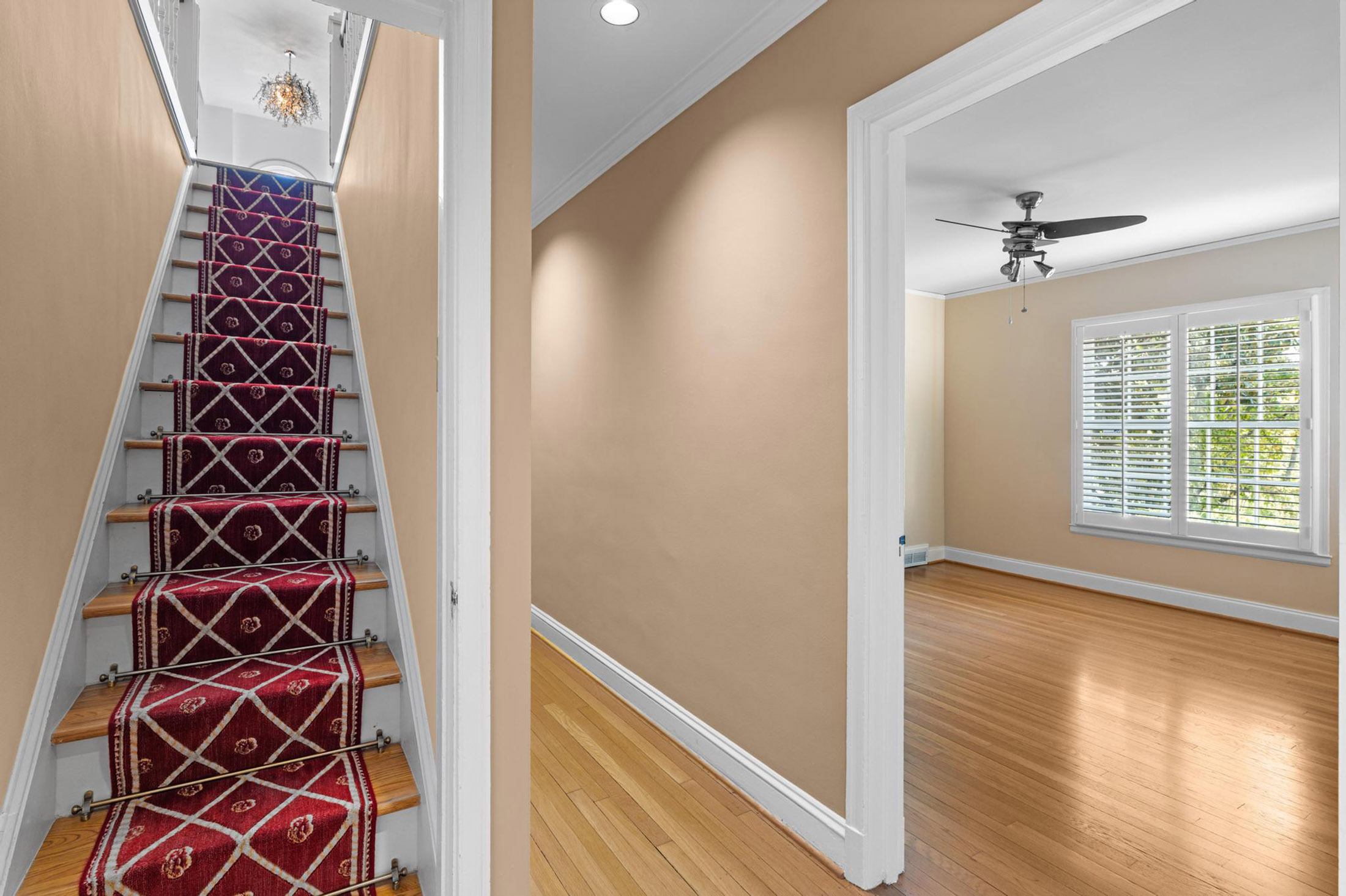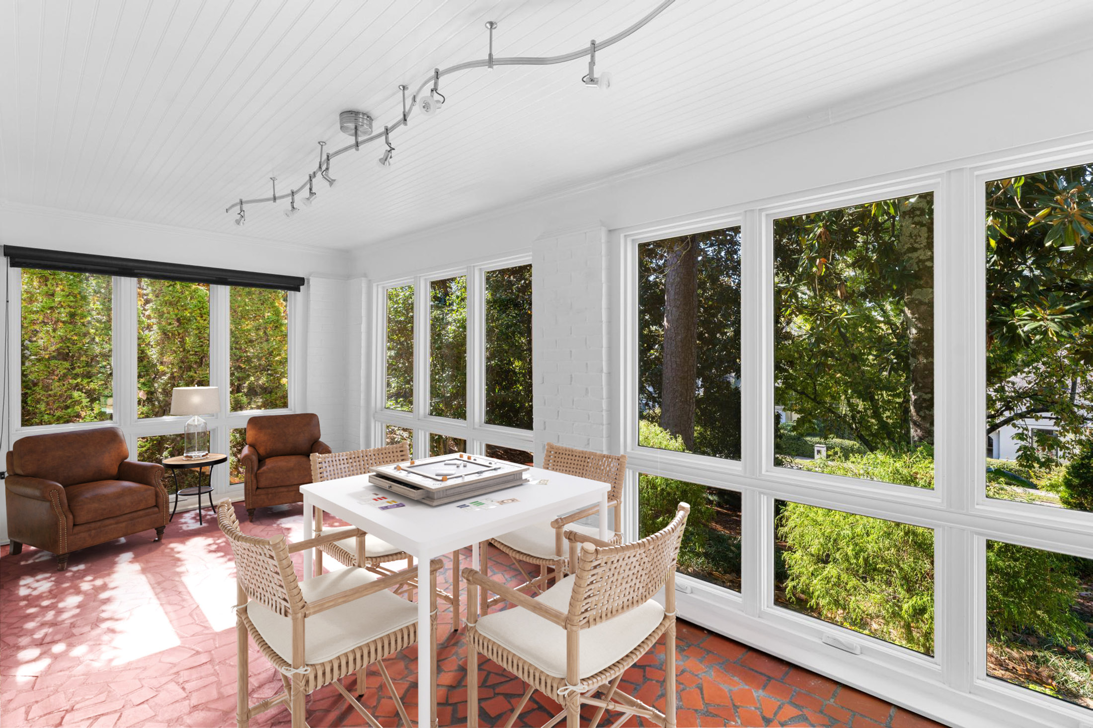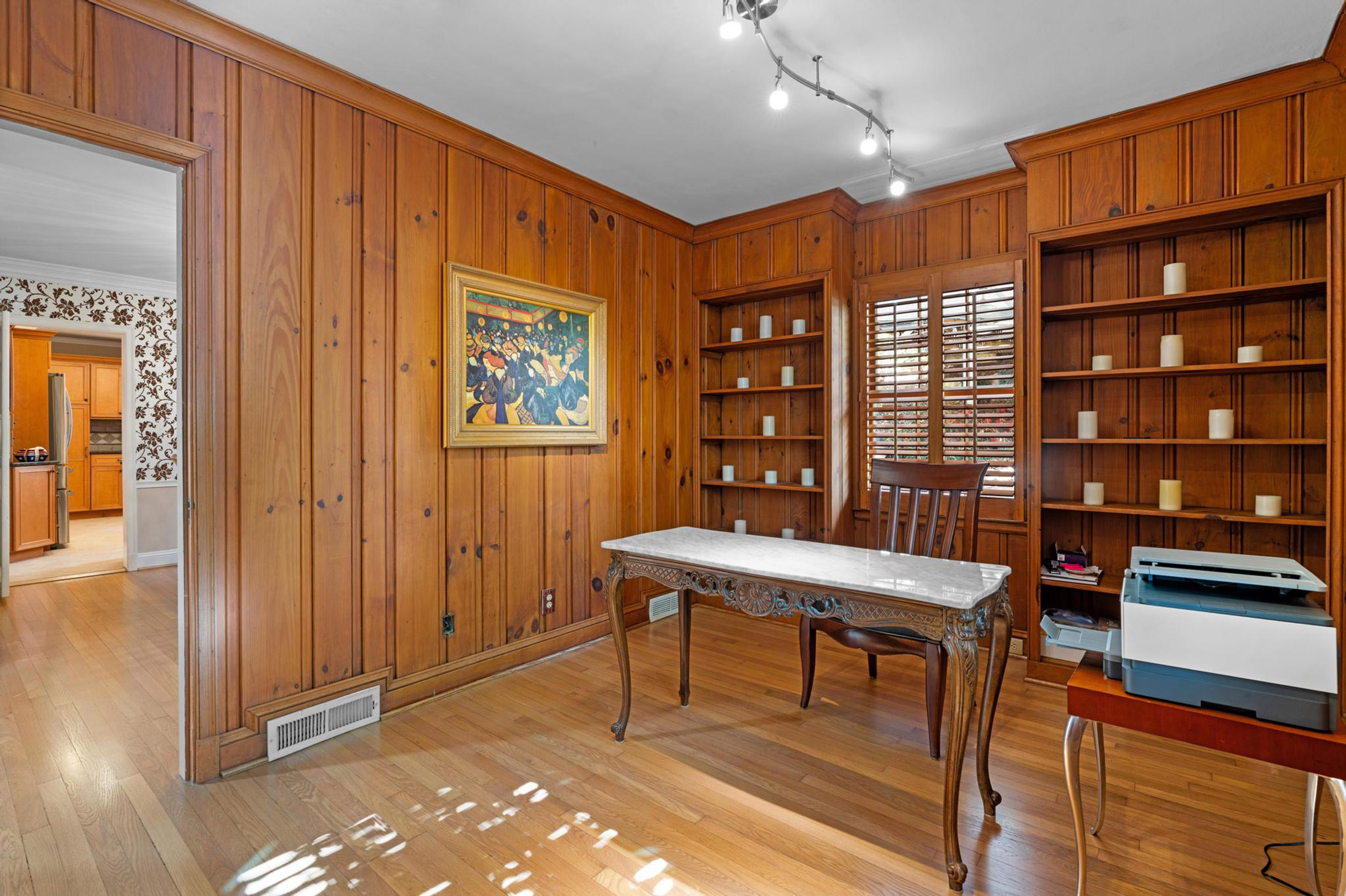 Timelessly elegant and beautifully updated, this white-washed brick residence exudes classic curb appeal. The exterior is framed by manicured granite-stone hardscaping, creating a refined first impression. A newly poured concrete driveway with additional parking pad leads to an inviting copper-topped portico, approached by broad granite paver steps that set the tone for the home’s craftsmanship and style. Inside, newly refinished hardwood floors flow seamlessly throughout the main level. The glass-paneled front door opens to a formal living room featuring an original stone-surround fireplace, while an airy sunroom with tile flooring and casement windows overlooks the front gardens. French doors from the gracious dining room open to a slate patio and private backyard, creating an effortless connection between indoor and outdoor living. A handsome wood-paneled office or den with floor-to-ceiling built-ins sits adjacent to the dining room, offering a warm and functional retreat. The true chef’s kitchen is outfitted with a five-burner Dacor cooktop, warming drawer, new LG refrigerator, built-in microwave, generous pantry storage, and abundant custom cabinetry. Granite countertops and a ceramic tile backsplash complete this timeless and highly functional space. Three spacious bedrooms grace the main level, each offering ample closet space. Two share a Jack-and-Jill bath with marble tile and a large walk-in shower, while the secondary full bath features travertine finishes, a soaking tub with glass doors, pedestal sink, and custom built-ins. The fireside primary suite spans the entire second floor with vaulted ceilings, dual walk-in closets, and a sitting area that opens to a private deck. A convenient wet bar with refrigerator and cabinetry makes mornings and evenings equally enjoyable. The marble-tiled primary bath includes a dual vanity, deep soaking tub, separate water closet, and newly remodeled shower. The lower level offers a two-car garage with space for modern SUVs, the laundry area, and exceptional storage. Outside, mature and lush landscaping creates a gardener’s paradise filled with roses, gardenias, azaleas, cypress, banana leaf fern, hydrangea, Japanese maples, and a variety of ferns. The main-level walk-out slate patio features a covered entertaining area and built-in bar, ideal for gatherings. Stone pathways wind through the gardens and lead to upper terraces that can serve as additional play or garden space. Irrigation, lighting, and strategically placed spigots have been thoughtfully installed to support the home’s extraordinary grounds. A rare blend of preserved character, modern comfort, and breathtaking outdoor living—this home offers a truly private and inviting retreat in the heart of the city.
