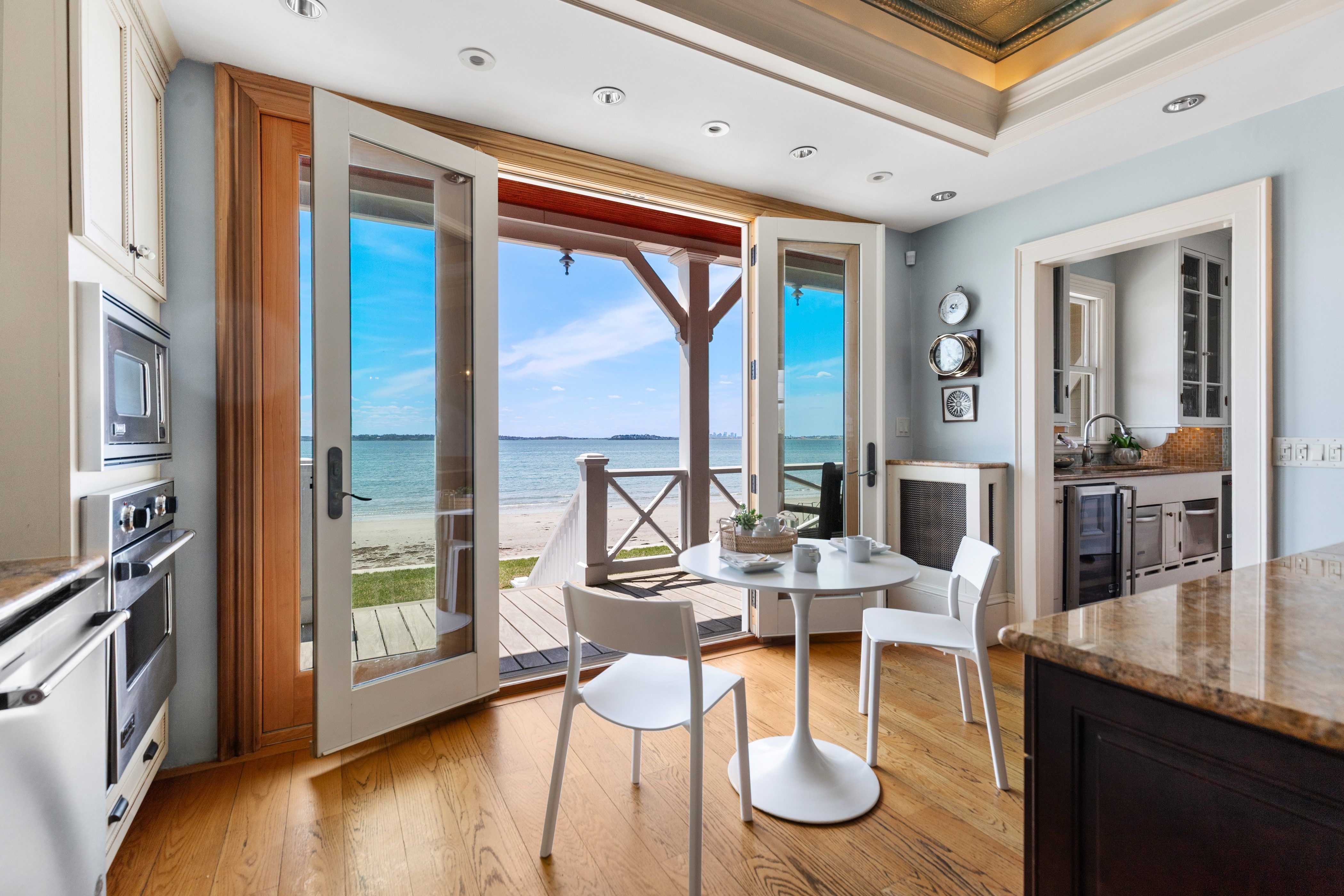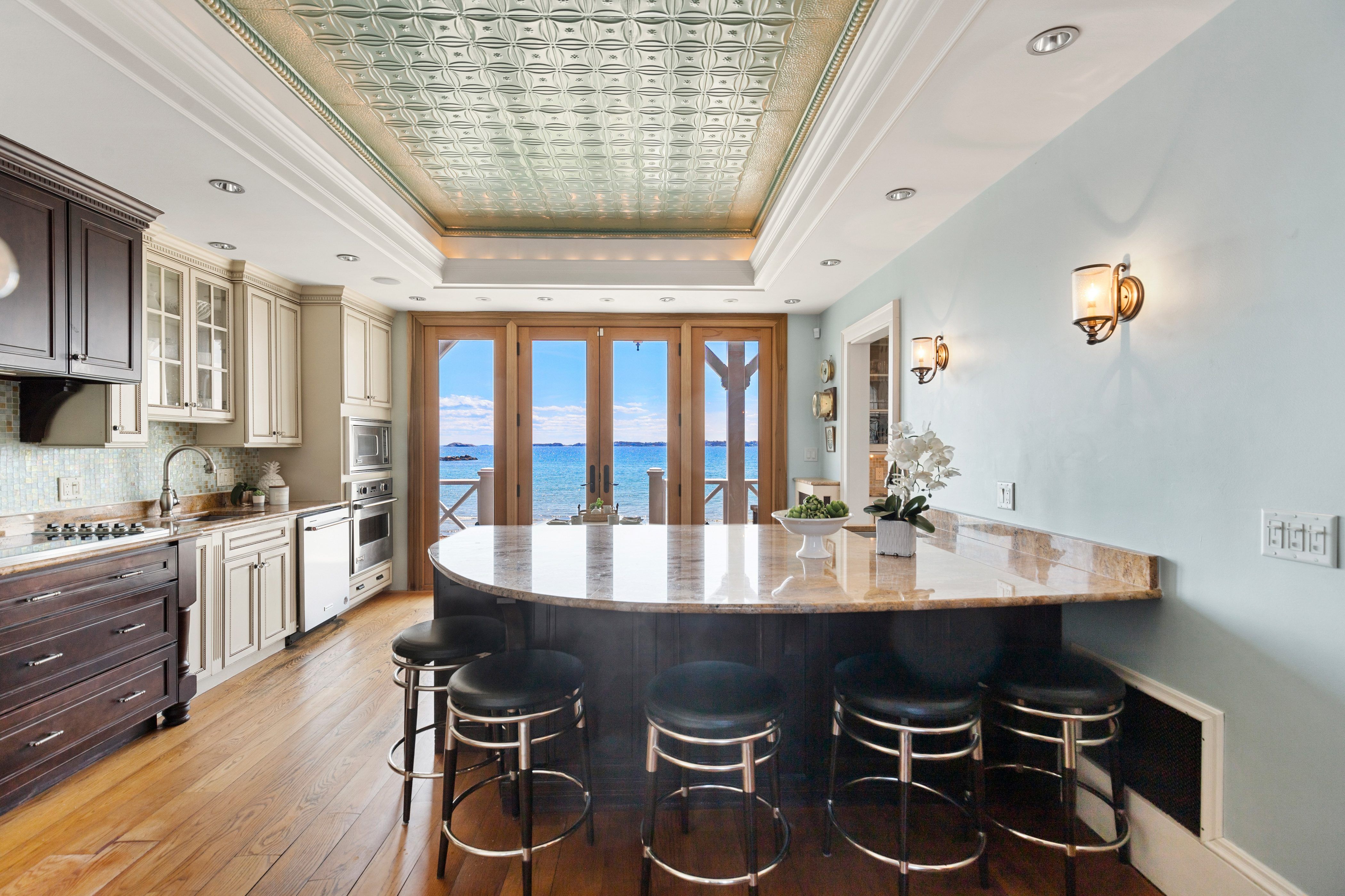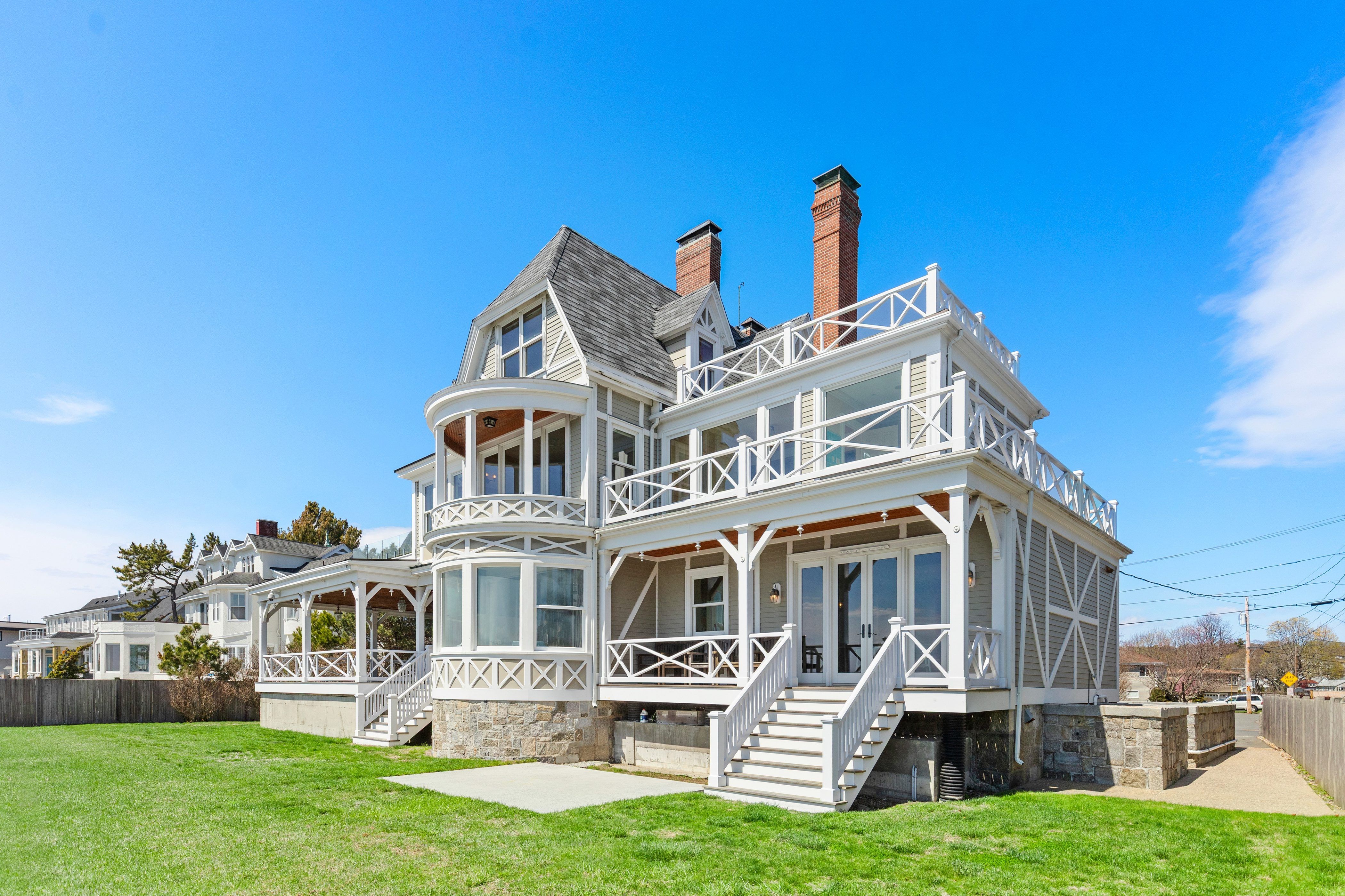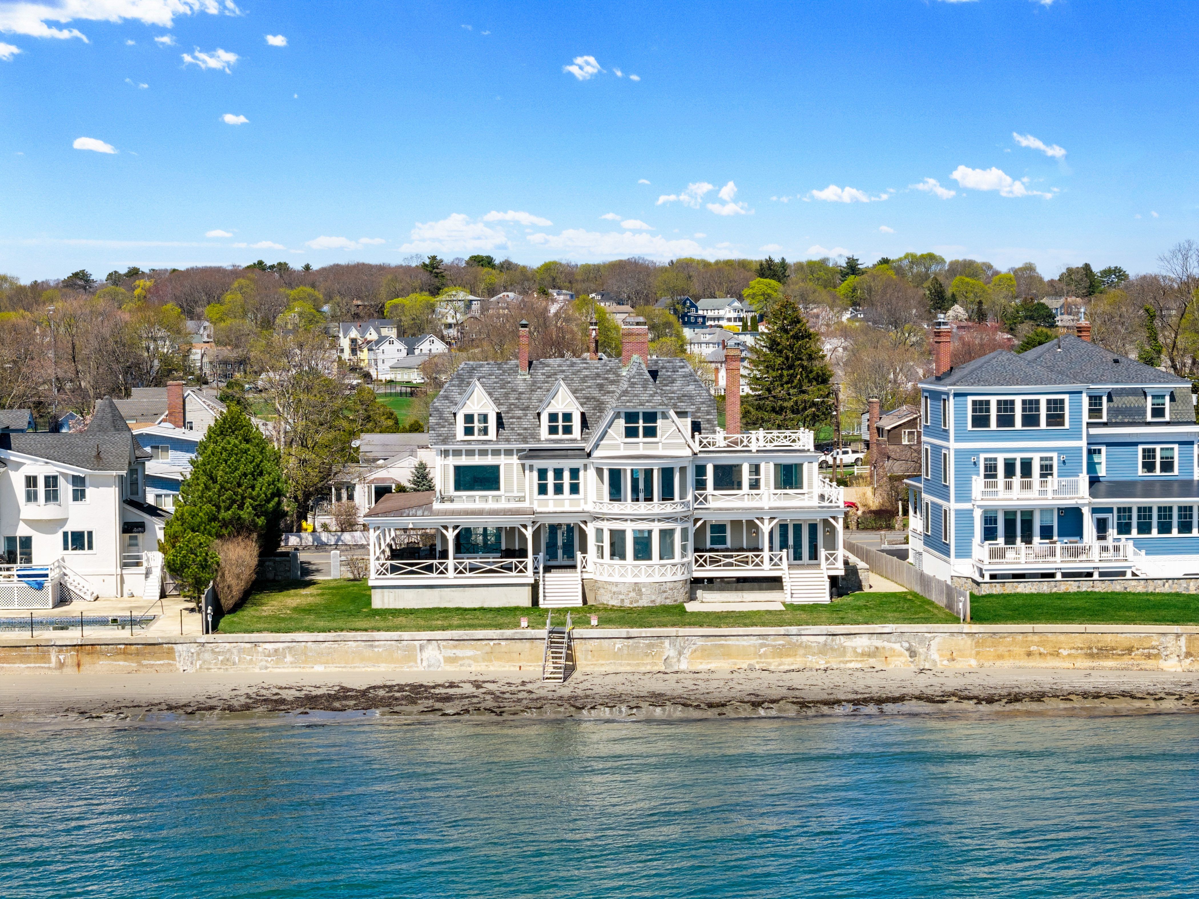Rare Oceanfront Victorian Estate | Direct Beachfront | Boston Skyline Views directly on the ocean just 11 miles from Boston, this magnificent Queen Anne Victorian shingle-style estate offers an unparalleled oceanfront lifestyle. Featuring eight bedrooms (four ensuite), and multiple outdoor spaces, the home is designed for grand entertaining and relaxed coastal living. Wake to sweeping views of Boston's glittering skyline, harbor islands, and open sea from nearly every room. Direct beach access puts sand and surf at your doorstep. The chef's kitchen opens via French doors straight to the water, while the wraparound covered porch and pergola invite endless hours of coastal enjoyment. The original craftsmanship shines with inlaid hardwood floors, hand-carved balusters, stained-glass entry doors, rich wood paneling & multiple ornate fireplaces. A rare opportunity to own one of Swampscott's most iconic oceanfront estates, all just minutes from the commuter rail with direct service to Boston.