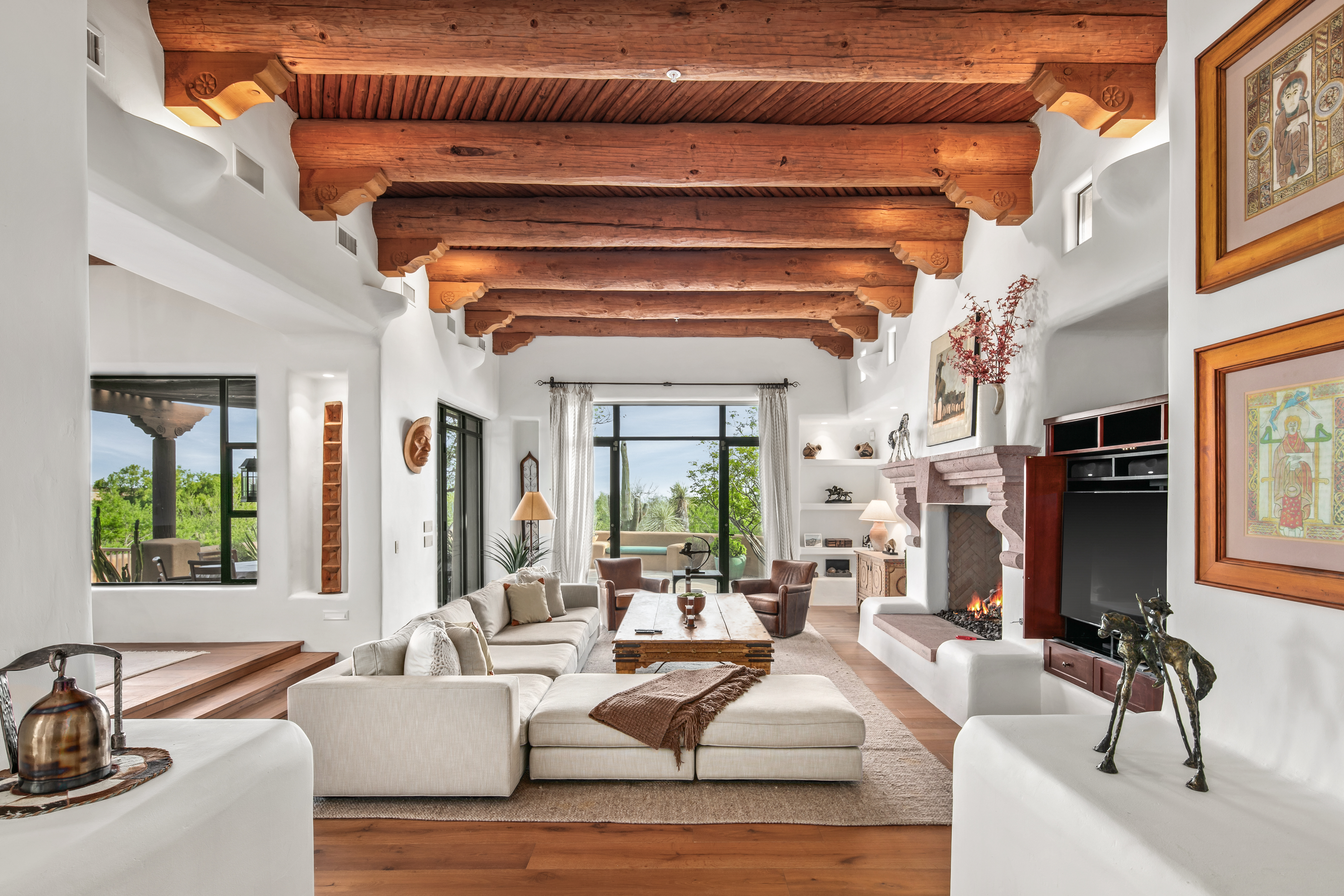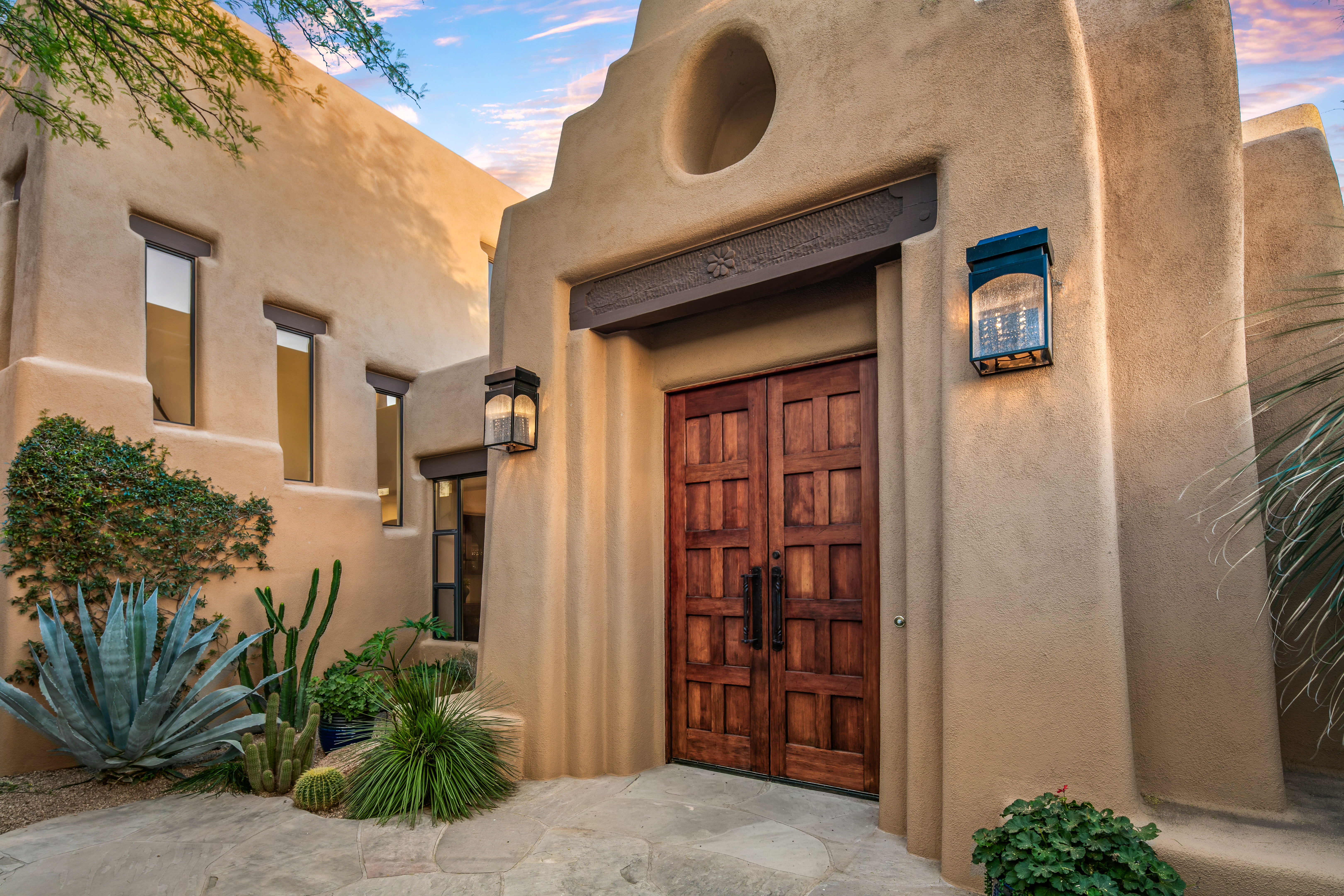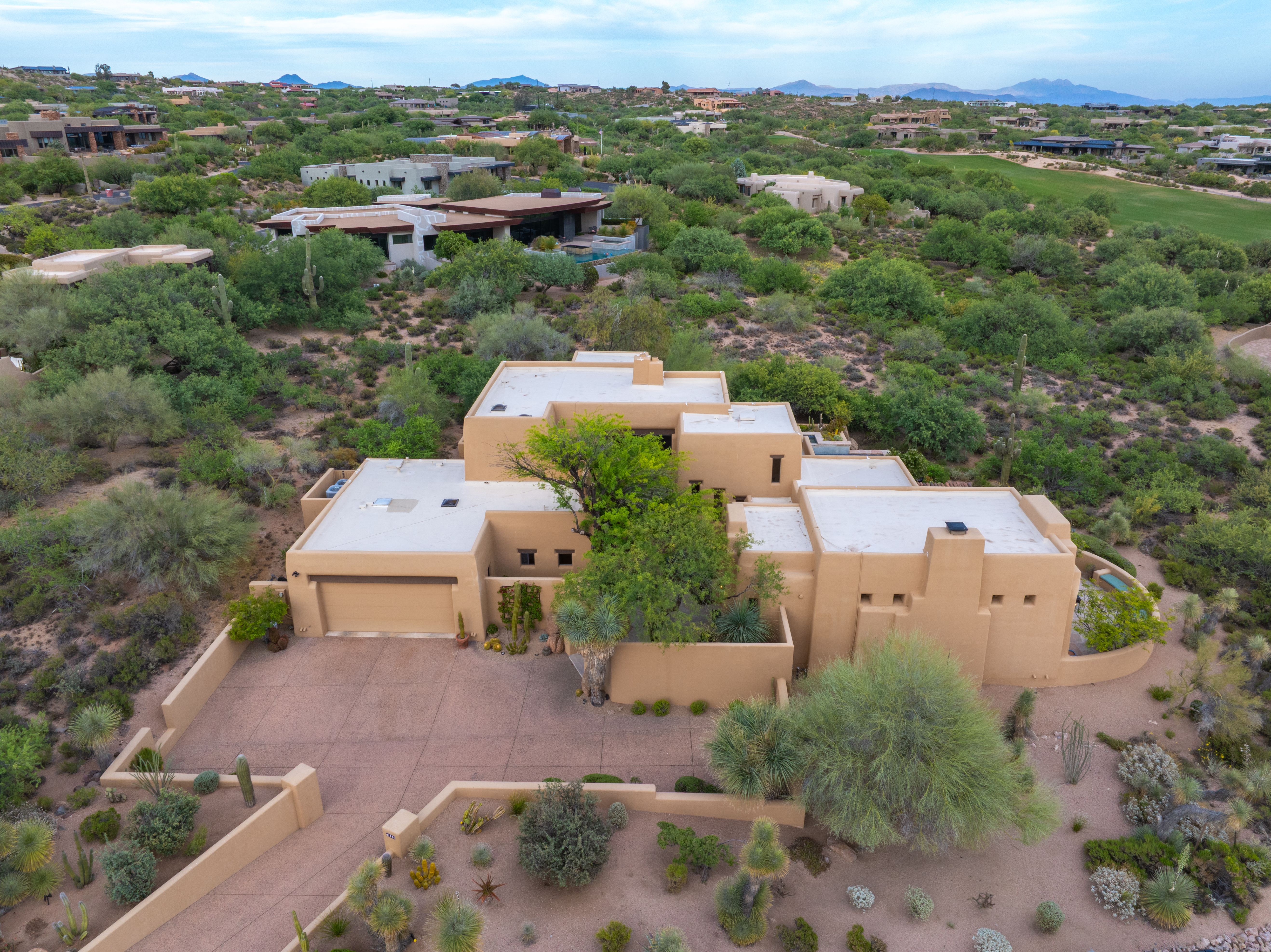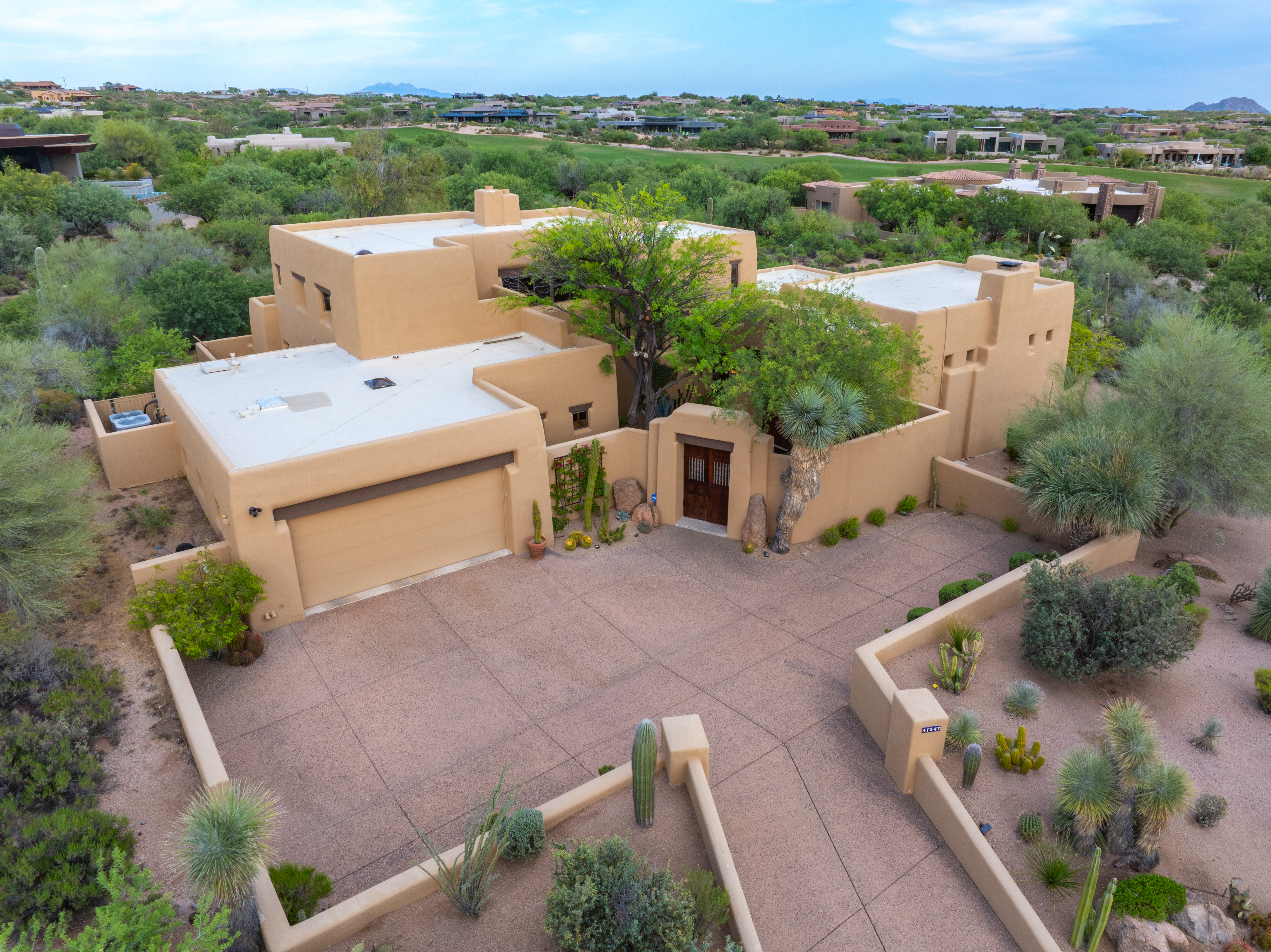 FULL DESERT MOUNTAIN GOLF MEMBERSHIP AVAILABLE - Set in a quiet, elevated enclave of Desert Mountain, this one-of-a-kind home is a testament to architectural vision and refined Arizona living. Inspired by the charm of an adobe Spanish mission and the elegance of a European villa, the home welcomes you with spacious courtyards, soaring viga-lined ceilings, four fireplaces, and oversized windows that bathe every room in warm desert light.