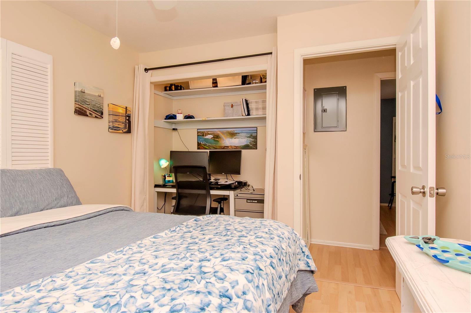 If you are looking for affordable island life living welcome to Beach Manor Villas on the island in Venice, a 55+ community. This unit is a 2 bedroom/1 bathroom bright and clean villa and is being sold fully furnished. This villa offers hurricane impact windows with newer plantation shutters (2022), a newer dishwasher, disposal and microwave (all 2023), ceiling fans are also newer as is the fully glass storm door and the updated exterior lighting fixtures. Also added was a barn door for the hall closet. There is a washer and dryer for your convenience in the carport and a shed for extra storage. The electric panel was updated in 2023, attic insulation was added in 2024, and UV protection was added to the A/C unit in 2023. The front gutters were added in 2020, and the roof was replaced in 2018. Quintessential beach life living begins here less than 1 mile to the Gulf beaches. In addition, there is a public golf course with a driving range nearby, Sharkey's fishing pier, and historic downtown Venice with a farmers market every Saturday morning a short bike ride away. Venice theatre, access to the Legacy bike trail and restaurants and entertainment are all within minutes! Beach manor villas has an active social committee throughout the year. There is a year round heated pool, shuffleboard court and a community clubhouse.