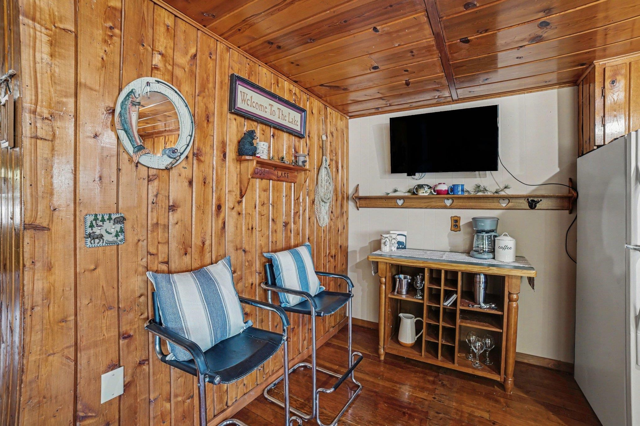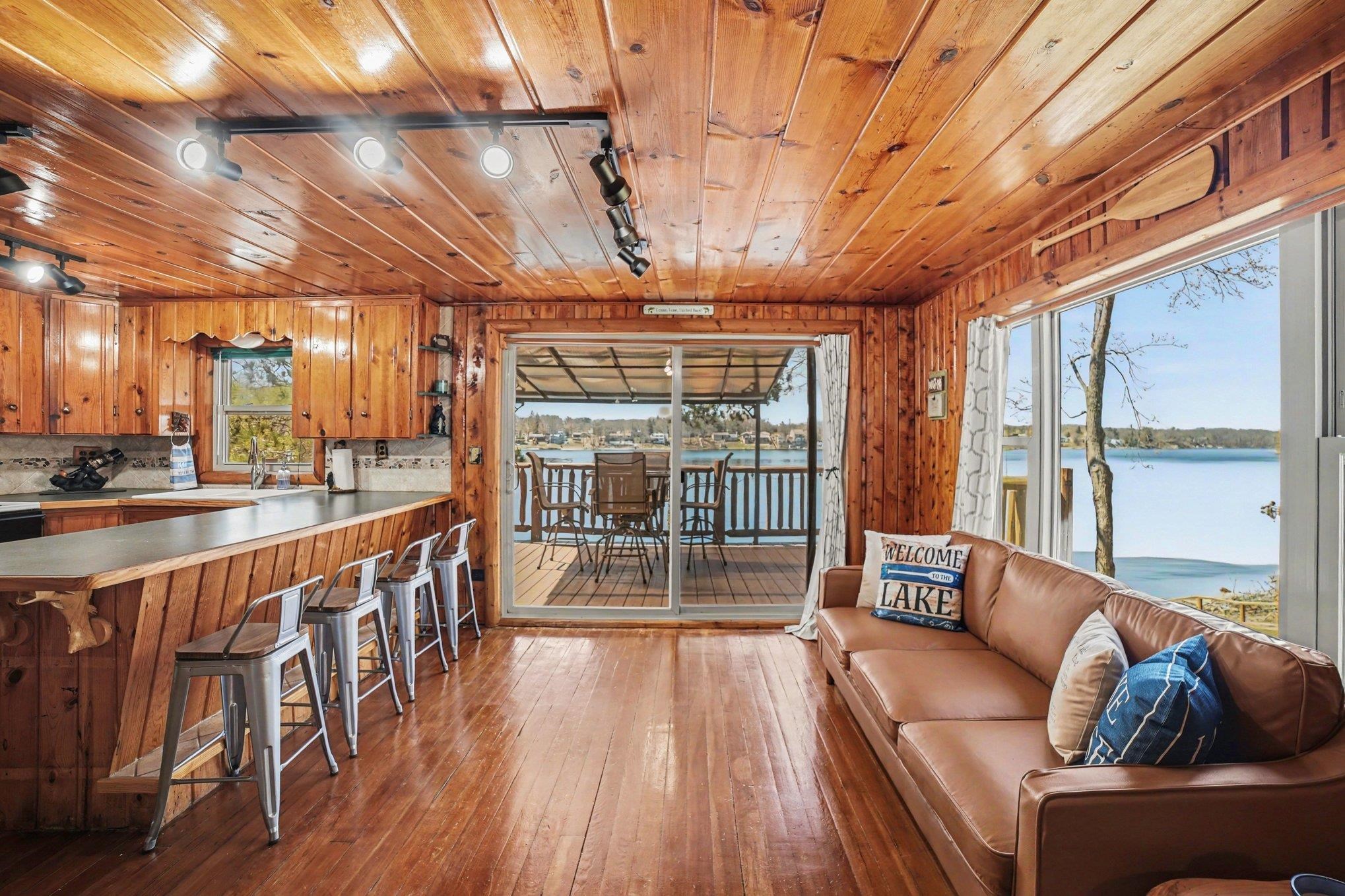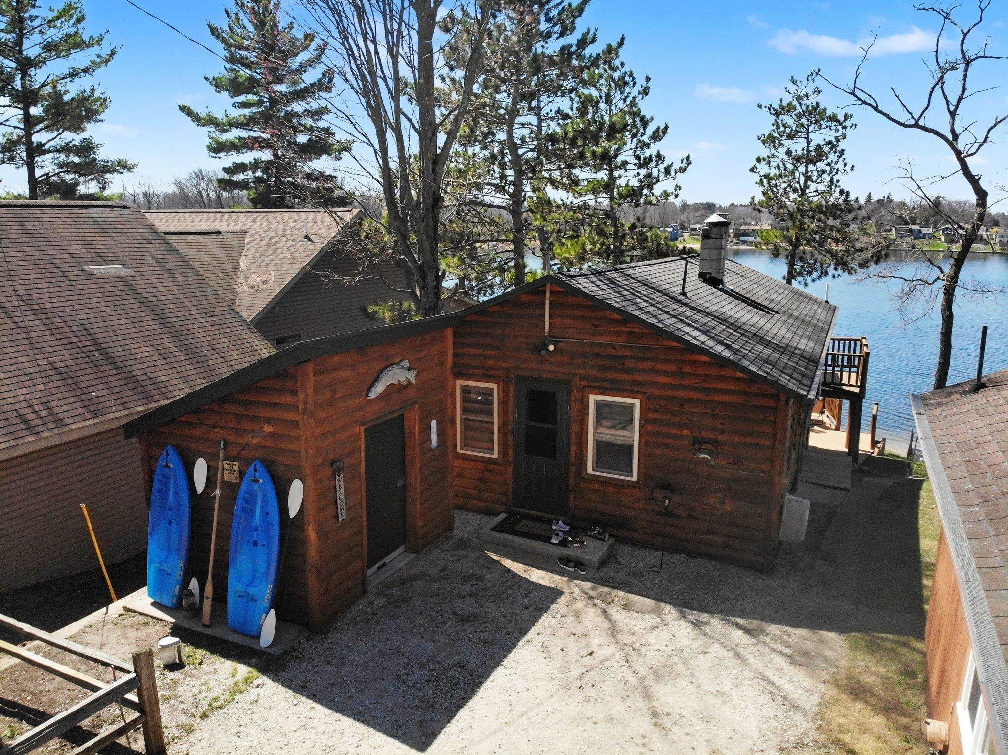 Welcome to your private retreat on all sports Budd Lake in Harrison, Michigan. This fully furnished 3 bedroom, 2 bath waterfront home offers true turnkey living, complete with a dock so you can arrive, drop your bags, and immediately start enjoying lake life. Inside, you will find classic Up North charm throughout with knotty pine wood paneling and warm hardwood floors that create an inviting cabin feel. The living room is anchored by a timeless stone wood burning fireplace, serving as the centerpiece for cozy evenings after long days on the water. The upper level features three comfortable bedrooms along with a fully updated bathroom. The walkout lower level expands your living space with a spacious recreation room featuring updated vinyl plank flooring. This level also includes two additional rooms currently set up as bedrooms, a 3/4 bath, and a dedicated laundry room, offering excellent flexibility for guests, family, or rental use. Outdoor living is where this property truly shines. Multiple levels of composite decking with natural log railings create ideal spaces for relaxing, entertaining, and taking in lake views. From the deck, step down to a terraced fire pit area, then continue on to your sandy private frontage and 40 feet of dock on Budd Lake, perfect for boating, swimming, and some of the best fishing in Northern Michigan. A storage shed is also included, providing the perfect place for all of your lake toys, tools, and outdoor gear. Conveniently located just minutes from downtown Harrison and only about 15 minutes to downtown Clare, this property delivers the rare combination of privacy, recreation, and accessibility. Whether you are looking for a full time residence, a vacation getaway, or a high performing short term rental, this home offers strong versatility and proven Up North appeal.