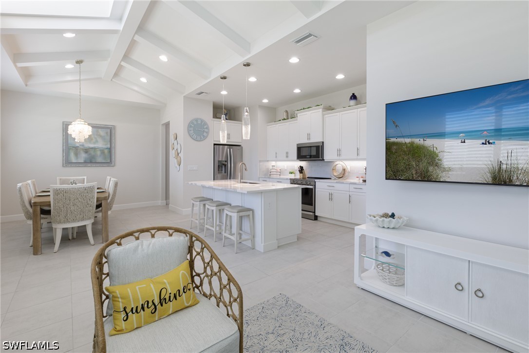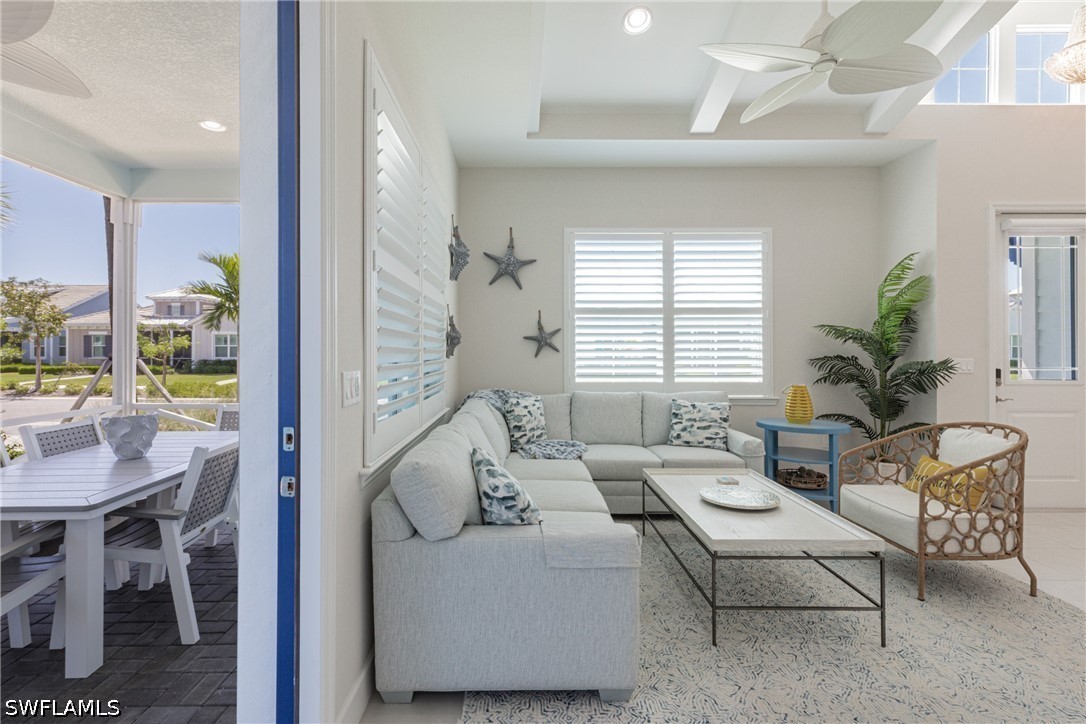 Isles of Collier Preserve, stunning Coastal Cottage. This Captiva model is the largest Minto built. The professionally decorated 2 bedroom, plus den, 2 bath, 2 car garage is being sold Turnkey Furnished. Quartz countertops, soft close cabinets and drawers, impact resistance windows and doors, and tile throughout, gives you a causal elegance to call home. Relax on the screened Lanai or visit The Isles of Collier Preserve's amenities center, which offers its iconic clubhouse, large fitness center, huge resort-style pool, lap pool, the Overlook Bar & Grill, tennis, pickleball, and bocce ball courts. There is a social director that keeps things hopping with every imageable activity. This gated community is over 2,400 acres with most of it devoted to exciting nature. There is a dog park and over eight miles of nature trails to experience. Kayaks and canoes are available for use to paddle to the Gulf of Mexico. This is one of Naples' most desirable gated communities and it is only 4 miles from our famous 5th Avenue and the Beach.