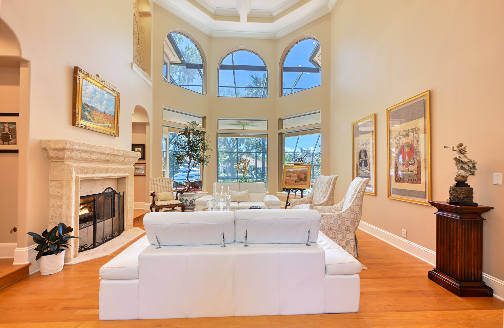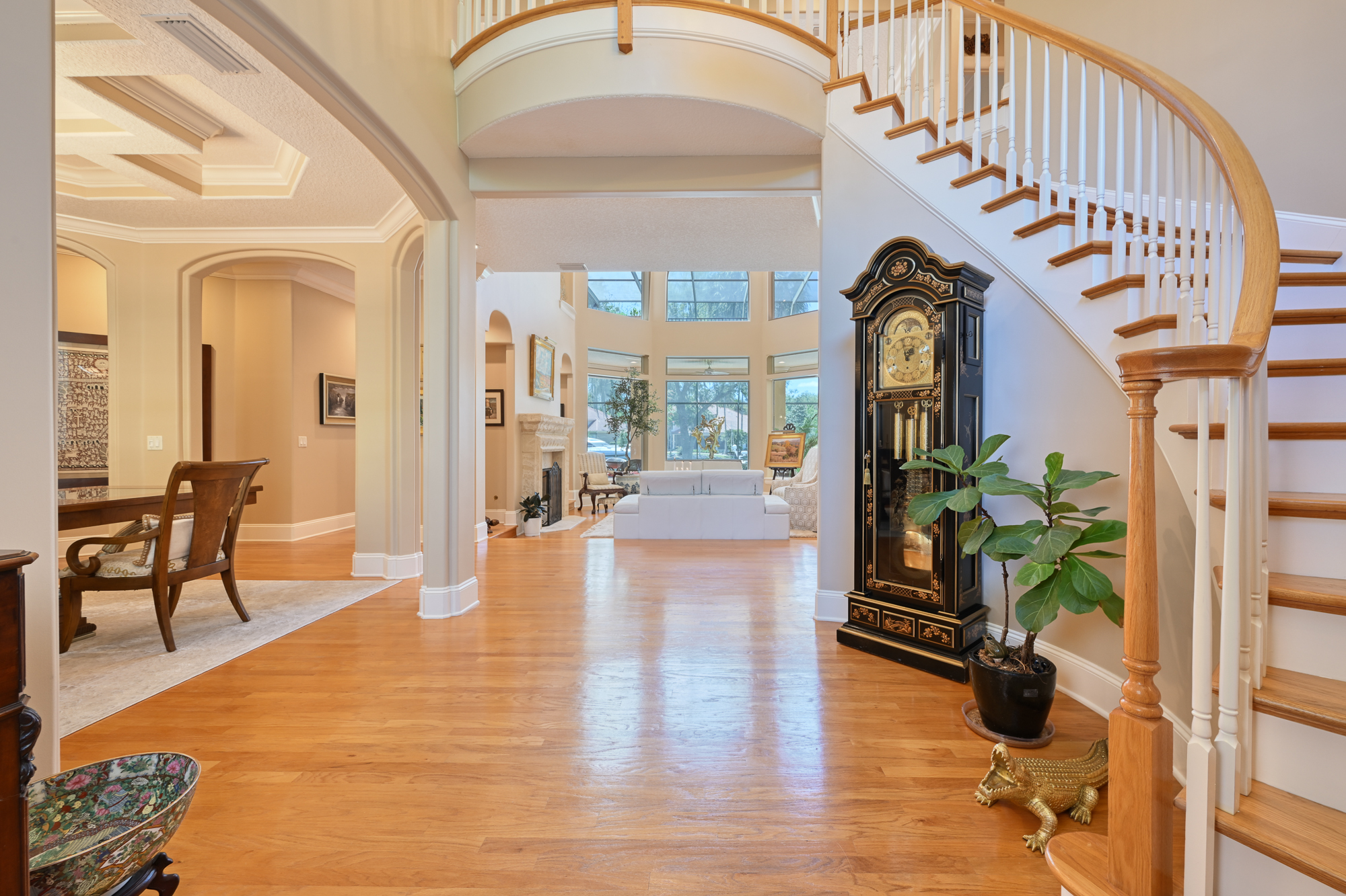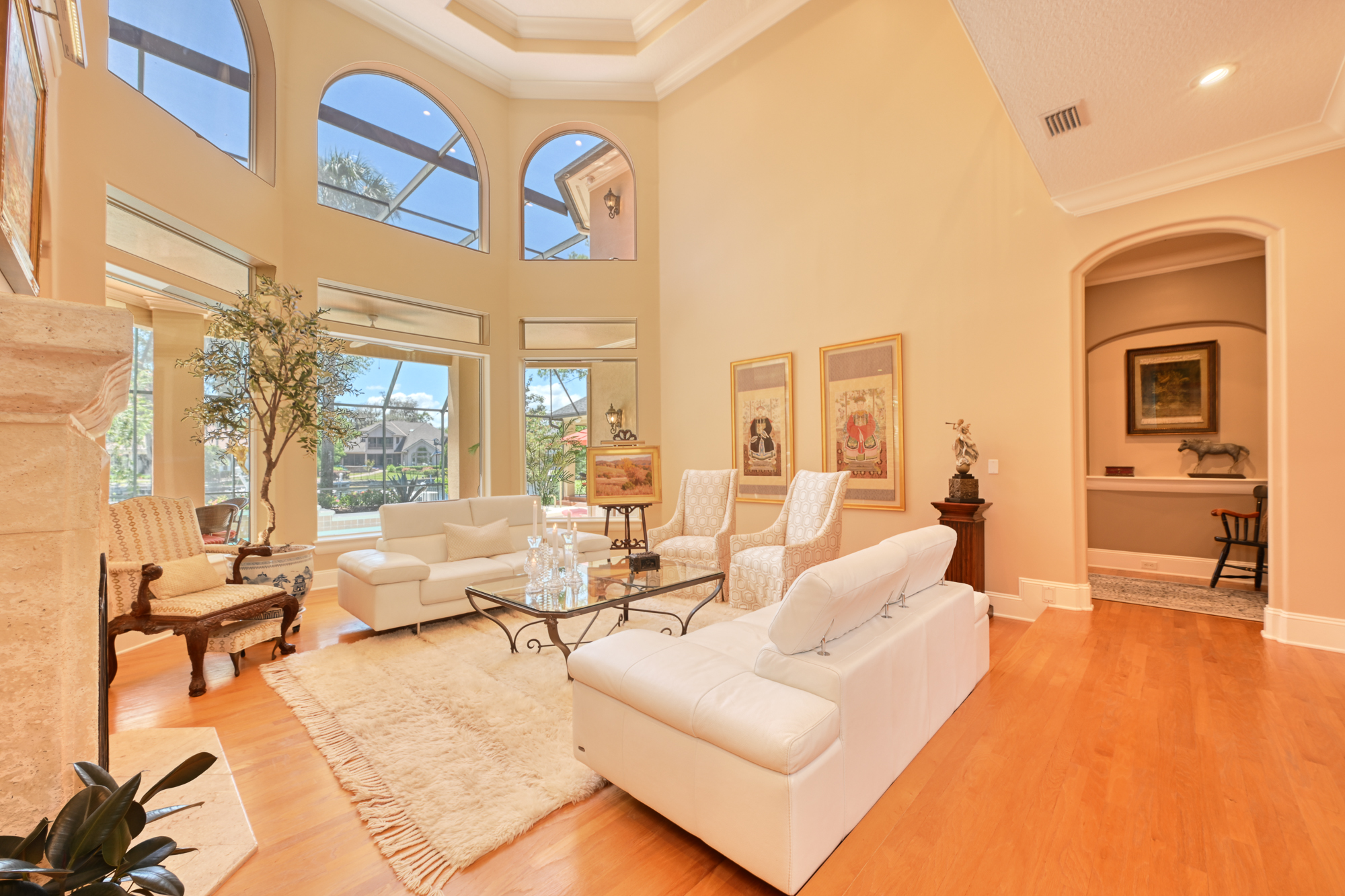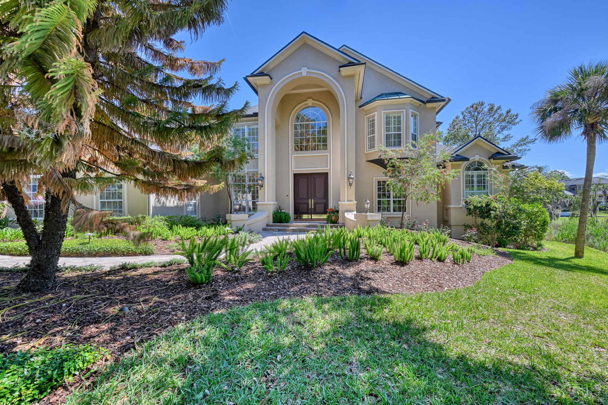 Tucked behind the gates of prestigious Queen's Harbour Yacht and Country Club, this exceptional waterfront estate offers a refined blend of timeless architecture, luxury upgrades, and the coveted Florida boating lifestyle. Positioned along the private freshwater lagoon, the property features a 40-foot private dock with power and water, located just minutes from the community's exclusive lock system--providing direct access to the Intracoastal Waterway and the Atlantic Ocean. Spanning approximately 4,906 square feet, this exceptional residence offers five en-suite bedrooms and two half baths, thoughtfully designed for both sophisticated everyday living and grand-scale entertaining. Sun-drenched interiors are enhanced by soaring ceilings, elegant architectural details, and seamless transitions between indoor and outdoor spaces.The owner's suite is a serene escape, showcasing peaceful water views, a spa-inspired bath, and expansive closet space. At the heart of the home, the chef's kitchen impresses with custom cabinetry, expansive prep areas, and premium finishes that balance function with elevated design. It opens effortlessly to spacious living and dining areas, creating a natural gathering place suited for both intimate moments and large-scale entertaining. Outdoors, a resort-style retreat awaits--complete with a sparkling pool and spa, summer kitchen, and dedicated pool bath. Surrounded by lush landscaping and tranquil water views, this private oasis is designed for relaxation and entertaining alike. The oversized 0.57-acre homesite offers both privacy and flexibility, featuring direct lagoon frontage and convenient access to boating. Residents of Queen's Harbour enjoy an unmatched lifestyle including golf, tennis, pickleball, fitness center, clubhouse dining, and a full-service marina--all just minutes from Jacksonville's beaches and premier shopping. It is a rare opportunity to own a true waterfront estate offering both luxury living and immediate access to Northeast Florida's premier boating waterways.