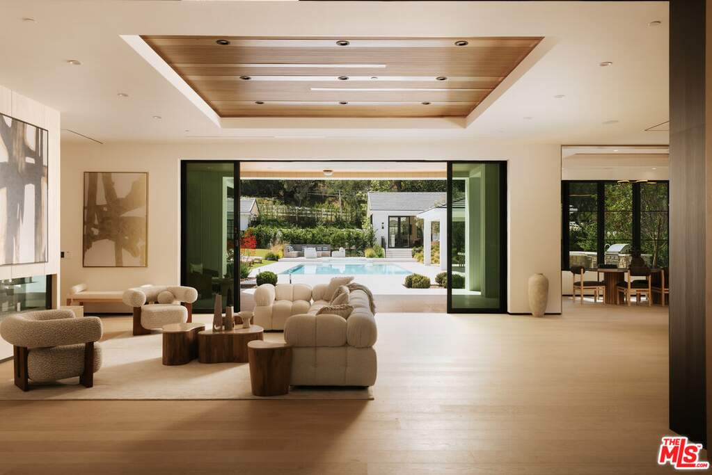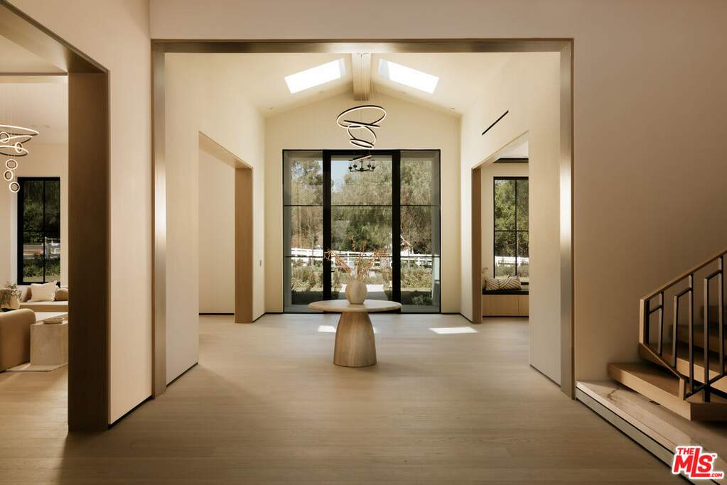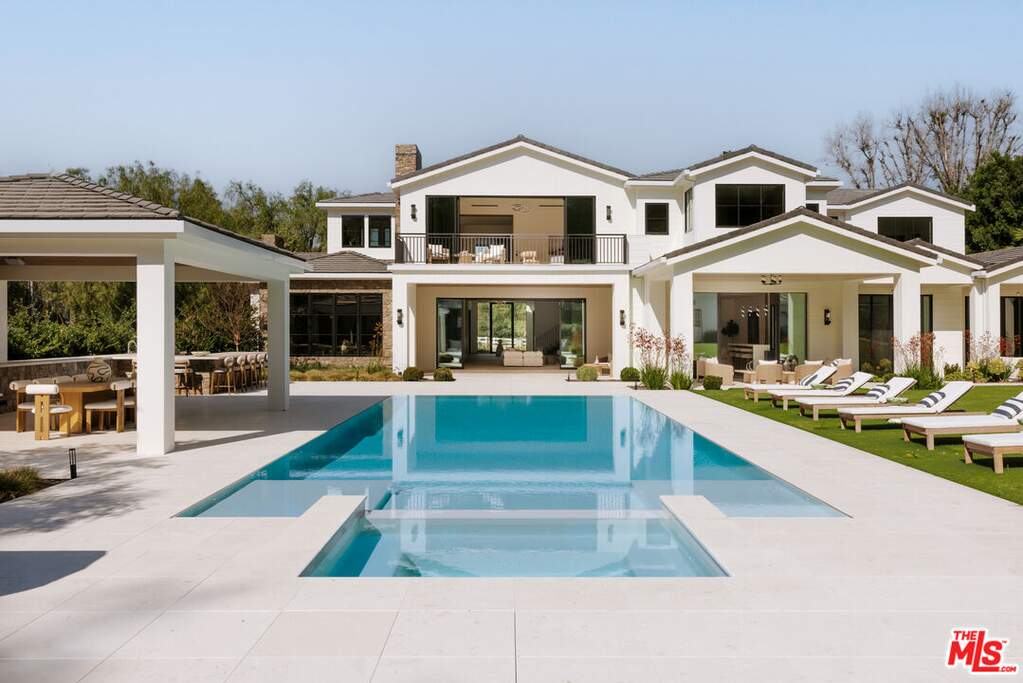 Within the coveted guard gated enclave of Hidden Hills, this newly constructed estate is a study in quiet luxury, where architectural elegance meets a refined modern sensibility. The residence unfolds with intention, offering 7 bedrooms and 8 baths in a layout that feels both grand and deeply livable. A striking double height entry introduces a sequence of light filled spaces defined by clean lines, soaring ceilings, and curated finishes. The formal living and dining rooms evoke a gallery like scale, while the family room is warm and inviting, seamlessly opening to a chef's kitchen of exceptional design. An oversized island, bespoke cabinetry, and a fully appointed prep kitchen create a culinary setting that is as beautiful as it is functional. Every element has been thoughtfully considered. A private office offers quiet focus and a wellness suite with gym and sauna provide spaces for restoration and retreat. Upstairs, the primary suite is expansive and serene, with dual spa inspired baths, generous dressing rooms, and a private terrace overlooking the grounds. The outdoor experience mirrors the home's refined aesthetic. Covered loggias, layered entertaining spaces, and a resort caliber pool and spa are surrounded by lush landscaping, creating an atmosphere that feels both elevated and effortless. An elevator, horse stables, four car garage, and beautifully appointed guest accommodations complete the offering. This is a home defined by nuance and restraint, designed for those who value craftsmanship, proportion, and the art of living well in one of Southern California's most exclusive communities. The annual HOA fee will be adjusted based on the sale price, at a rate of $0.0025 per dollar per year. Stable: 573.58 sq. ft. Garage: 1,104.6 sq. ft. ADU: 1,107.25 sq. ft. (Note: Stable, Garage, and ADU square footage, as well as ADU bedrooms and bathrooms, are not included in the total livable square footage.)