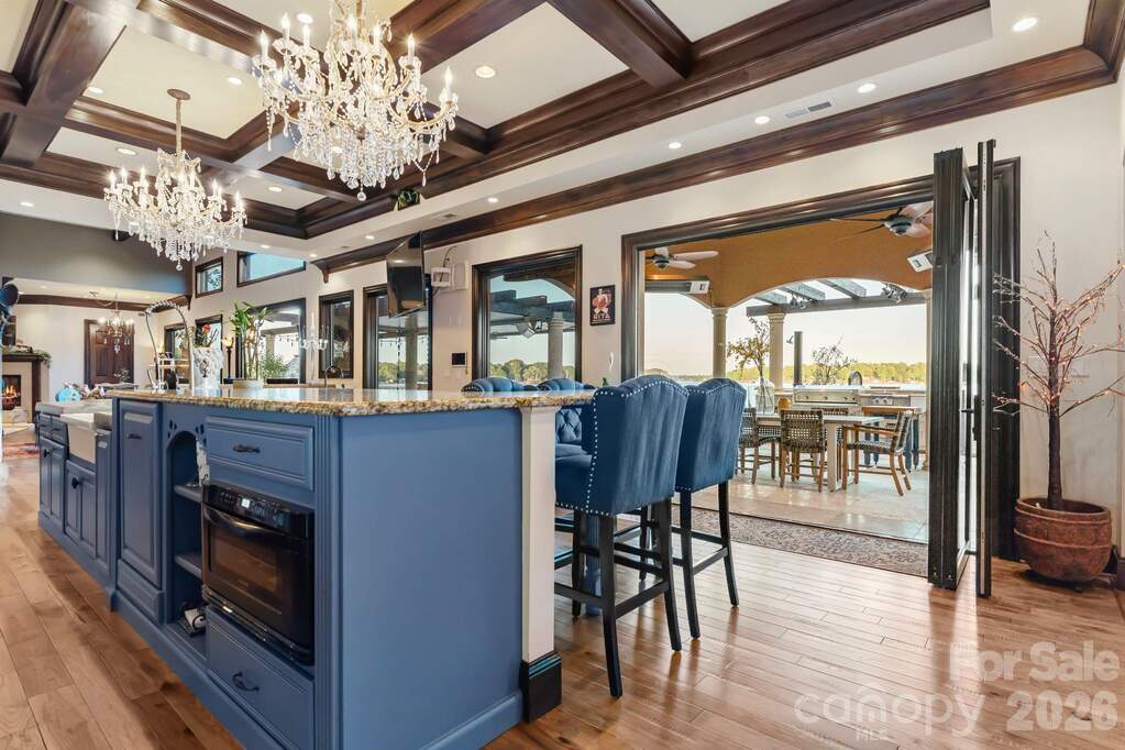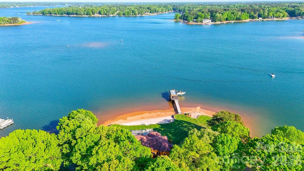 Extraordinary Mediterranean waterfront estate privately positioned on a rare .97-acre gated point lot with approximately 600 linear feet of shoreline, offering sweeping panoramic water views and the unique opportunity to enjoy both sunrise and sunset views across Lake Norman. A rare natural sandy beach, resort-style pool, and expansive outdoor living spaces featuring an outdoor kitchen and fireplace create an exceptional setting for lakeside entertaining and relaxation.The main residence offers approximately 7,500 square feet with 4 bedrooms and 4.5 baths, thoughtfully designed with spacious light-filled interiors and seamless indoor-outdoor flow. A detached 600 sq ft studio guest house with a full bath provides ideal accommodations for extended family, guests, or private workspace flexibility. Enjoy lake life to the fullest from the private dock complete with a lift and a lakeside bar, perfect for entertaining after a day on the water. Car enthusiasts and adventure seekers will appreciate the oversized garage featuring a dedicated third-bay RV garage for additional vehicles, boats, or recreational storage. With unmatched shoreline presence, resort-style amenities, sunrise-to-sunset views, and exceptional privacy, this one-of-a-kind Sherrills Ford waterfront estate represents a rare opportunity to own a true Lake Norman legacy