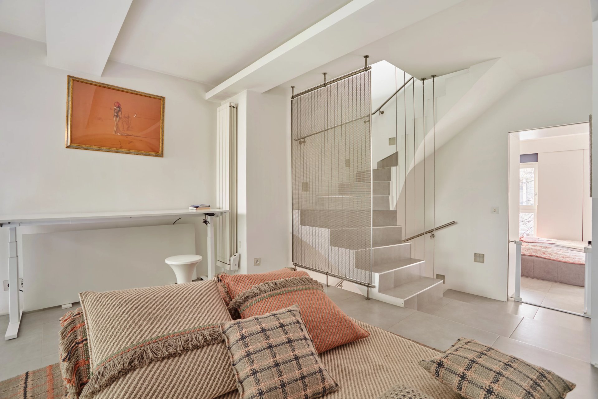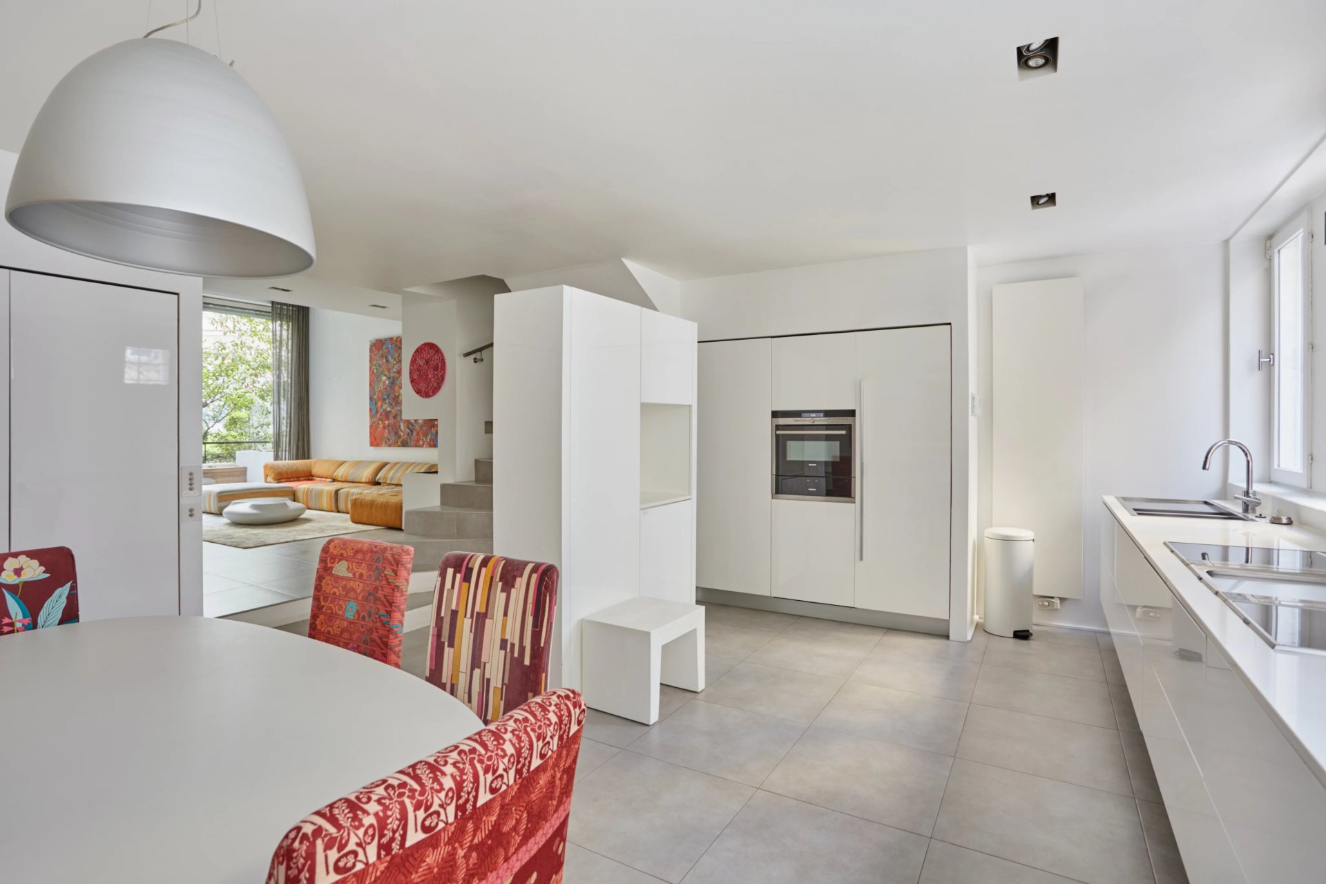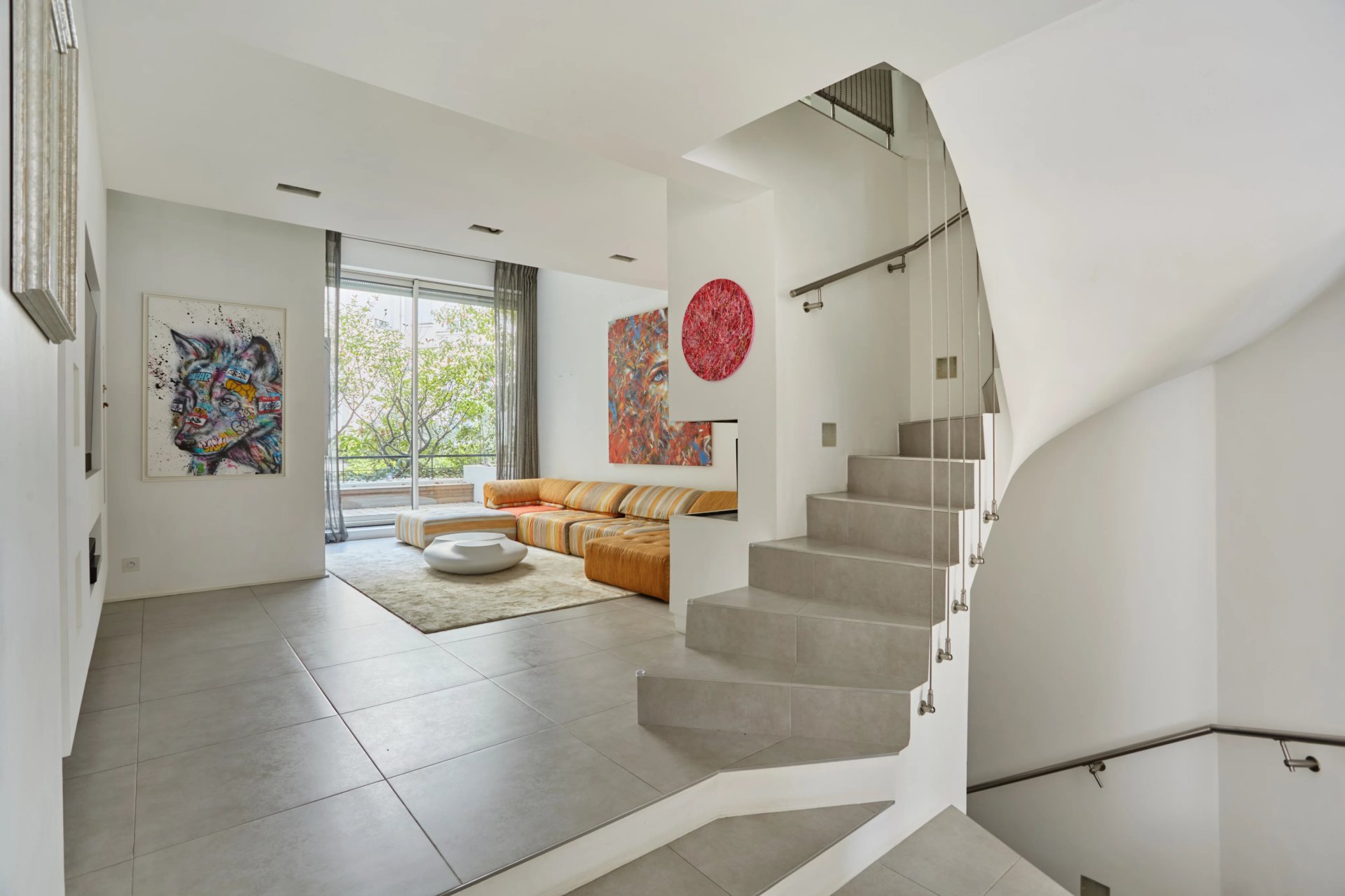Distribué sur quatre niveaux, il propose au rez-de-chaussée un hall d'entrée desservant une chambre avec salle de douche et toilettes, une buanderie intégrant une cave à vin sur mesure, un espace dressing et des WC invités. Le garage privatif, desservi par ce même niveau, peut être converti en salle de sport. Le premier étage consacré aux espaces de réception offre un salon avec cheminée totalement ouvert sur une terrasse exposée plein sud, et un vaste espace salle à manger avec cuisine ouverte.