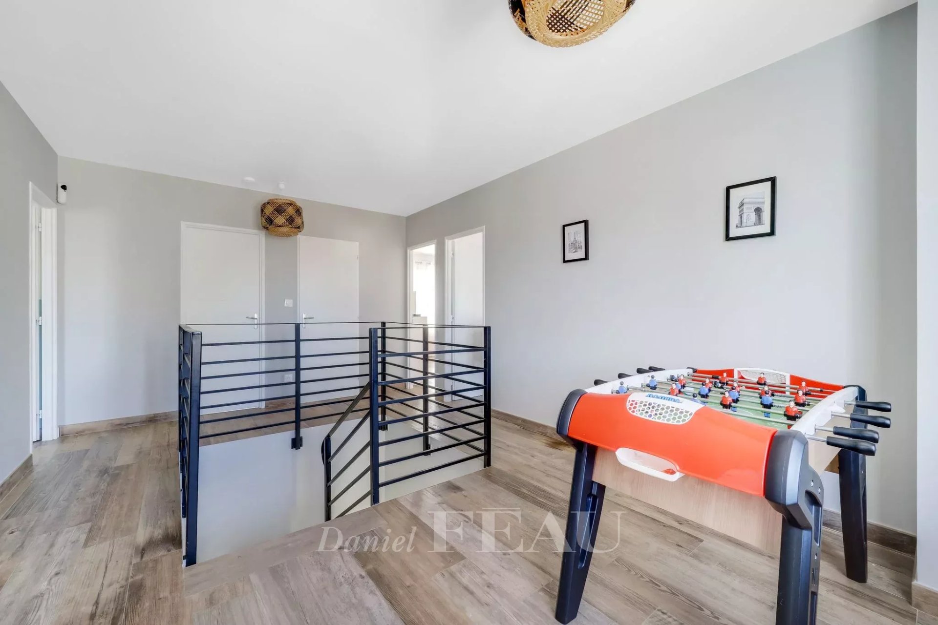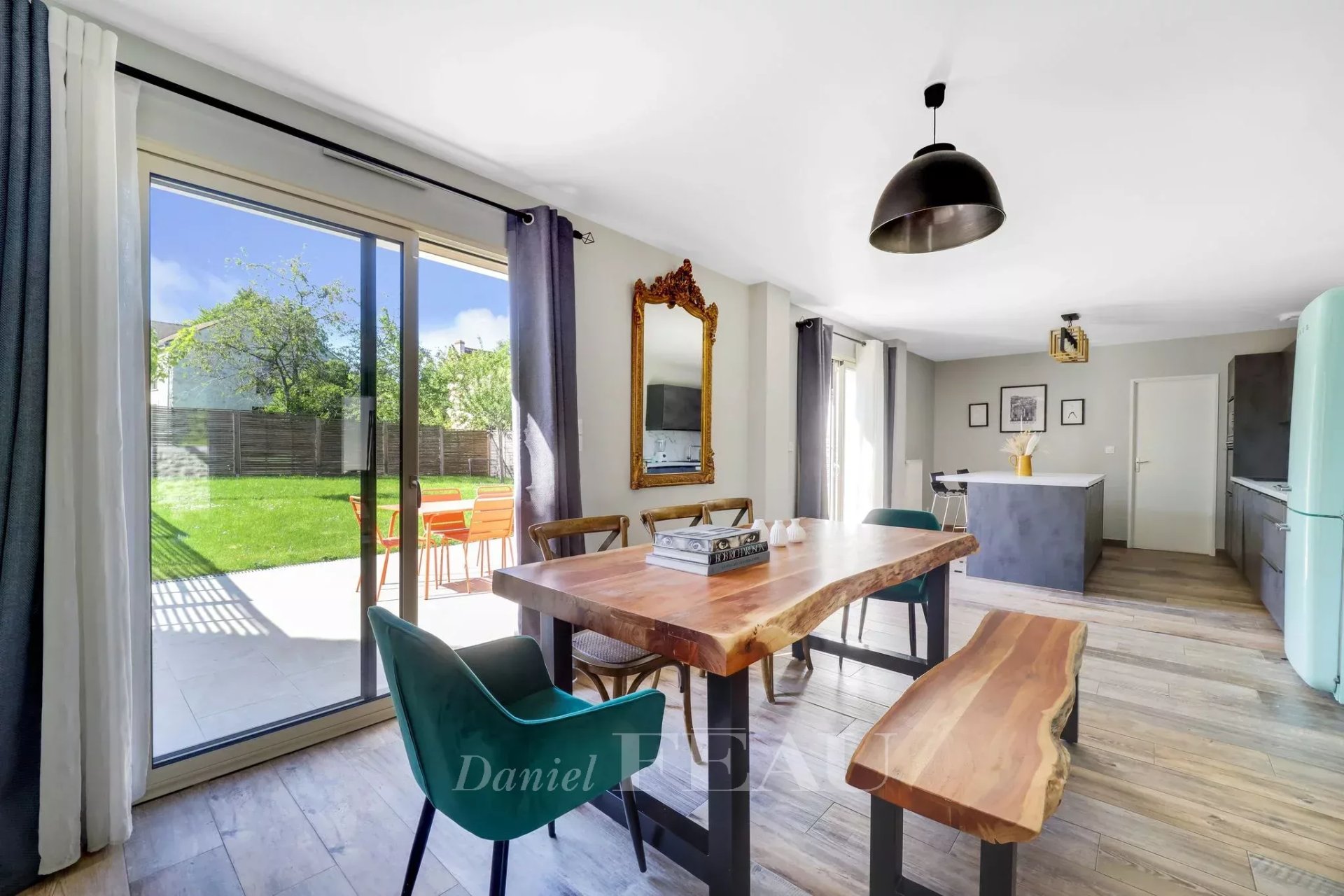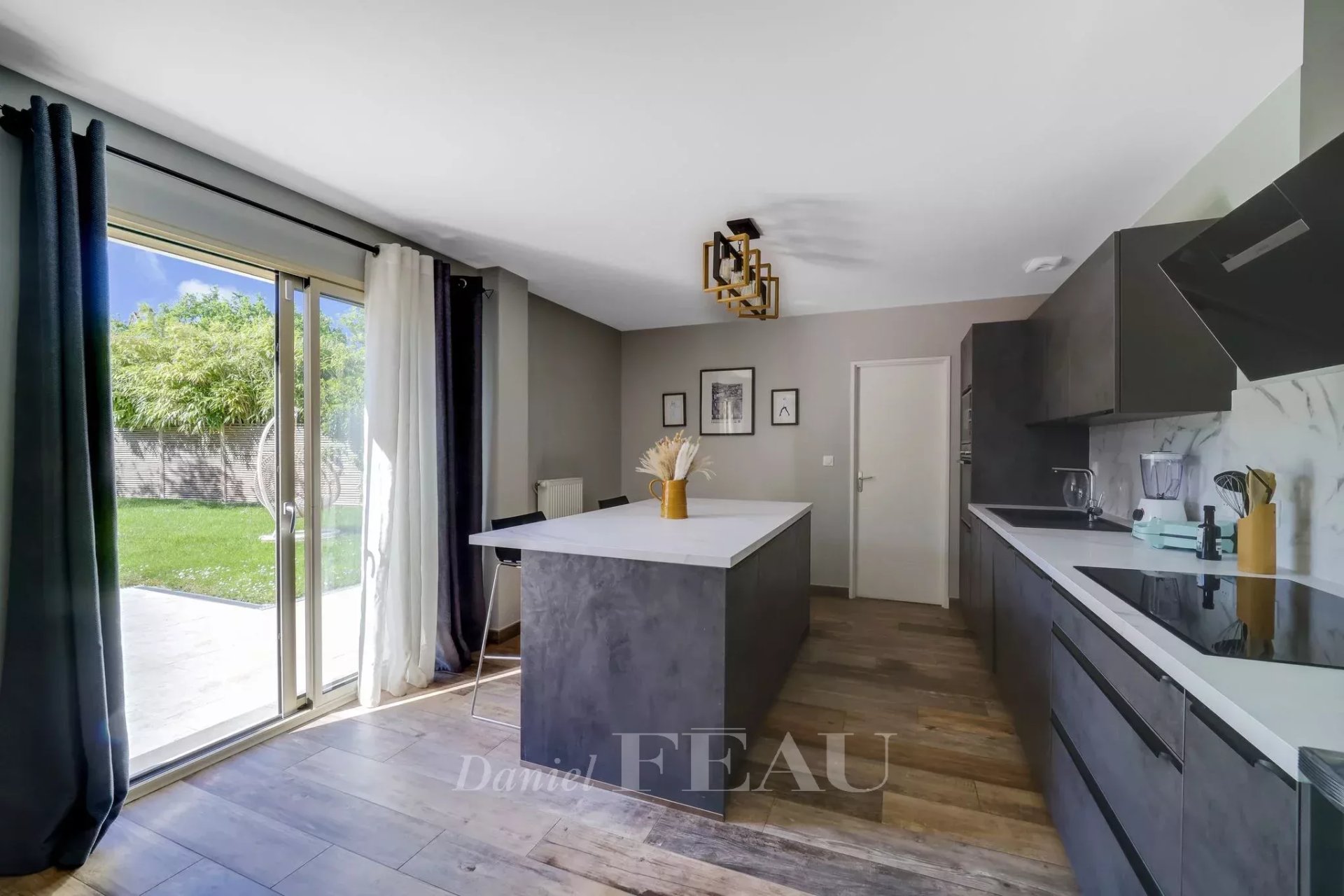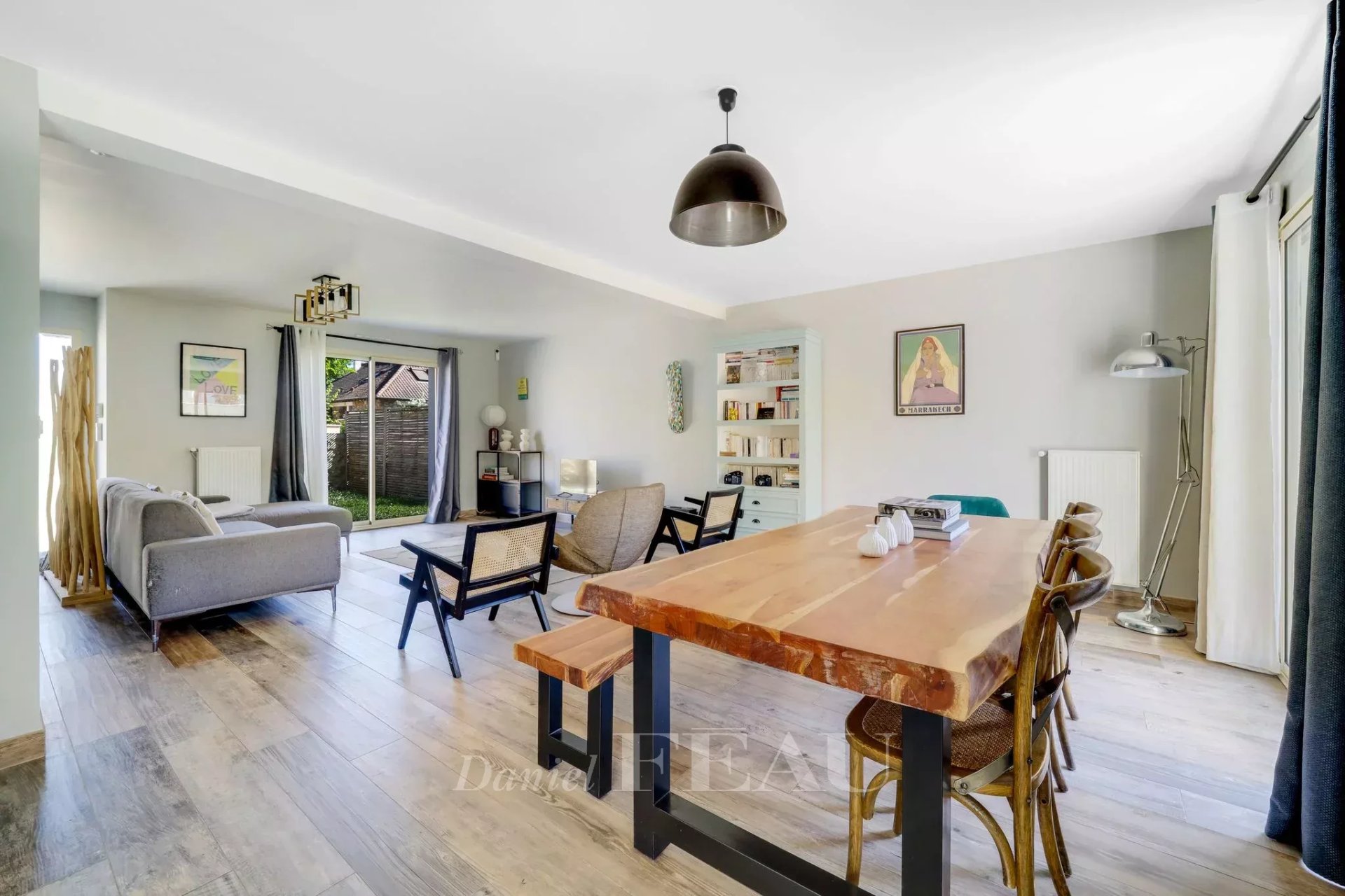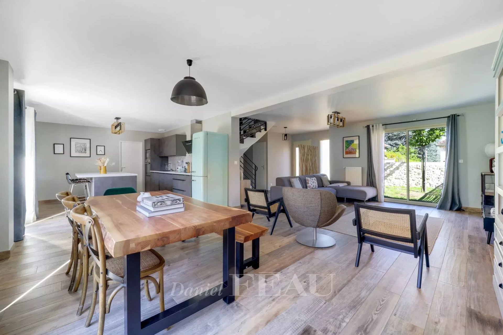 Située dans un environnement calme et familial, cette maison de 173 m² se compose au rez-de-jardin d'une grande pièce de vie avec accès de plein pied sur la terrasse et le jardin clos comprenant un salon, une salle à manger et une cuisine ouverte aménagée et équipée avec îlot central. Une chambre, un dressing, des toilettes d'invités avec lave-mains, une buanderie et un accès au garage complètent ce premier niveau.