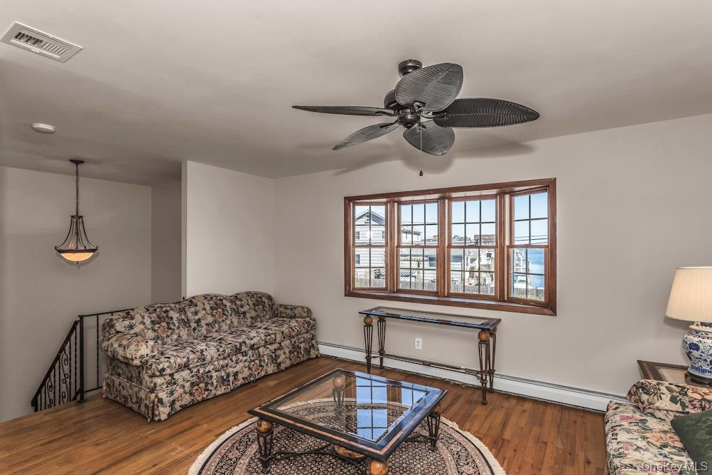 Unpack and enjoy your summer in this well-maintained In-line High Ranch in Lindenhurst School District. Serene living space is light and airy offering an open floor plan, freshly painted, with breathtaking views of the Great South Bay. Updates include roof, siding, windows within the last two years. Brand new stove and dishwasher in your eat-in-kitchen. 2 Zone Gas Heat, Central Air on the second floor and updated split-unit on the first floor. The backyard provides privacy with mature landscaping and in-ground sprinkler system. Close to the Wellwood Docks and Shore Road Park. Accessory apartment with proper permits.