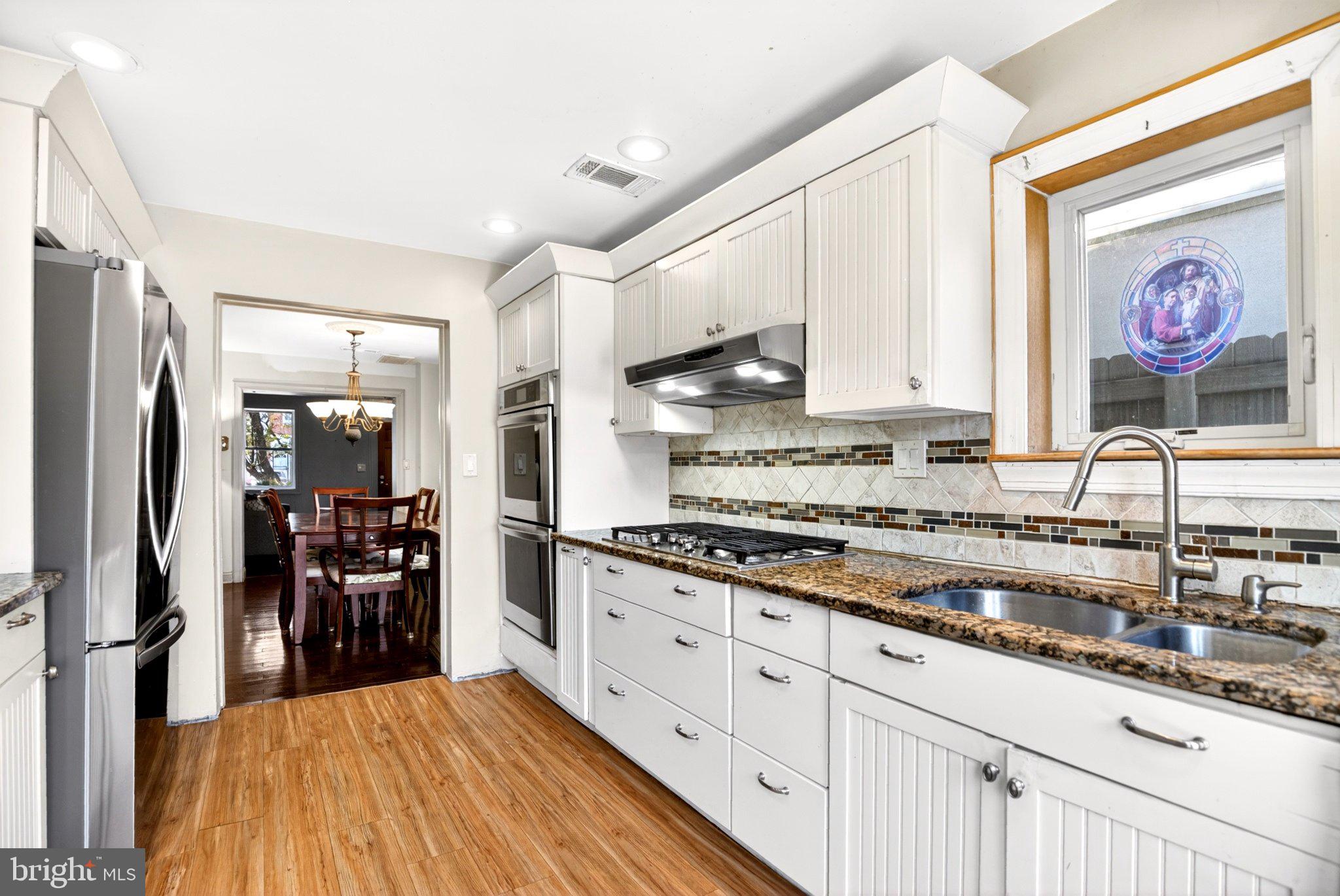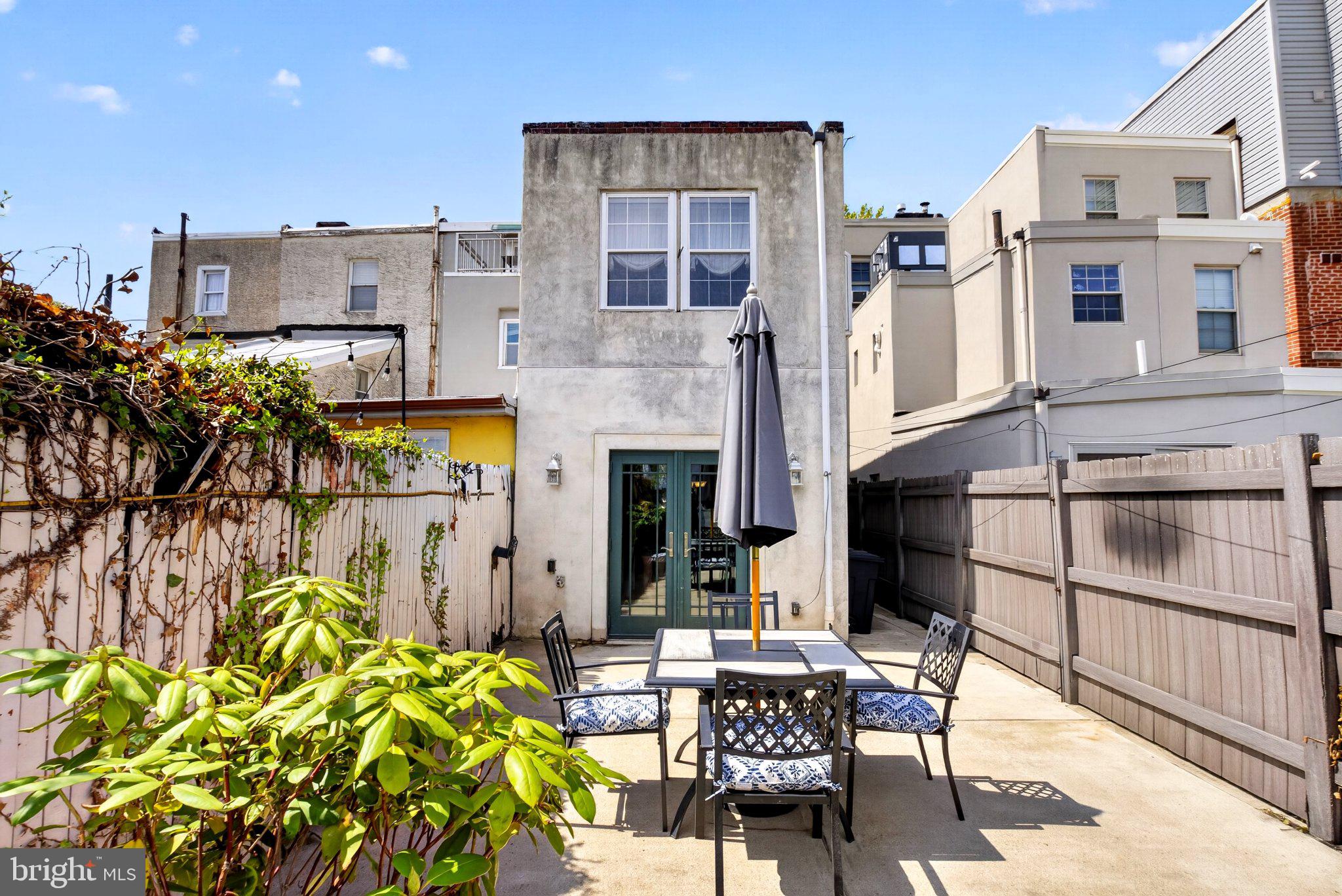 Nice new listing on a wide, tree-lined Pennsport block, just a stone's throw from Queen Village. Welcome to 1119 E Moyamensing Avenue, a three-story, three-bedroom, one-bath home spanning approximately 65 feet deep, filled with natural light, hardwood floors, and a massive, private outdoor space, a rare find. Enter into a bright living room with hardwood floors that flow seamlessly into a sizable dining area with side windows. The space opens to an expansive kitchen featuring abundant cabinetry, custom built-ins, granite countertops, designer tile backsplash, and stainless steel appliances. Large double doors lead to a fabulous oversized yard with a side breezeway, ideal for entertaining or relaxing. The second floor offers straight stairs to a hall landing with a window, a front bedroom, full tiled bath, convenient hall laundry, and a rear bedroom with windows on multiple exposures providing excellent natural light. The third floor features a spacious bedroom with built-ins and access to the roof, perfect opportunity for a future roof deck with some nice, open and airy views. Full basement for mechanicals and storage. Property offers solid space and potential but is ready for updating. A great block and great location, walking distance to everything Queen Village and Pennsport have to offer including restaurants, cafes, parks, and playgrounds. Schedule your showing today!