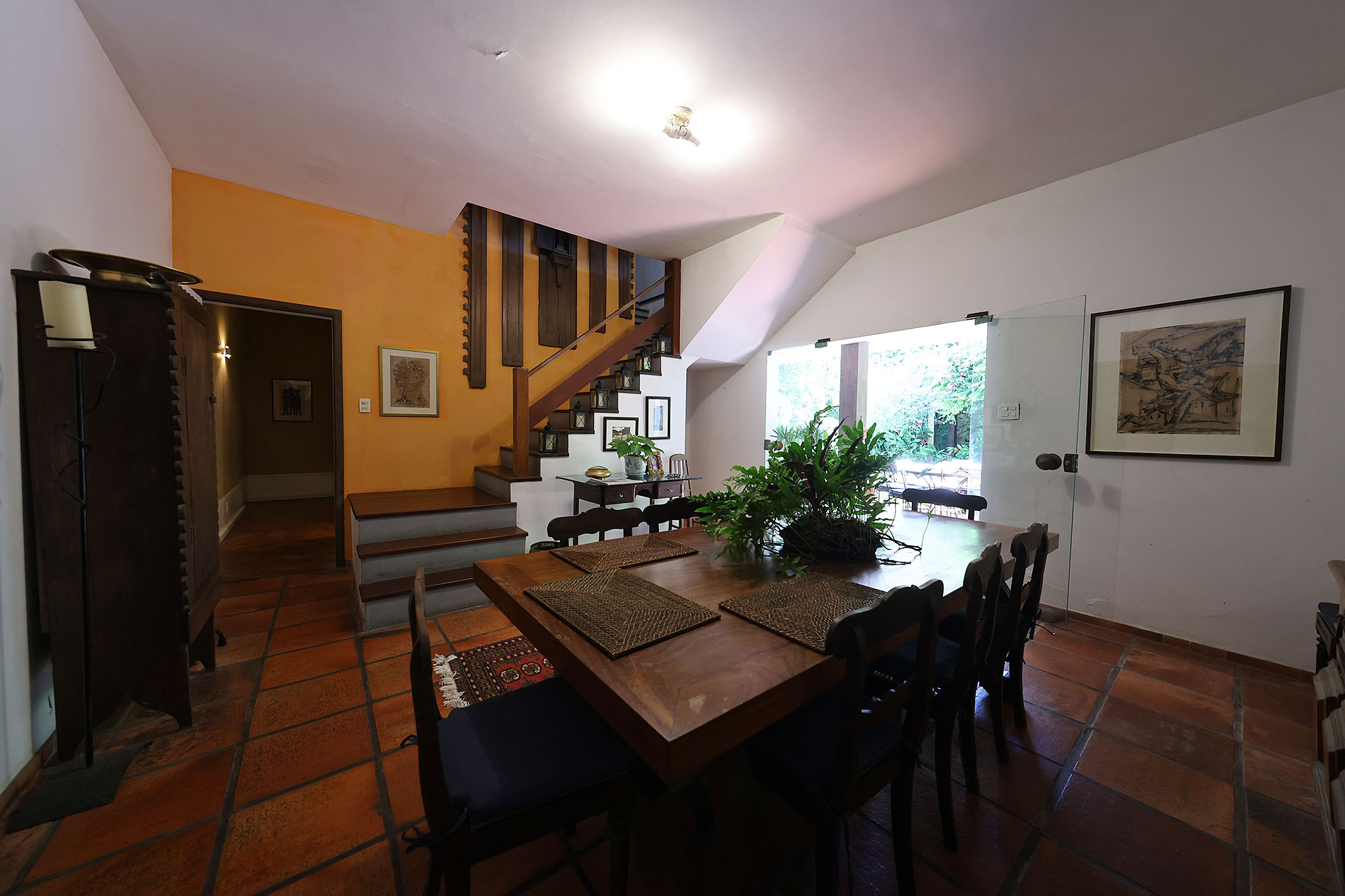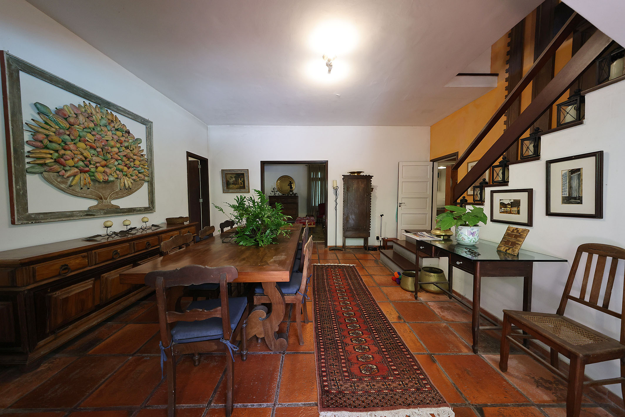 Located in a gated community with 24-hour security in São Conrado, this house offers approximately 504 square meters with a layout that emphasizes spacious interiors and integration between indoor and outdoor areas. The property includes four bedrooms, one of which is a suite, along with a shared bathroom and a powder room. The living areas are distributed in a functional way, supporting both everyday living and social gatherings. The outdoor area features an adult pool, children’s pool, barbecue space, outdoor seating area, support powder room, and a shower, creating a setting suited for entertaining. Additional features include a storage room, three parking spaces, and two complete staff quarters with bathrooms. On the second floor, two bedrooms with walk-in closets share a bathroom, complemented by a sitting area that enhances privacy and comfort within the private quarters. A residence in a well-established area of São Conrado, designed for practicality, security, and well-structured living spaces.