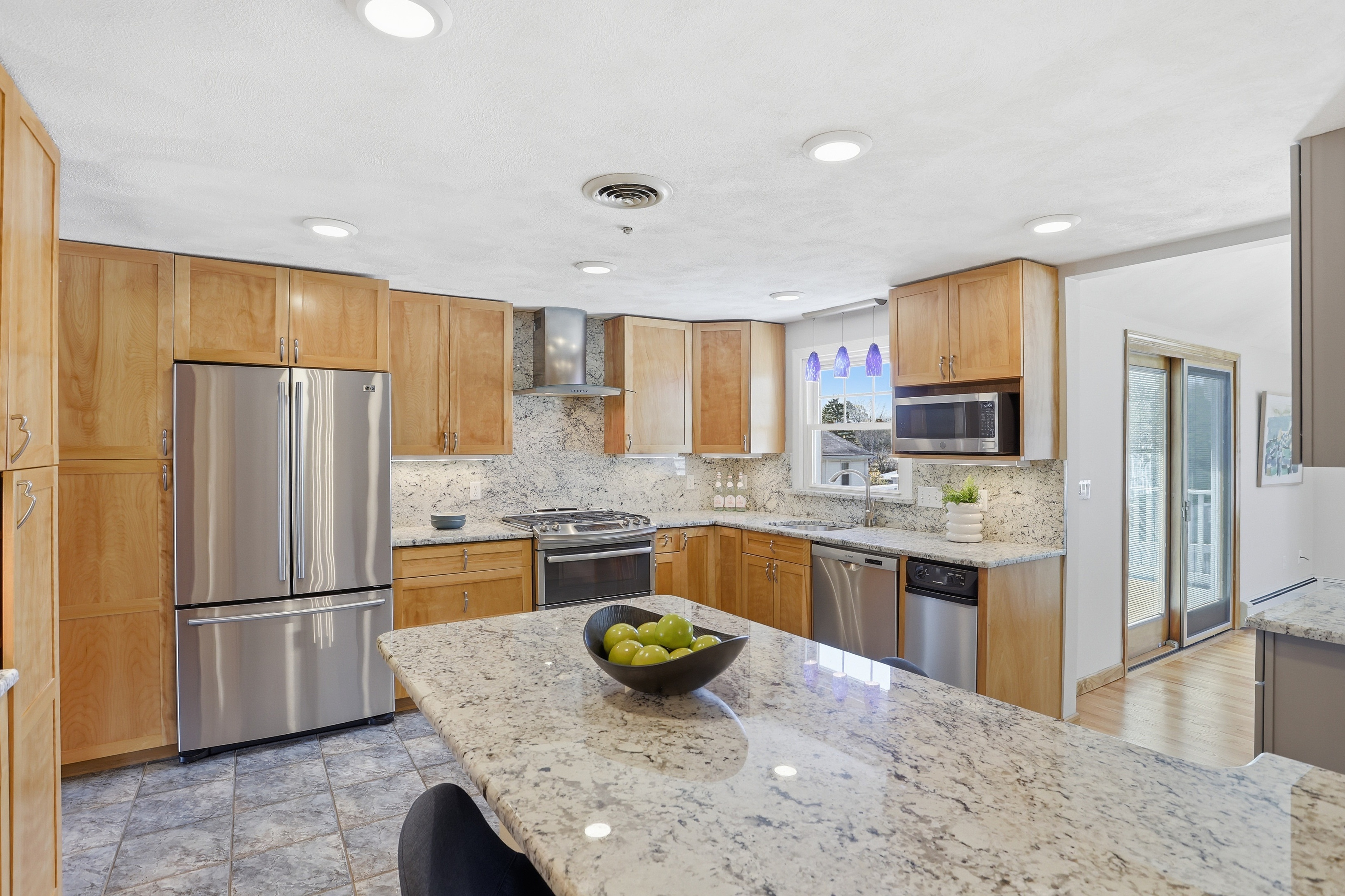 Set on a sunny corner lot in the desirable Briarwood neighborhood, this spacious and beautifully maintained split-level home offers exceptional flexibility, comfort and commuter convenience. The main level features refinished oak floors, a fireplace living room, dining room and a stunning family room with vaulted ceilings, beams and sliders that lead to a rear deck-perfect for indoor-outdoor living. The updated kitchen is a culinary delight with granite countertops, SS appliances and ample cabinetry. There are three generous bedrooms to include a primary with an en-suite bath plus a hall bathroom that completes the main level. The finished lower level is a standout, offering a fireplace office, a generous flex room with direct exterior access, a kitchenette, laundry, and a full bath-ideal for guests, extended family or multigenerational living. Additional features include central A/C and underground irrigation. Located near Waverly Sq. Bentley University, and easy access to Route 128.
