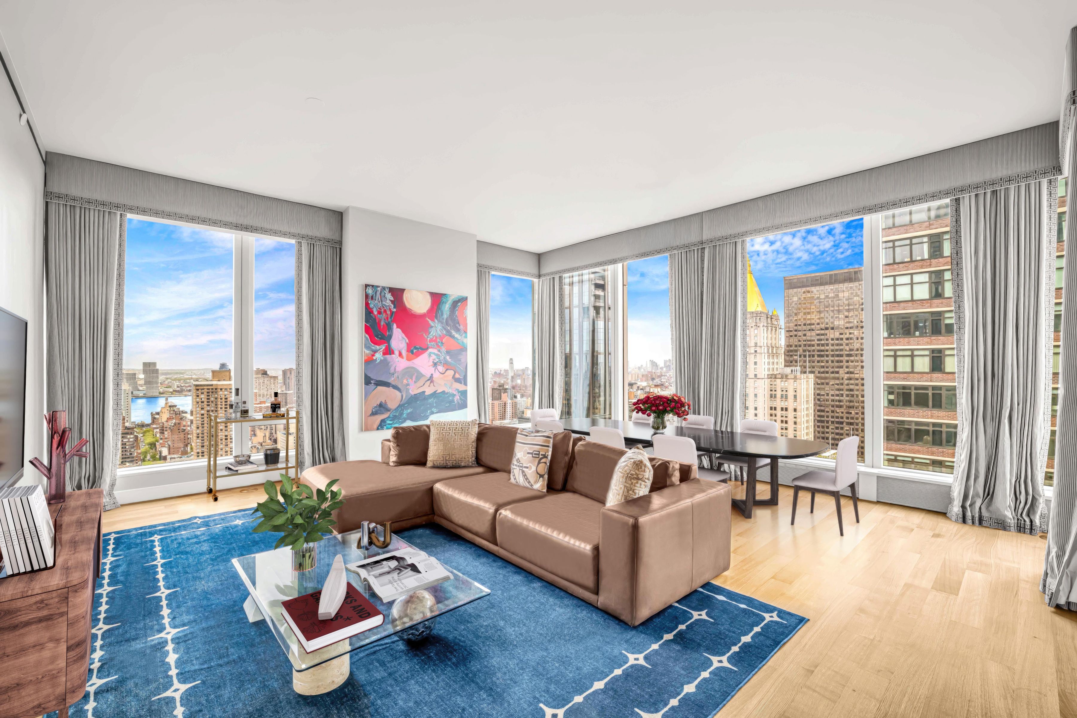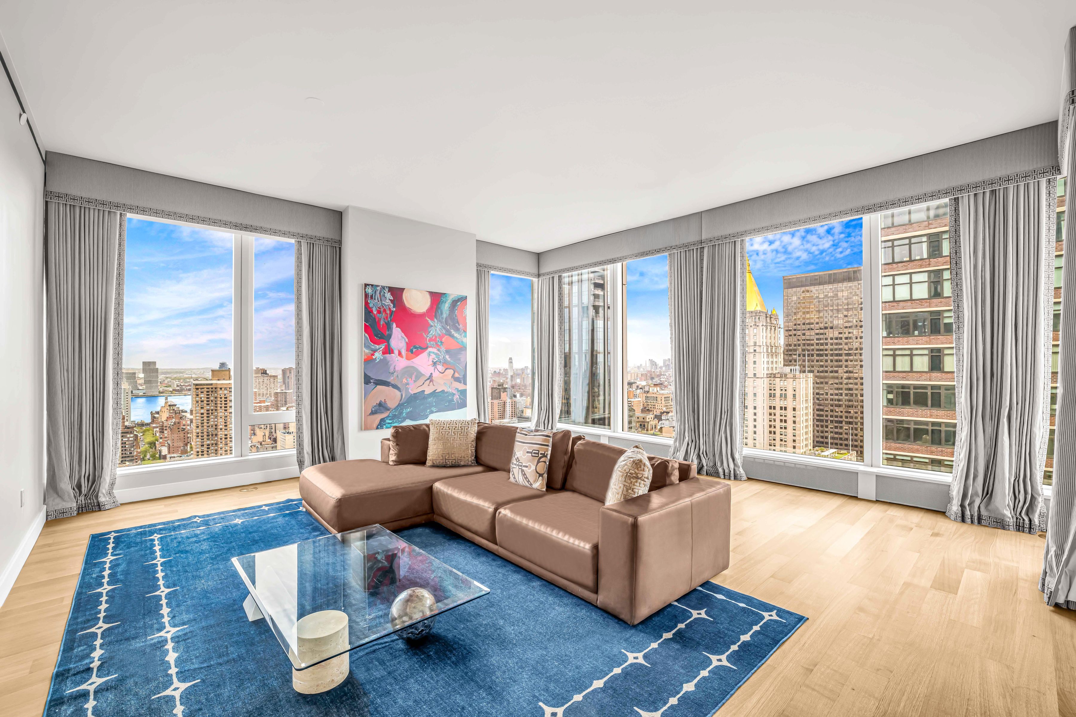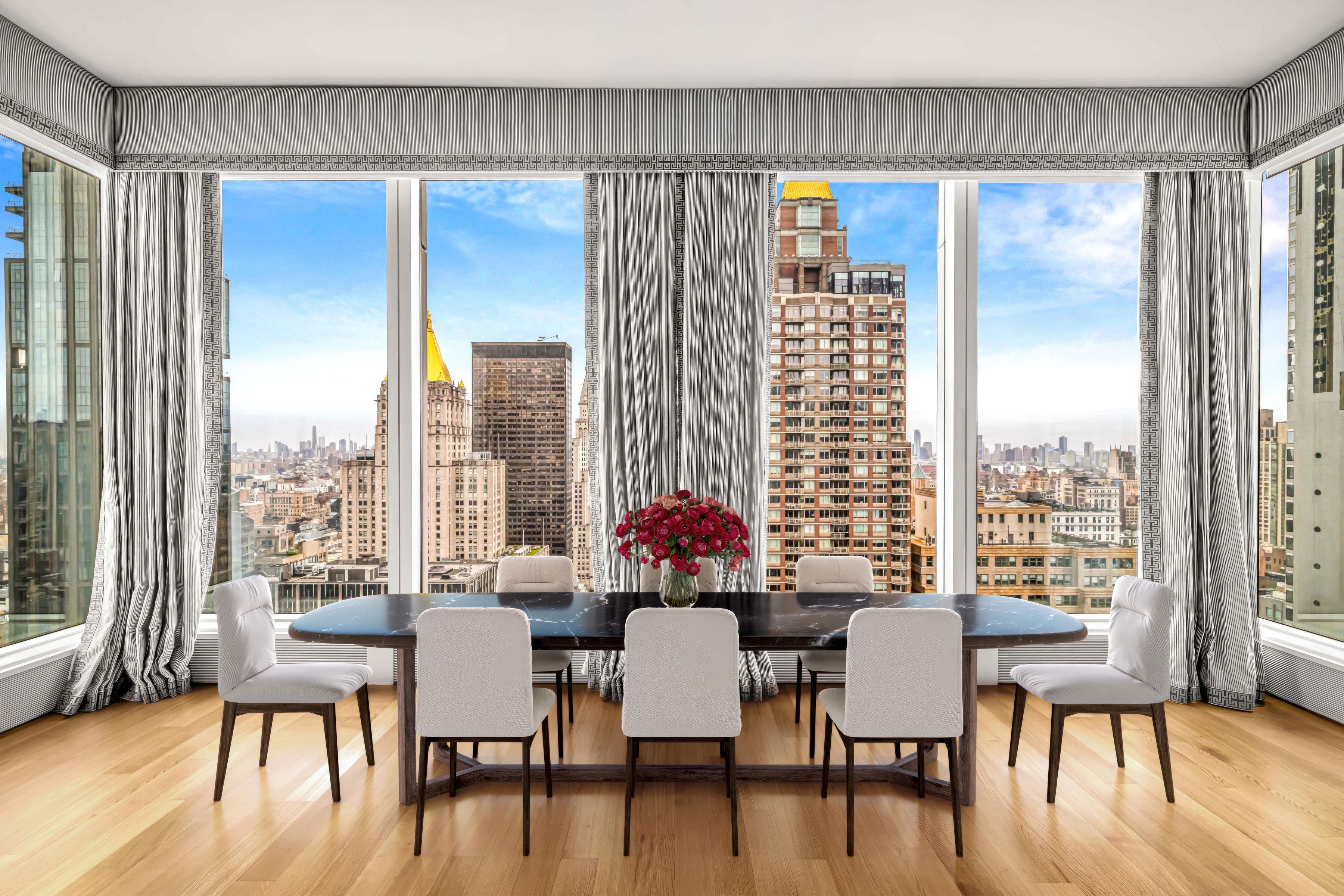 Sun-Filled Corner Residence with Panoramic Views at Madison House This exceptional two-bedroom, two-and-a-half-bath corner residence offers approximately 1,650+/- square feet of refined living, wrapped in South, East, and West exposures that flood the home with natural light and showcase sweeping panoramic city views. An elegant entry foyer sets the tone, leading into a dramatic living and dining space framed by soaring ceilings and oversized windows. Designed for both entertaining and everyday living, the open chef’s kitchen is a striking centerpiece, featuring custom rift-cut cabinetry by Gachot, a honed Calacatta Borghini marble waterfall island and backsplash, and a full suite of integrated Gaggenau appliances, including a cooktop, combi-steam oven, convection double oven, refrigerator, and wine refrigerator. A private vestibule thoughtfully separates the living spaces from the primary suite, enhancing privacy. The serene bedroom retreat features a generous walk-in closet and a spa-caliber bath clad in honed Bianco Dolomiti marble, complete with a custom Gachot-designed vanity, Dornbracht fixtures, Kaldewei soaking tub, and Duravit fittings with Radiant heated floors. The second bedroom offers its own en-suite bath and equally compelling city views. Additional highlights include white oak plank flooring, solid walnut doors, washer/dryer, electronic window treatments, and a beautifully appointed powder room finished in Calacatta Nuevo and Absolute Black marble. Designed by Handel Architects, Madison House is a striking NoMad tower that redefines modern luxury living. Residents enjoy over 30,000 square feet of curated amenities, including a double-height attended lobby, a spa with a 75-foot lap pool, cold plunge, hot tub, steam room, sauna, and treatment suite, as well as a landscaped roof garden. Entertain in the Gachot-designed private lounge and bar, host in the 14-seat dining room with catering kitchen, or relax in the sports lounge with golf simulator and billiards. A state-of-the-art fitness center, yoga studio, conference room, card room, reading room, and children’s playroom complete this exceptional lifestyle offering.