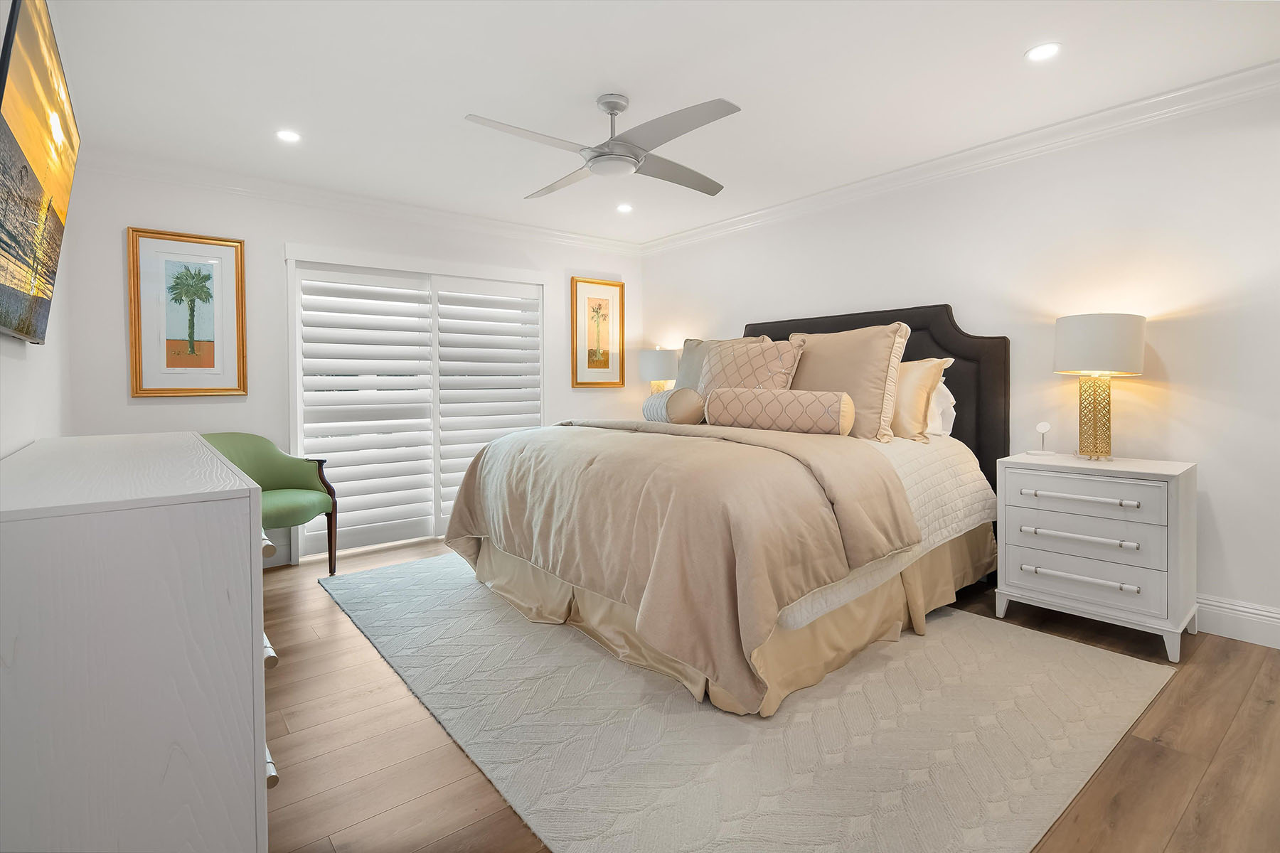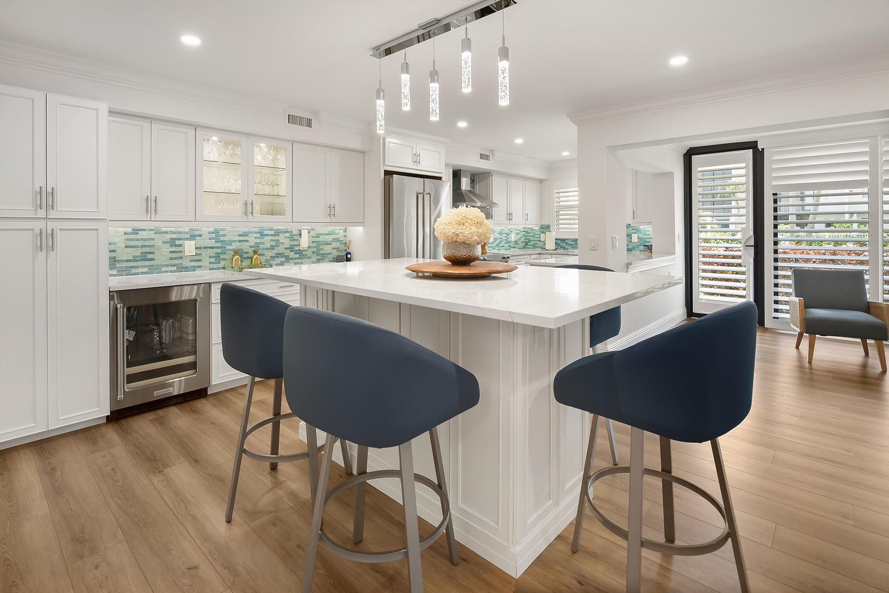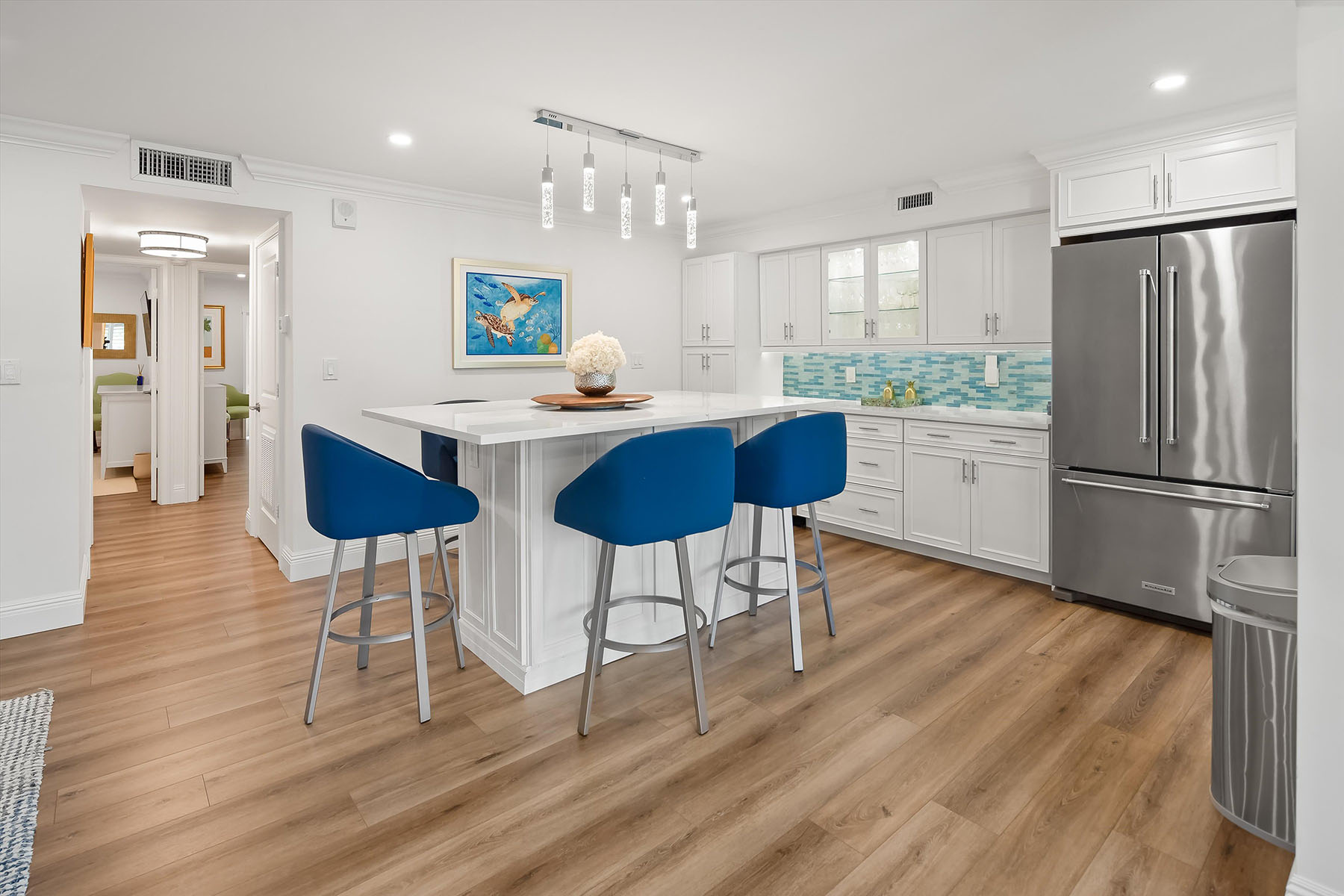 Positioned near the beaches of Naples, this turnkey-furnished residence offers a rare combination of coastal proximity and thoughtful interior renovation. Extensively updated in 2023, the property reflects a refined approach to design, functionality and long-term livability. Impact-resistant windows and continuous luxury vinyl plank flooring establish a cohesive interior, complemented by a neutral palette suited to a range of design preferences. The kitchen has been re-envisioned with quartz surfaces, stainless steel appliances and a glass tile backsplash, anchored by a streamlined stainless steel ventilation hood designed for efficiency and visual continuity. Both baths feature updated tilework, glass-enclosed showers and well-proportioned storage, creating a consistent aesthetic throughout the residence. A distinguishing element of this property is the presence of two private rear entrances with direct access from the covered carport, offering a level of convenience and separation not commonly found within the community.
