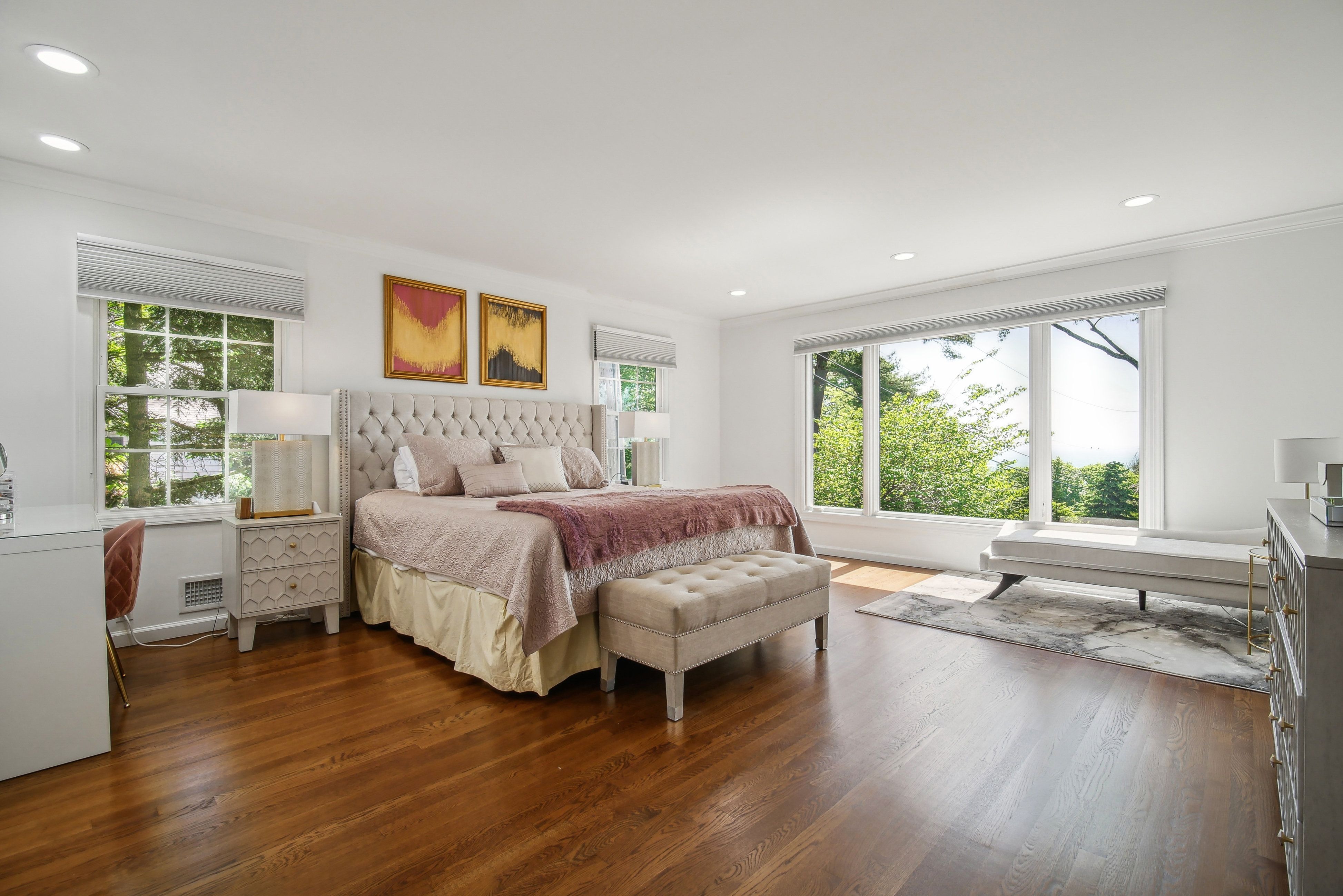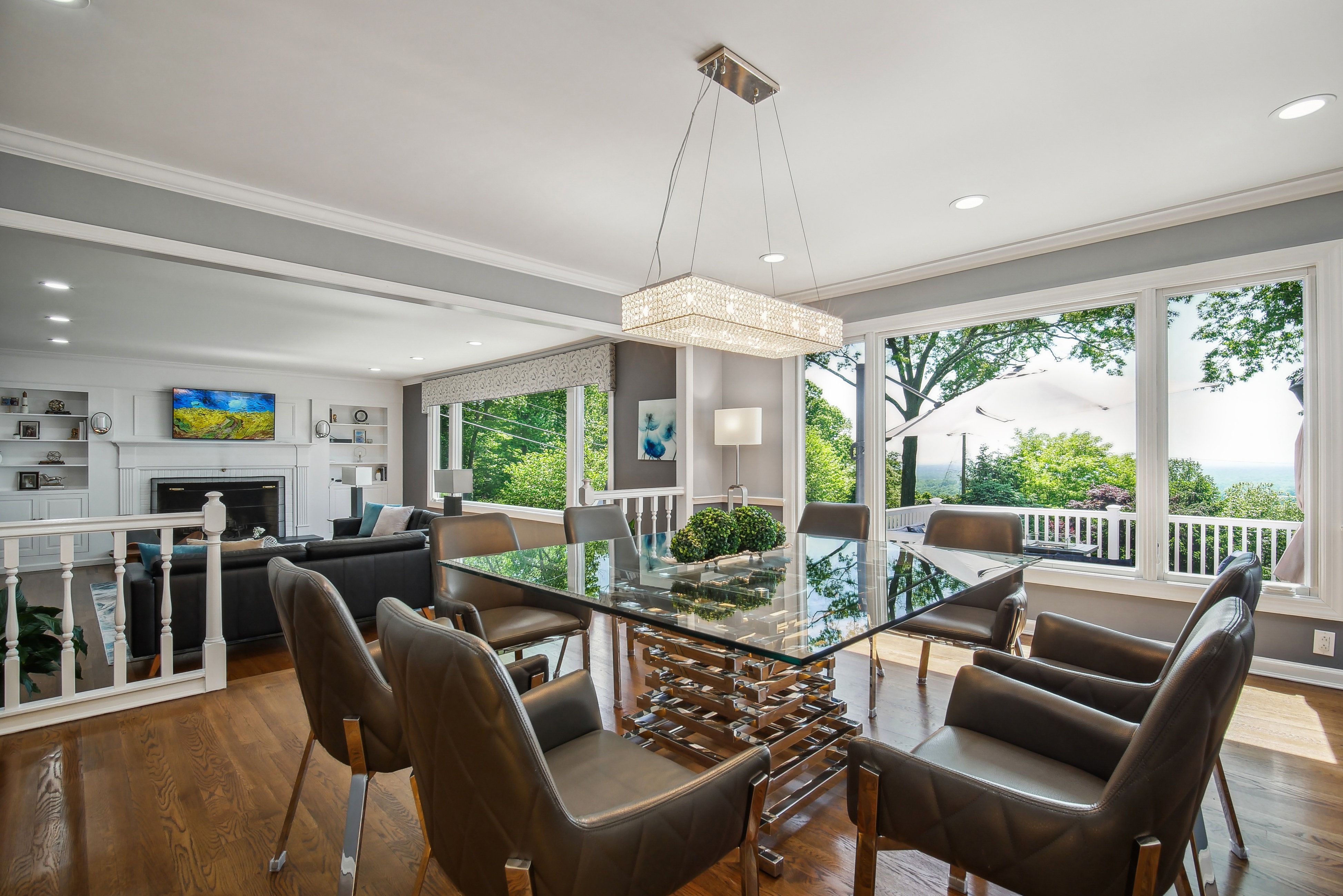 Premier location with breathtaking skyline views! This four bedrooms, three and a half baths custom home blends luxury, space, and modern upgrades on a professionally landscaped, fully fenced property with in ground sprinkler system. Open-concept living.room with fireplace, custom built ins and dining room with a wall of windows flow into a gourmet kitchen featuring a large center island, granite countertops, and Stainless Steel appliances, seamlessly extending to a maintenance-free Trex deck with professional lighting and a spacious paver patio. The first-floor primary suite offers a spa-like bath and custom walk-in closet. The second level includes three spacious bedrooms, generous closet space, and a finished game room. The lower level features an expansive family room with a second fireplace, wall of windows, custom wet bar, game room, an additional room with walk-in closet, full bath, and separate entrance makes this flex space an ideal guest or in-law suite. A rare combination of space, flexibility, and high-end features in a highly sought-after location.