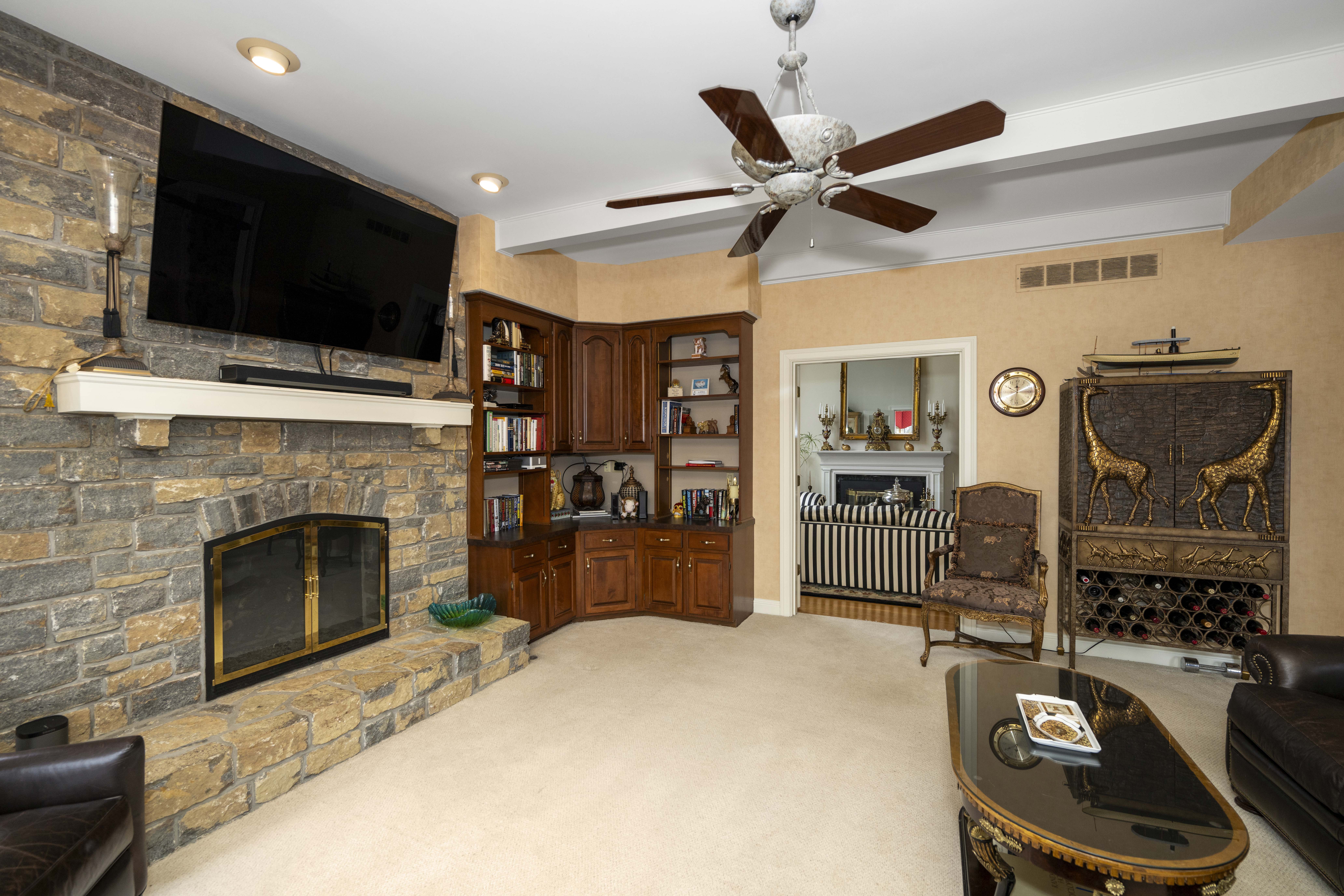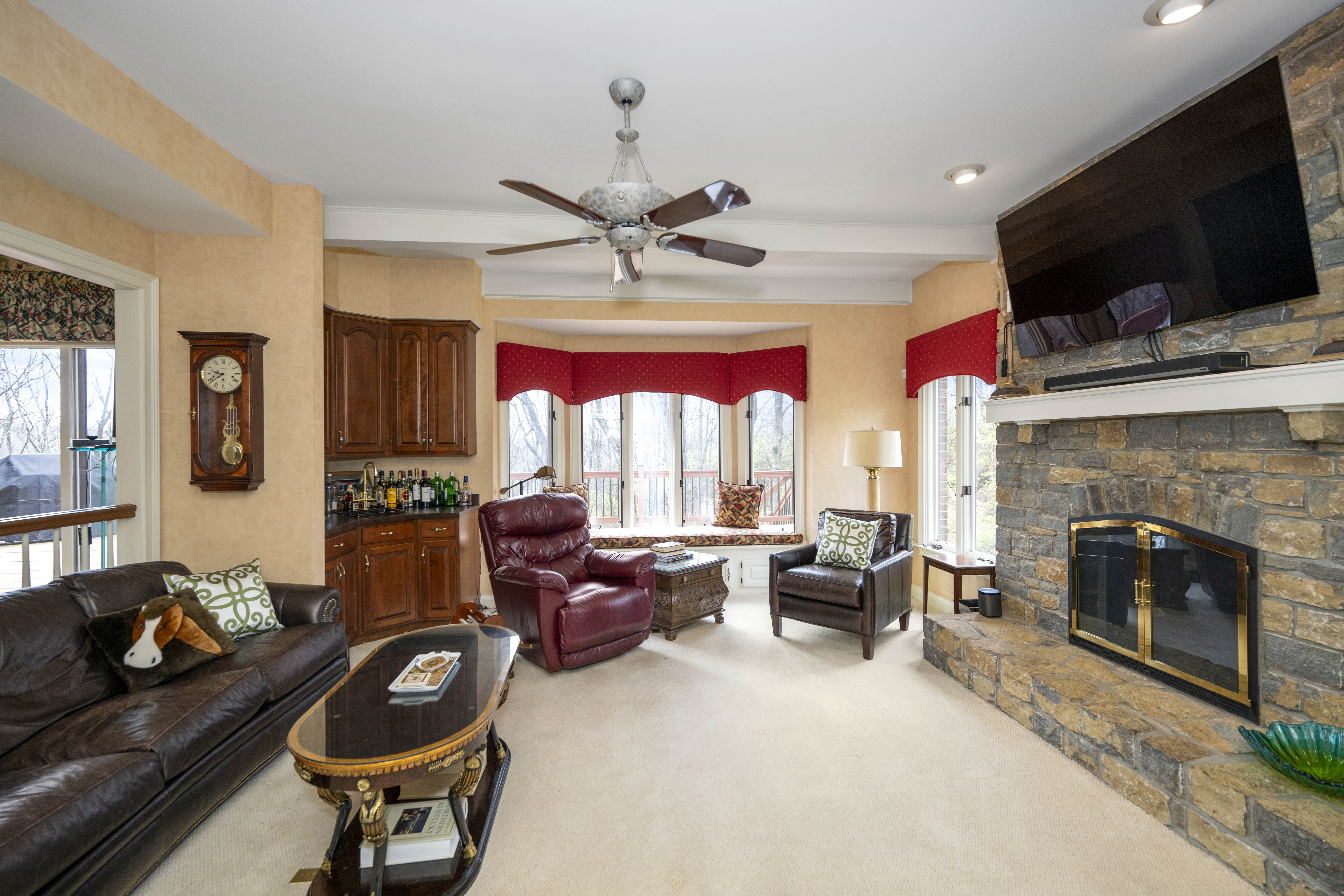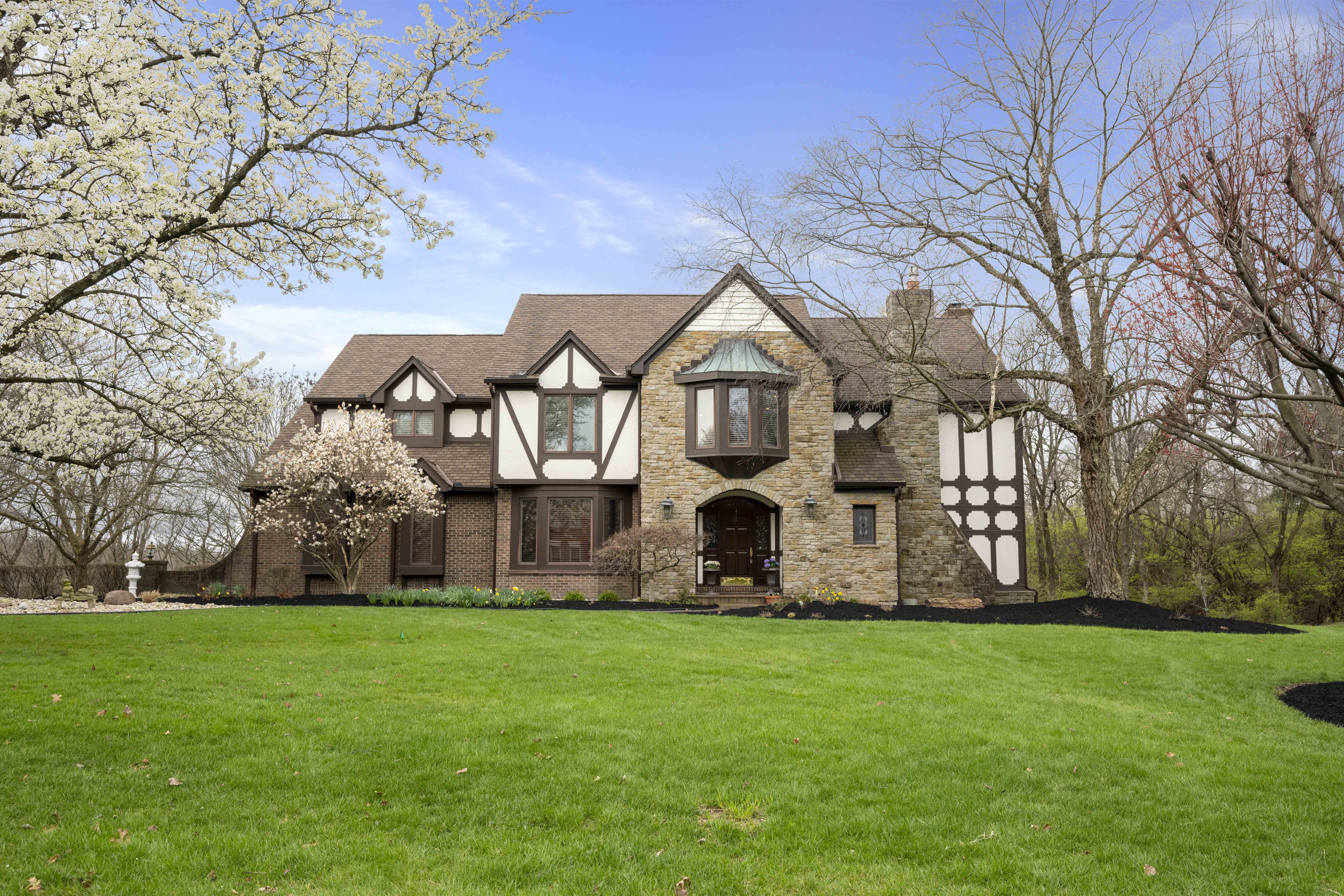 Welcome to 2041 Edenderry Drive, an exquisite Tudor-style home residing in the desirable Waterford Estates, well-appointed on approximately 1.5 acres! This sophisticated custom-built home showcases an elegant design and quality craftsmanship throughout, with timeless appeal. Step into the graceful and spacious foyer featuring a lovely staircase and hardwood flooring, guiding you into three finished levels. On the first level, French doors open to a two-story den with a balcony overlooking from above, a beautiful fireplace and a lovely wall feature of windows. Classic custom carpentry is displayed at every turn. Living room features an amazing stone fireplace, bay window and wet bar, opening up to the kitchen and breakfast area with hardwood flooring, counter-island and plenty of natural light from the set of windows to the walk-out leading to the expansive deck area with private wooded view. The dining room features custom built-ins, crown molding with a wet bar and an additional powder room leading from the hallway. There's also a wonderful sunroom on the first level to enjoy all the fabulous seasons. The generous primary suite includes a walk-in closet/dressing area you'll appreciate and the second floor laundry is just steps away. The bedroom adjacent to the primary is currently being used as an office. Plus, an additional 2nd floor flex area for an office with French doors opening up to the balcony area. The finished lower level is perfect for that extra space to relax or entertain, with custom fireplace and walkout to patio. In addition, there's plenty of storage to stay organized. The side entrance garage allows for that private entry. Established neighborhood with convenient location to shopping, dining, highway/interstate, airport and Downtown Cincinnati!