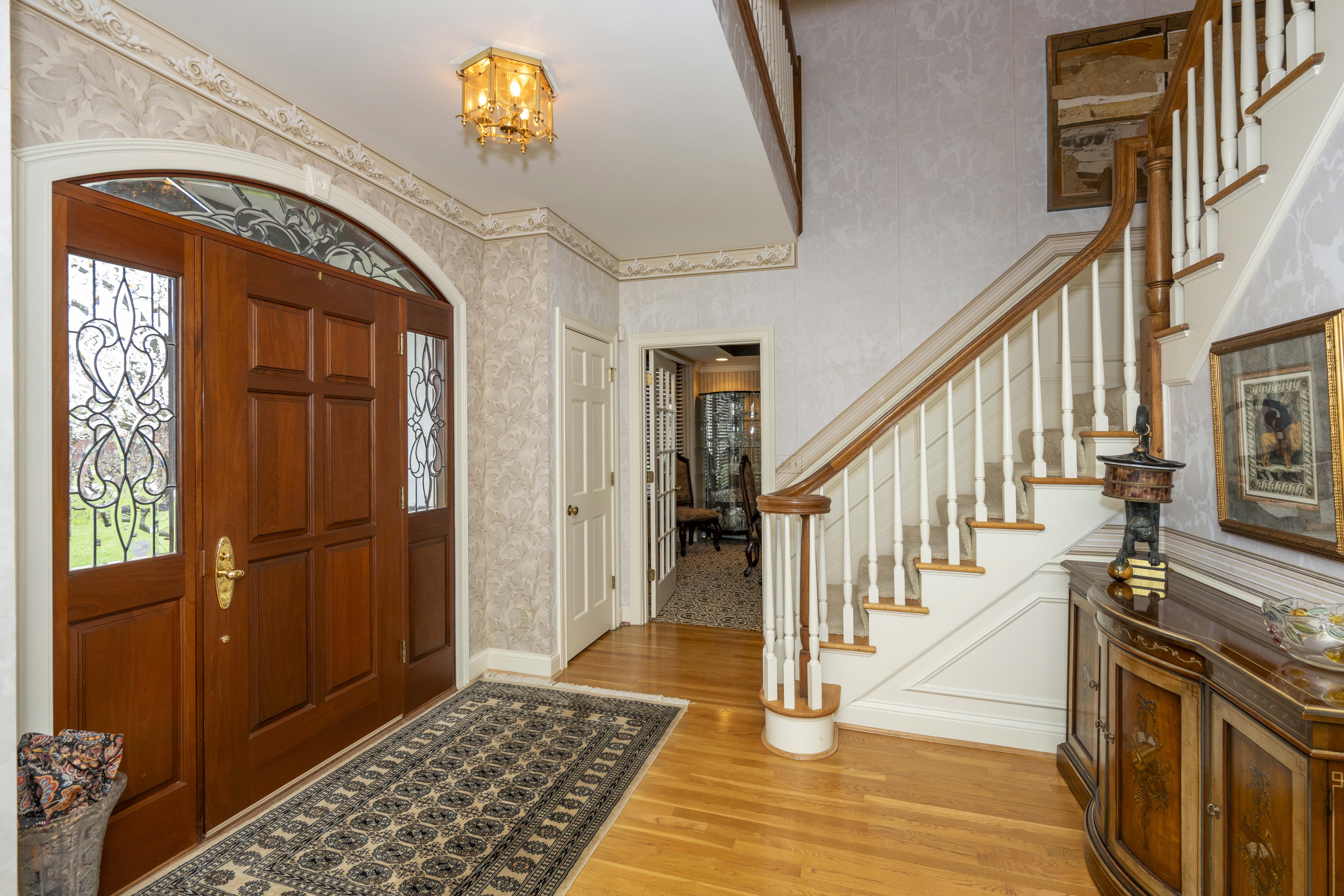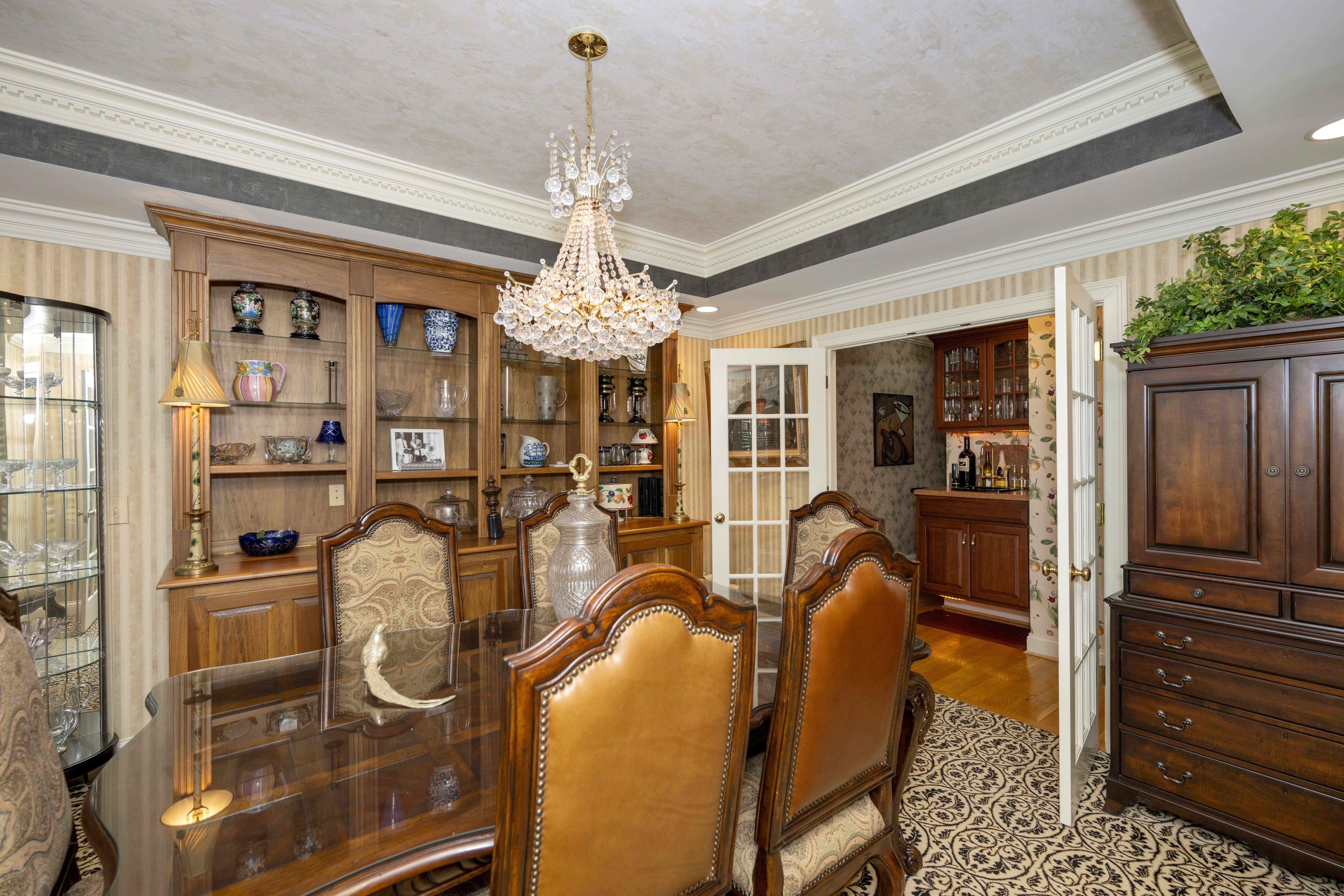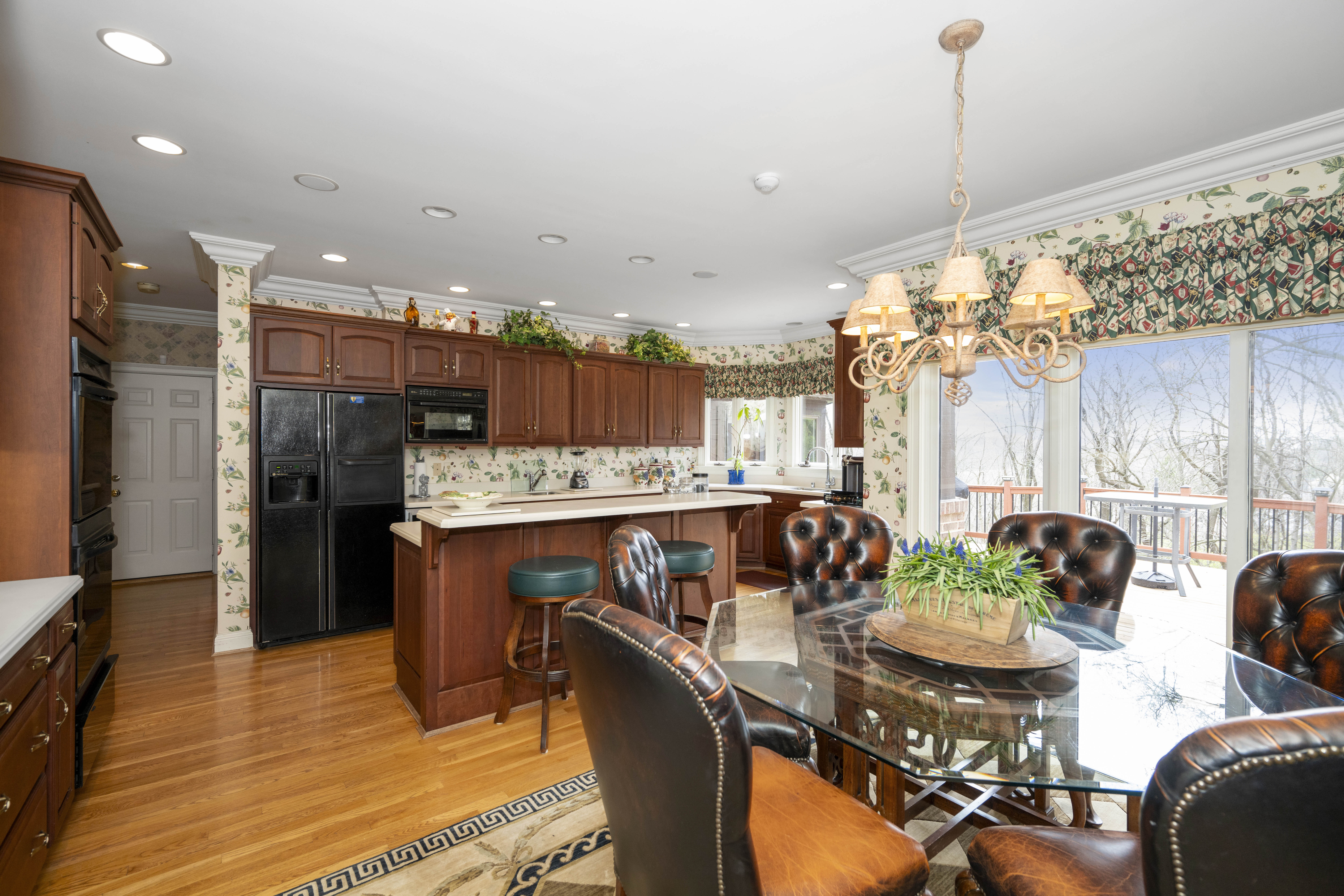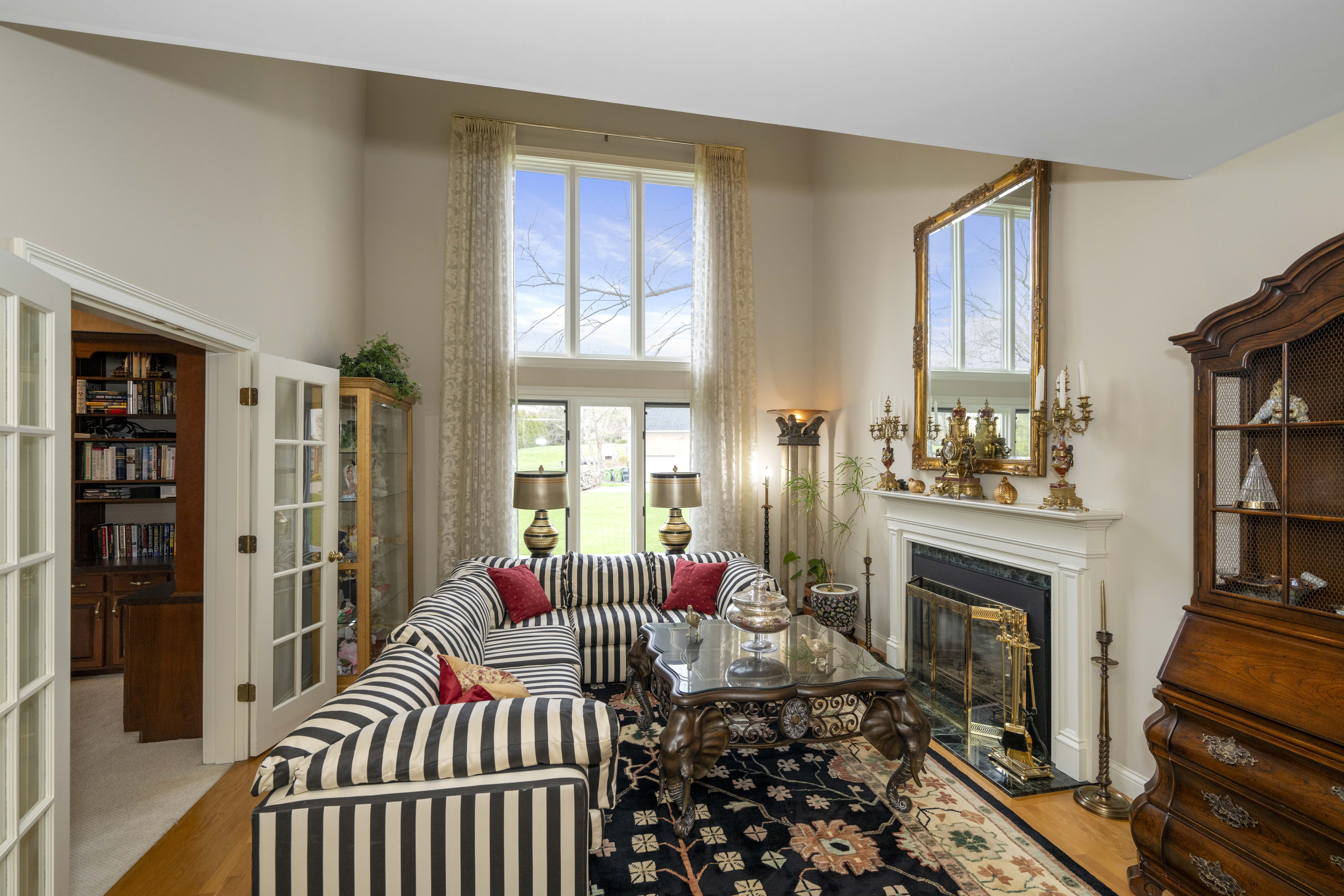 Welcome to 2041 Edenderry Drive, an exquisite Tudor-style home residing in the desirable Waterford Estates, well-appointed on approximately 1.5 acres! This sophisticated custom-built home showcases an elegant design and quality craftsmanship throughout, with timeless appeal. Step into the graceful and spacious foyer featuring a lovely staircase and hardwood flooring, guiding you into three finished levels. On the first level, French doors open to a two-story den with a balcony overlooking from above, a beautiful fireplace and a lovely wall feature of windows. Classic custom carpentry is displayed at every turn. Living room features an amazing stone fireplace, bay window and wet bar, opening up to the kitchen and breakfast area with hardwood flooring, counter-island and plenty of natural light from the set of windows to the walk-out leading to the expansive deck area with private wooded view. The dining room features custom built-ins, crown molding with a wet bar and an additional powder room leading from the hallway. There's also a wonderful sunroom on the first level to enjoy all the fabulous seasons. The generous primary suite includes a walk-in closet/dressing area you'll appreciate and the second floor laundry is just steps away. The bedroom adjacent to the primary is currently being used as an office. Plus, an additional 2nd floor flex area for an office with French doors opening up to the balcony area. The finished lower level is perfect for that extra space to relax or entertain, with custom fireplace and walkout to patio. In addition, there's plenty of storage to stay organized. The side entrance garage allows for that private entry. Established neighborhood with convenient location to shopping, dining, highway/interstate, airport and Downtown Cincinnati!