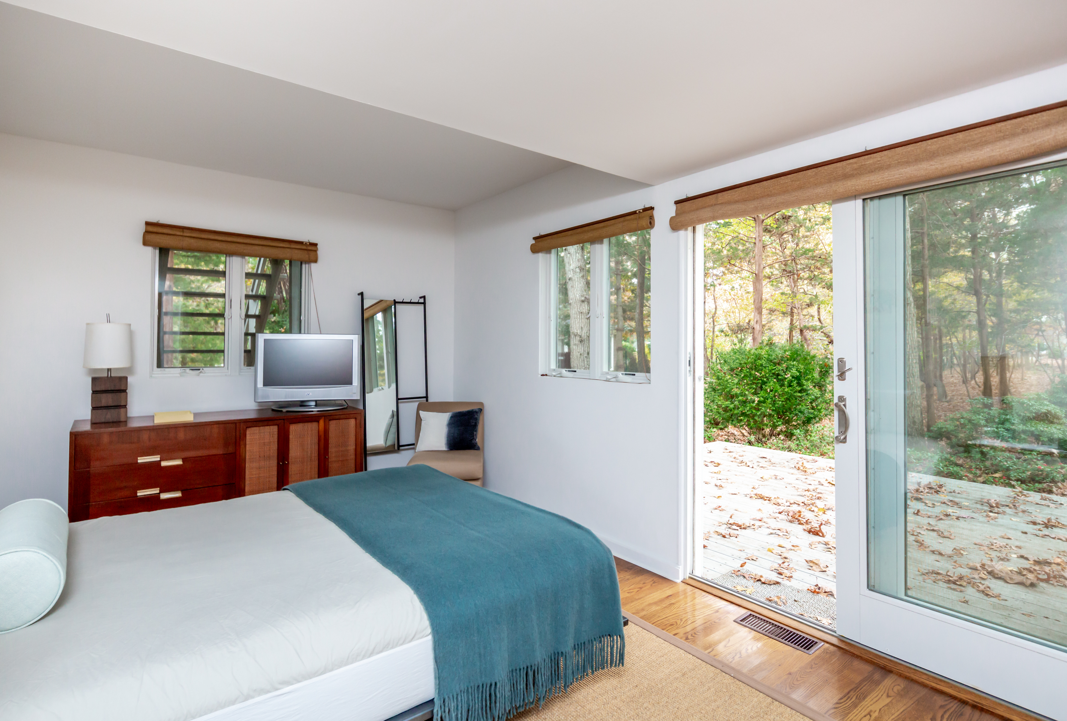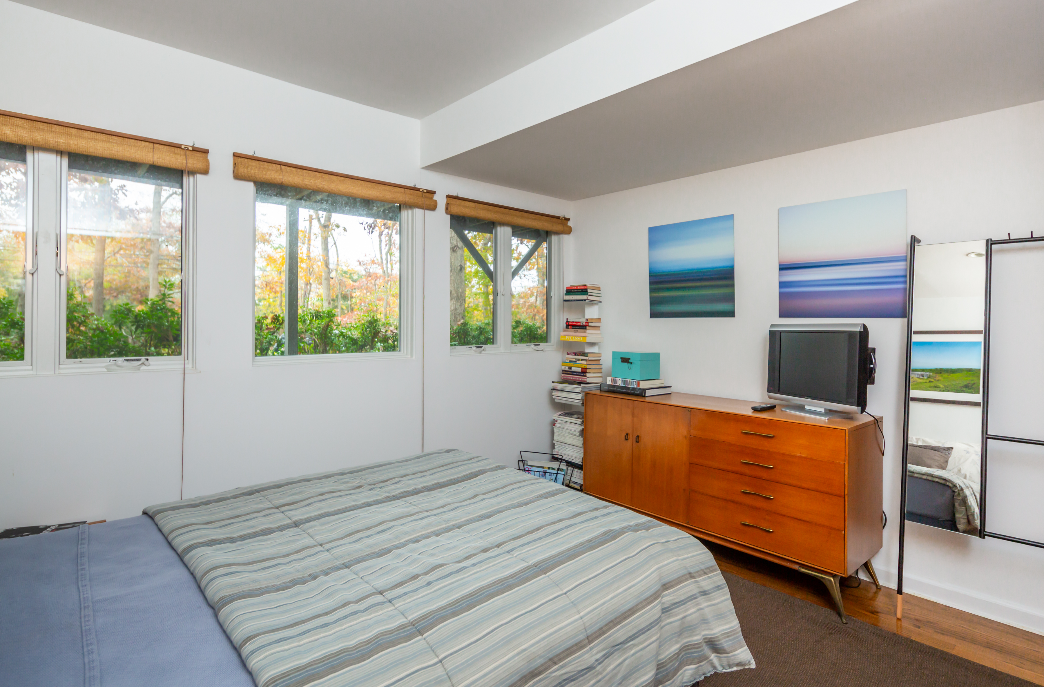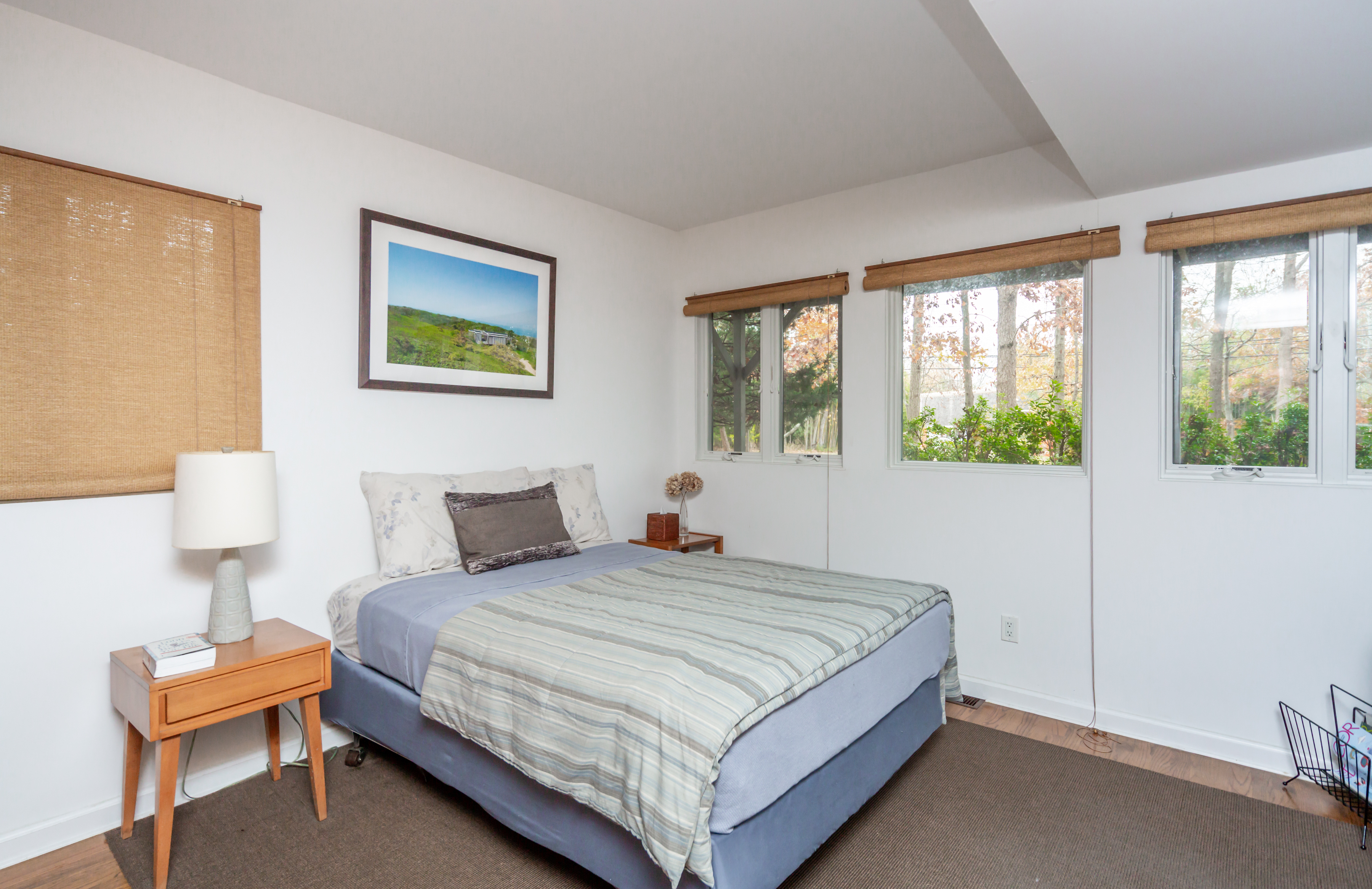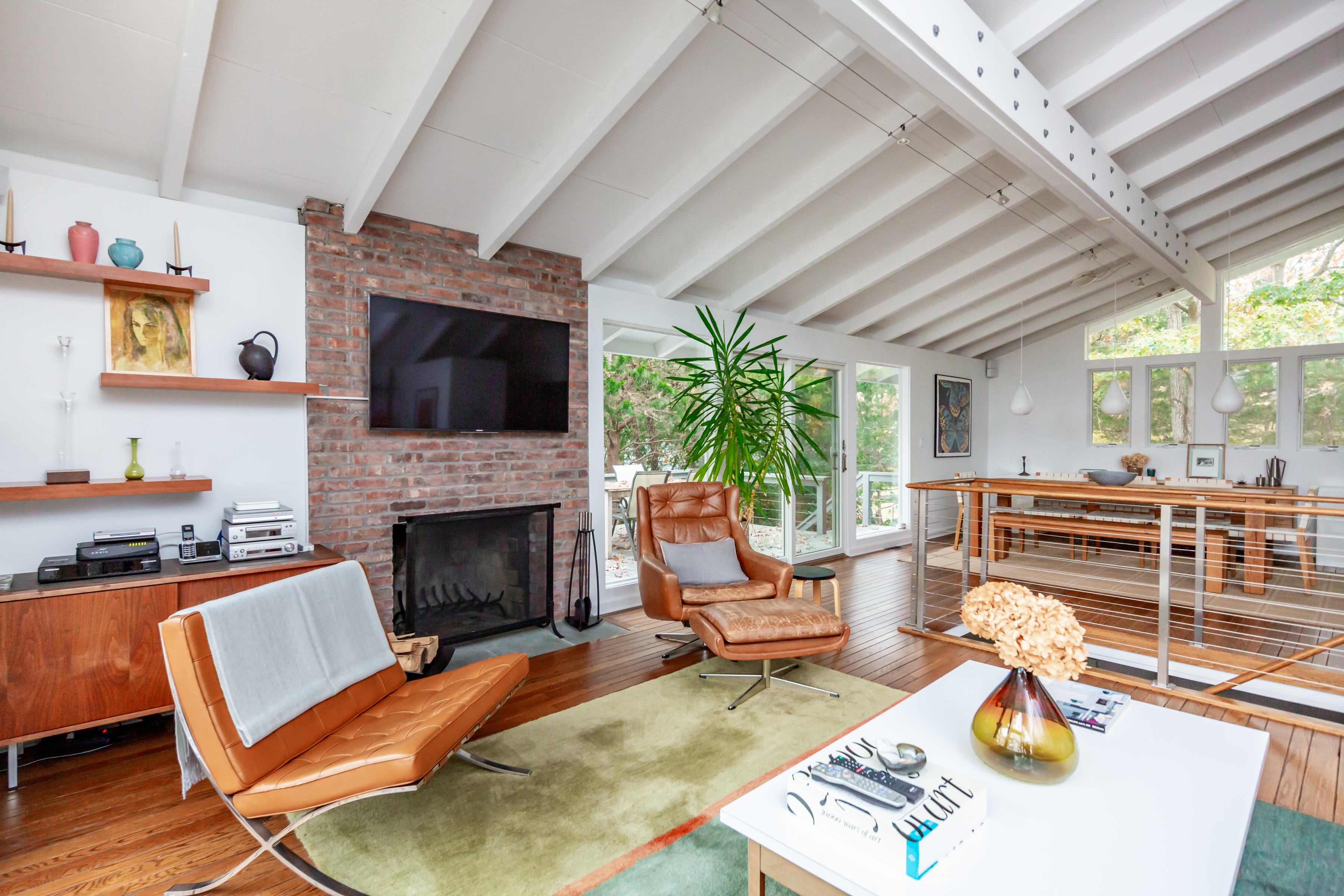 This pristine Mid-Century modern home was so tastefully renovated and furnished with the Bay just across the street and wrap around porch on the second floor. Open Living on Second floor with Floor to Ceiling windows and 2 sets of sliding glass doors. Just outside the historic district of Springs this home is located just minutes from the beautiful bay beaches of Gerard Drive & Maidstone. Three bedrooms and 2 baths set on .80 acre, this is the perfect summer rental. [[Rental Registration # 24-102]]