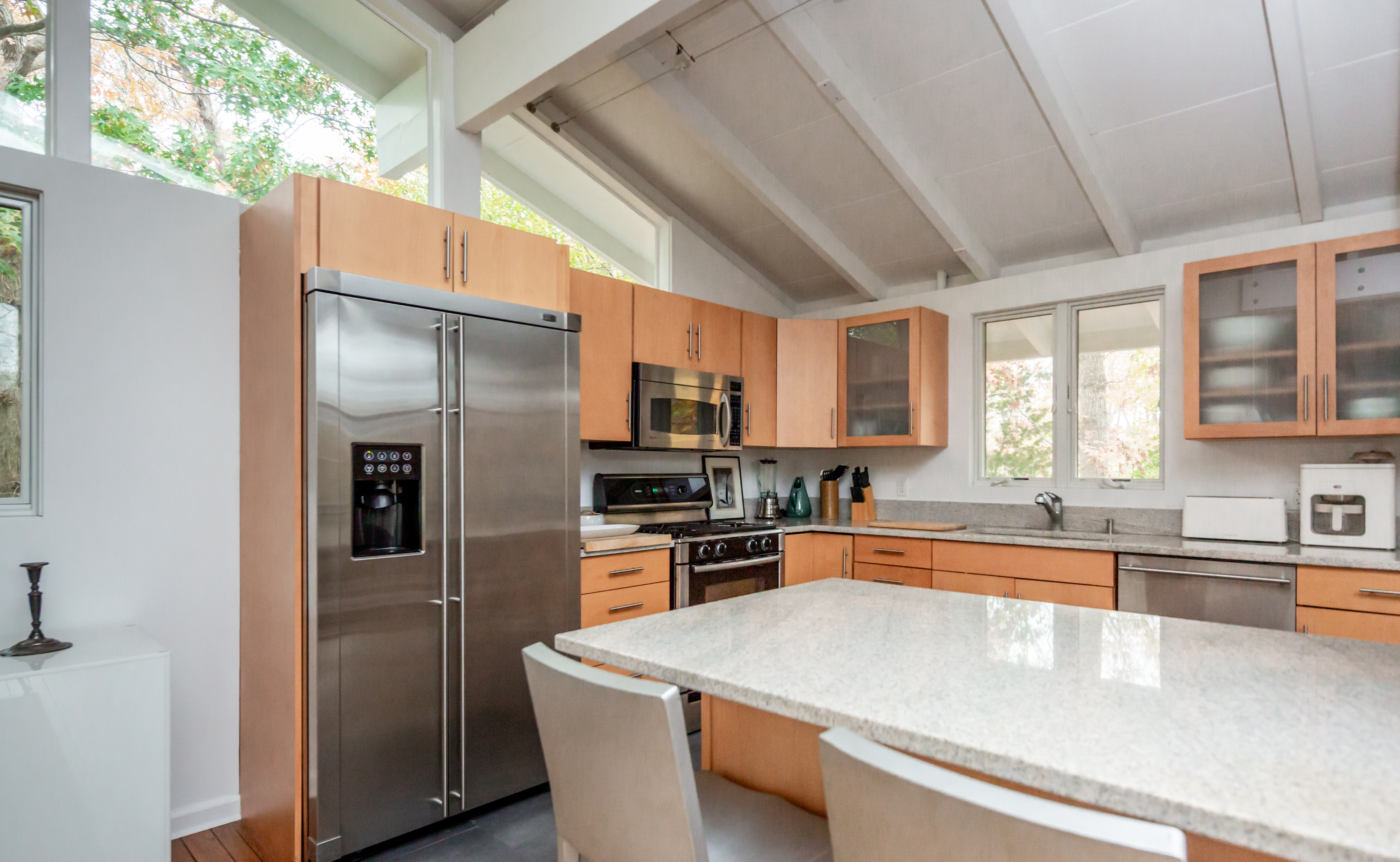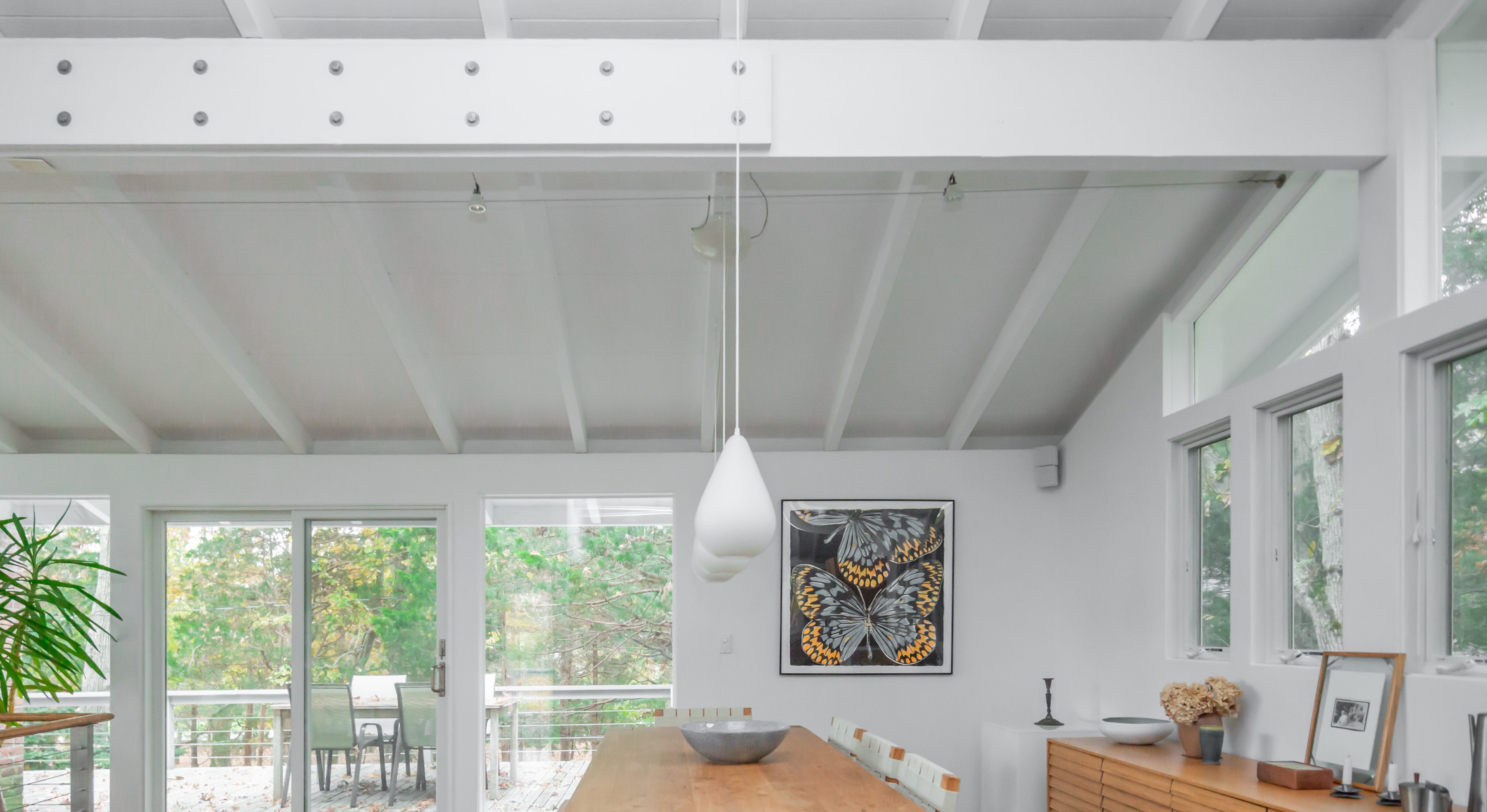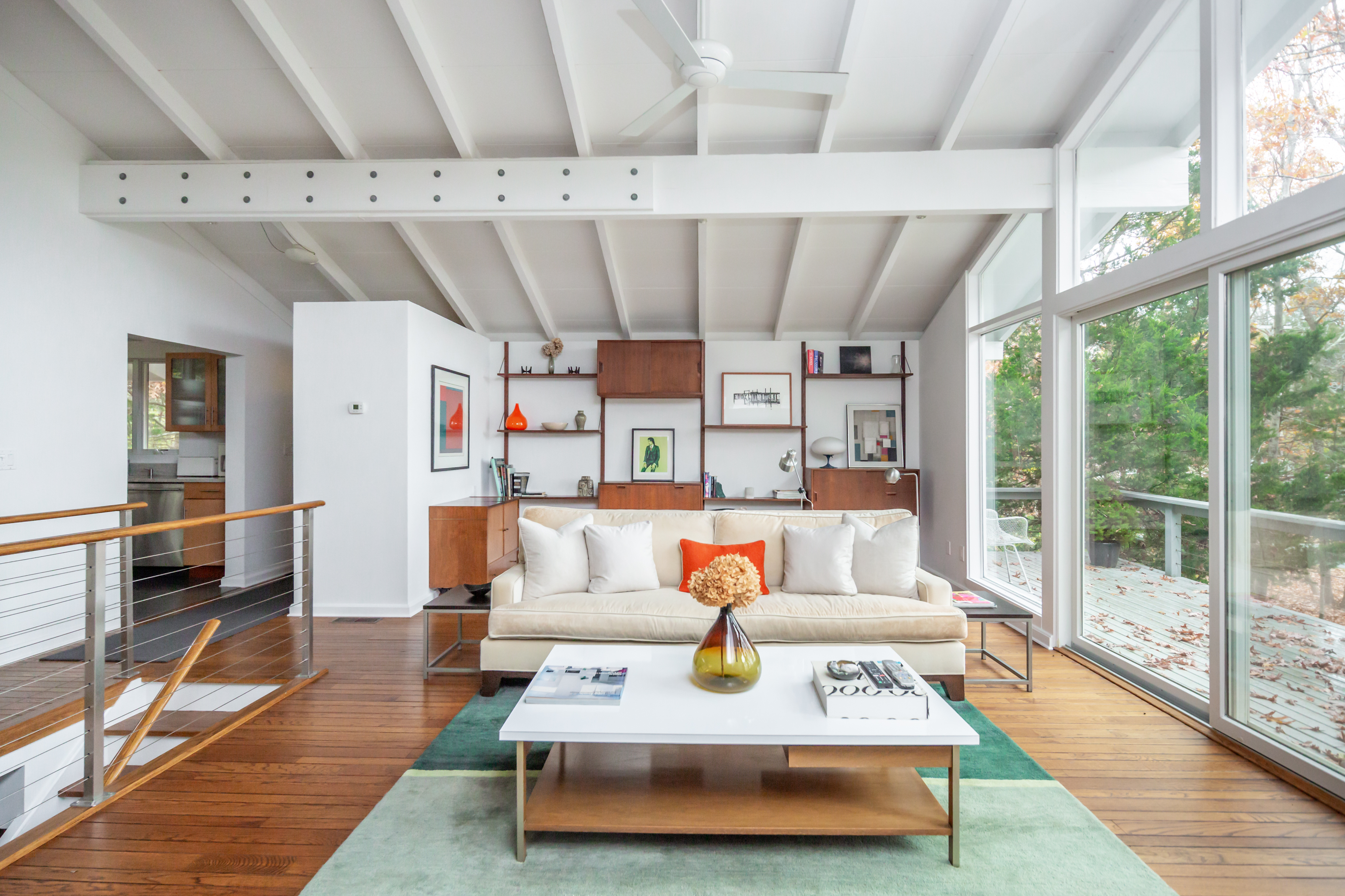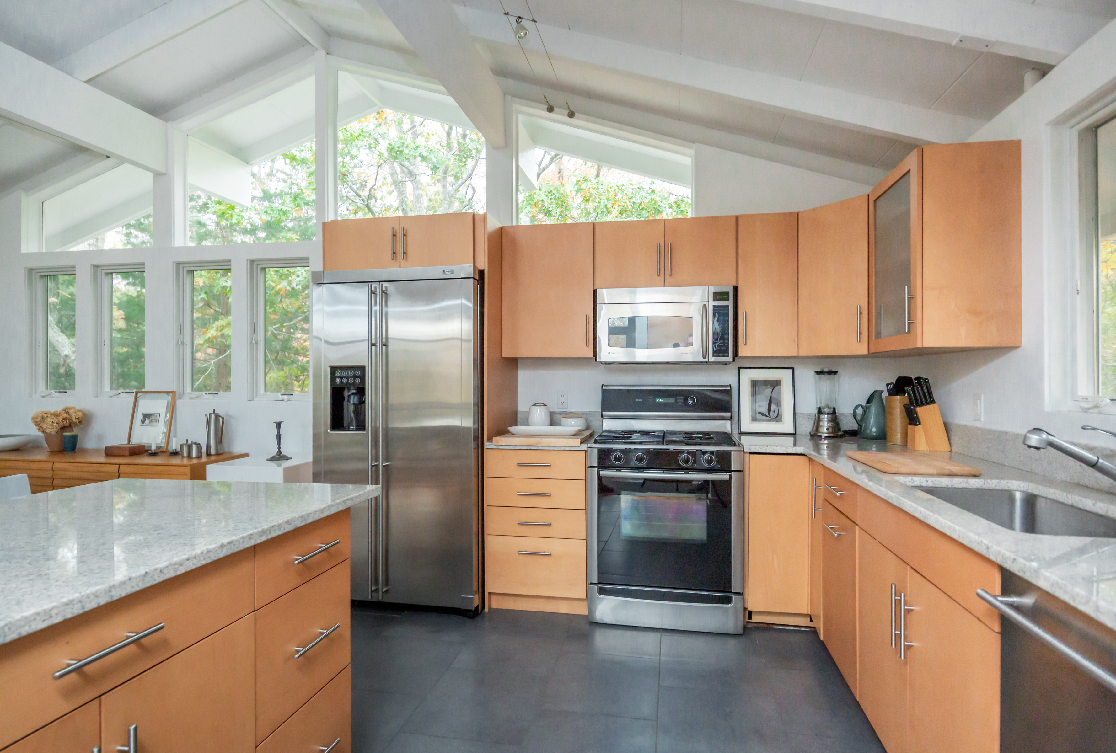 This pristine Mid-Century modern home was so tastefully renovated and furnished with the Bay just across the street and wrap around porch on the second floor. Open Living on Second floor with Floor to Ceiling windows and 2 sets of sliding glass doors. Just outside the historic district of Springs this home is located just minutes from the beautiful bay beaches of Gerard Drive & Maidstone. Three bedrooms and 2 baths set on .80 acre, this is the perfect summer rental. [[Rental Registration # 24-102]]