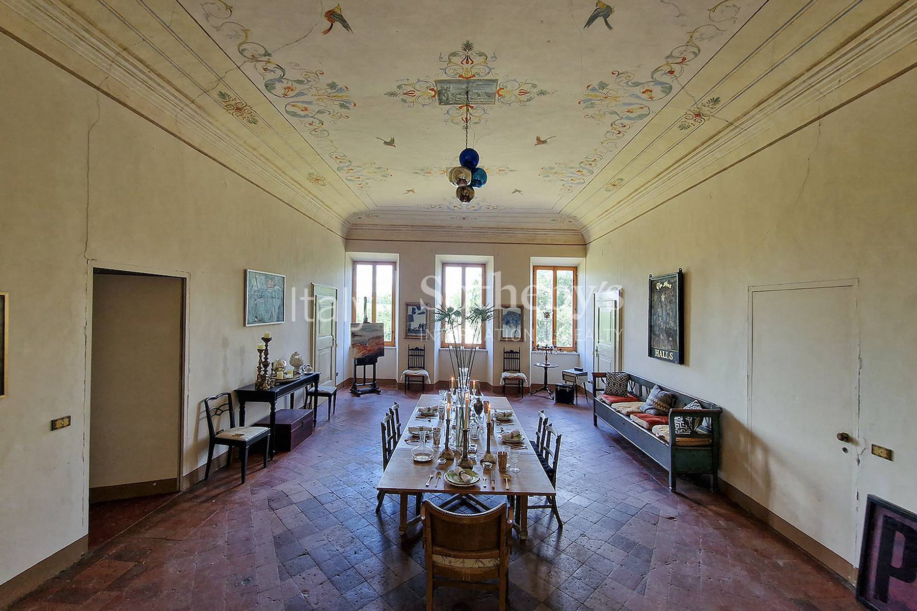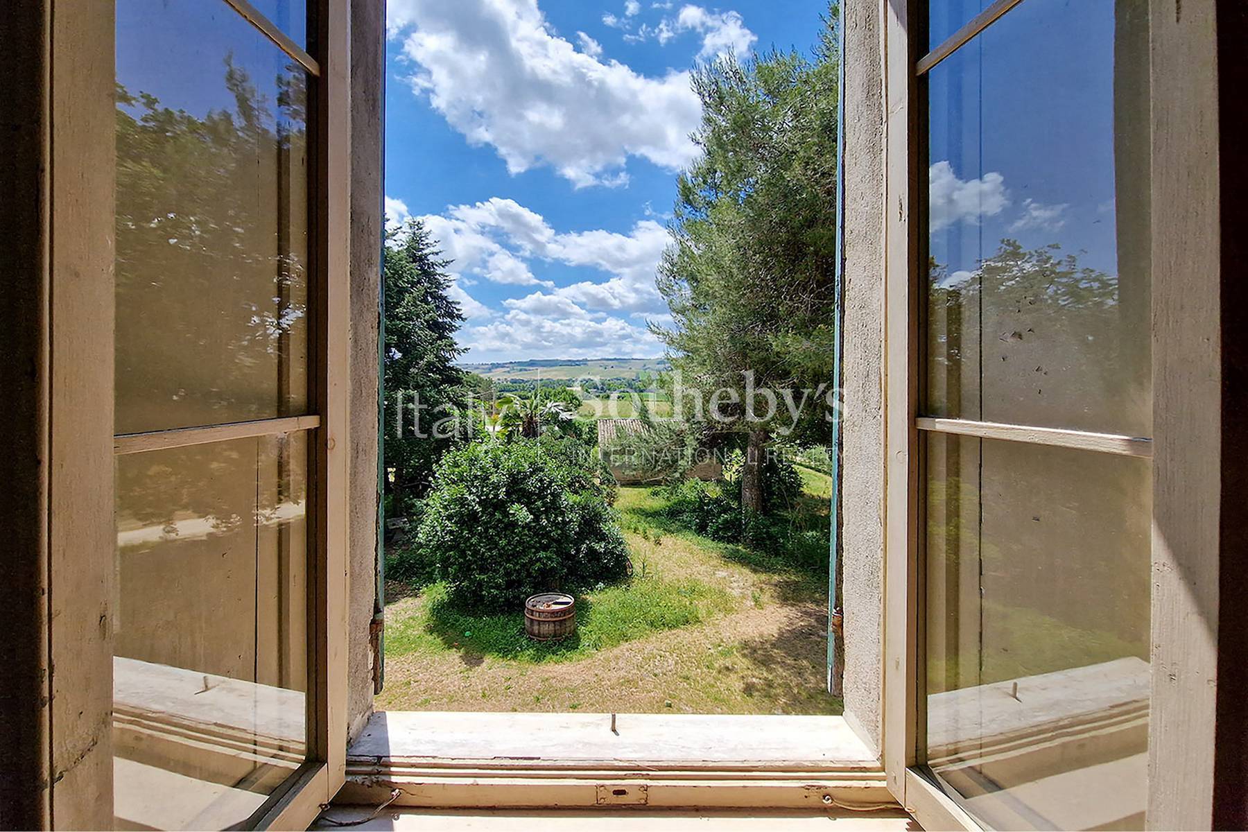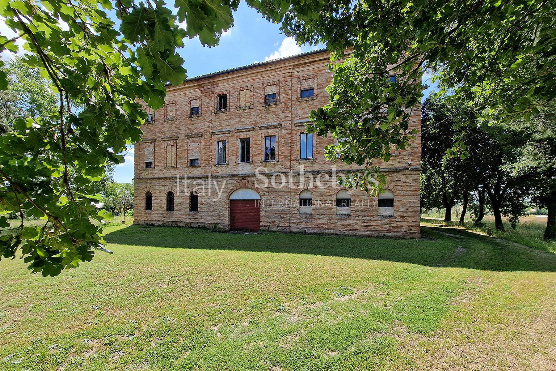 The imposing Villa Teja near Recanati, built by the Leopardi family (of which the poet Giacomo Leopoardi is its most famous member), is a quintessential example of a mid 19th century Villa with both farming and residential functions. The large ground floor rooms, where the farm machinery would have been housed, and the reception rooms and bedrooms on the upper floors are a testimony to the traditional ties noble families had to local agriculture from which they drew their wealth. Today, the villa, which still has that idyllic, Italian atmosphere, will make a magnificent family home or boutique hotel.The ground floor is divided in two by a corridor, big enough for a carriage and horses to pass through, running the entire length of the building and, on either side, are series of interconnecting high, vaulted rooms with brick floors.A wide elegant staircase leads to the first and second floors with identical floor plans, where there a several vaulted rooms with delicate frescoes and floors with terra cotta tiles arranged in geometric patterns.The property comes with a garden with mature trees and about 6500 m2 of agricultural land where olives and fruit trees have recently been planted.The structure of the 1250 mq villa is generally in good condition and electricity and water are already connected.