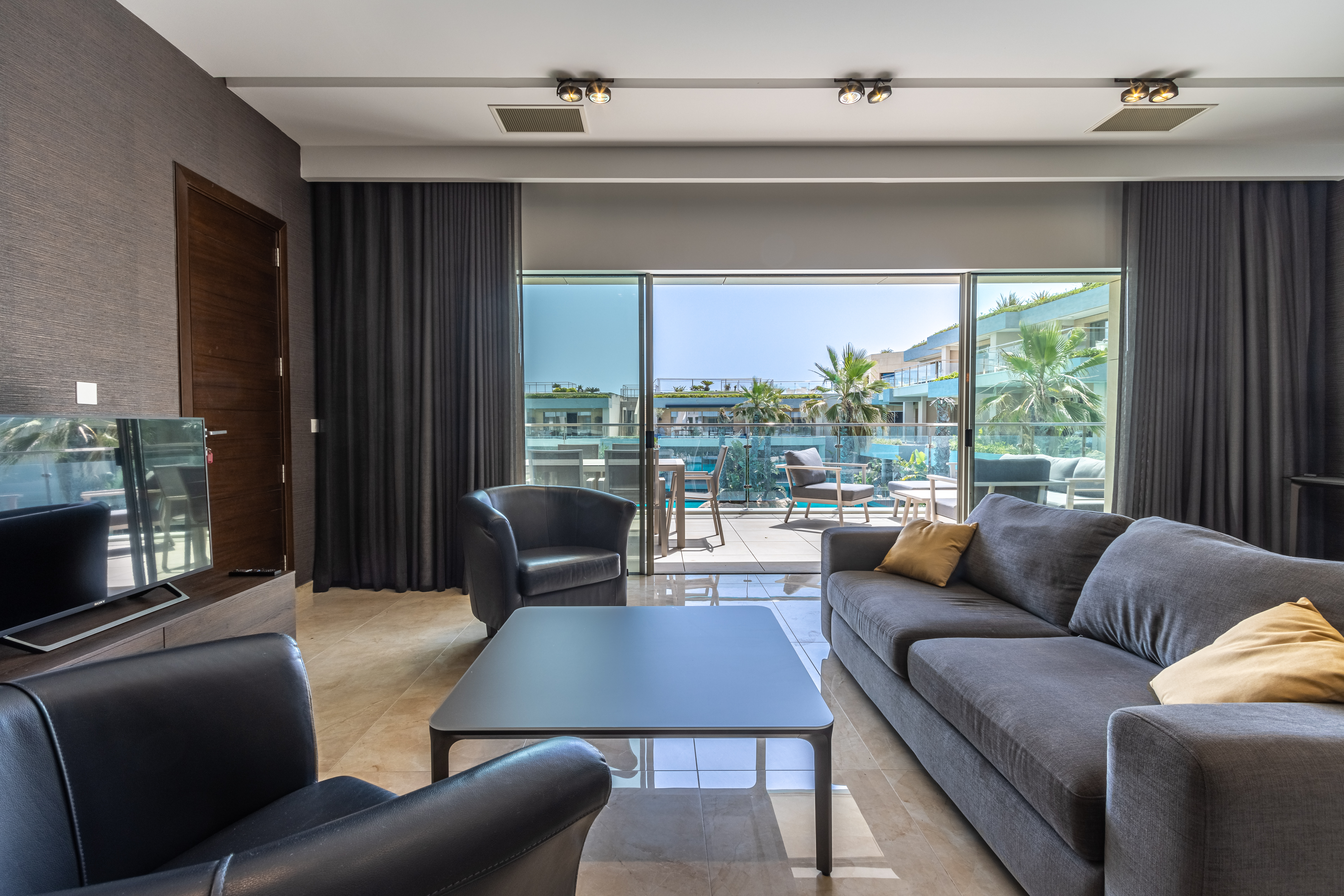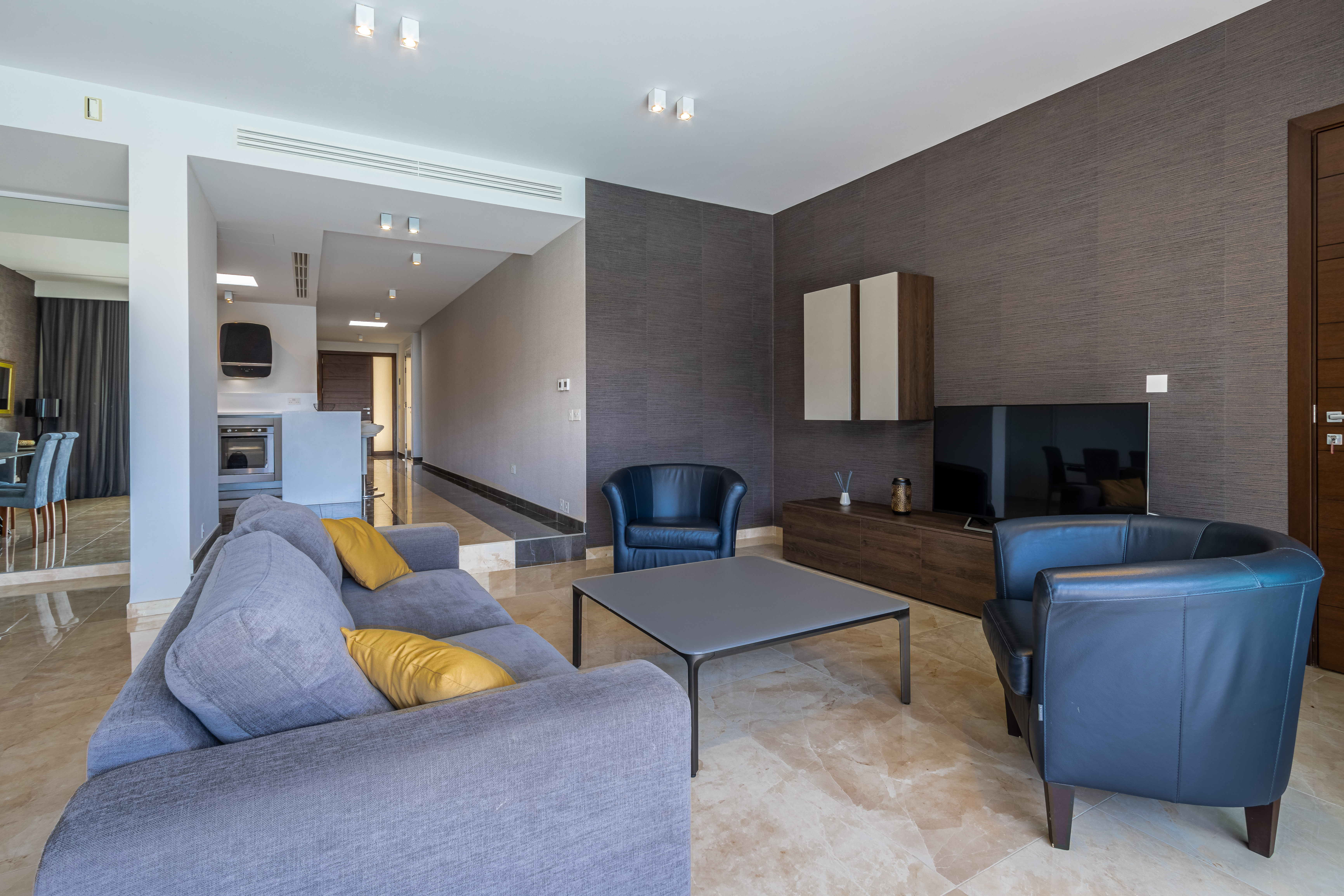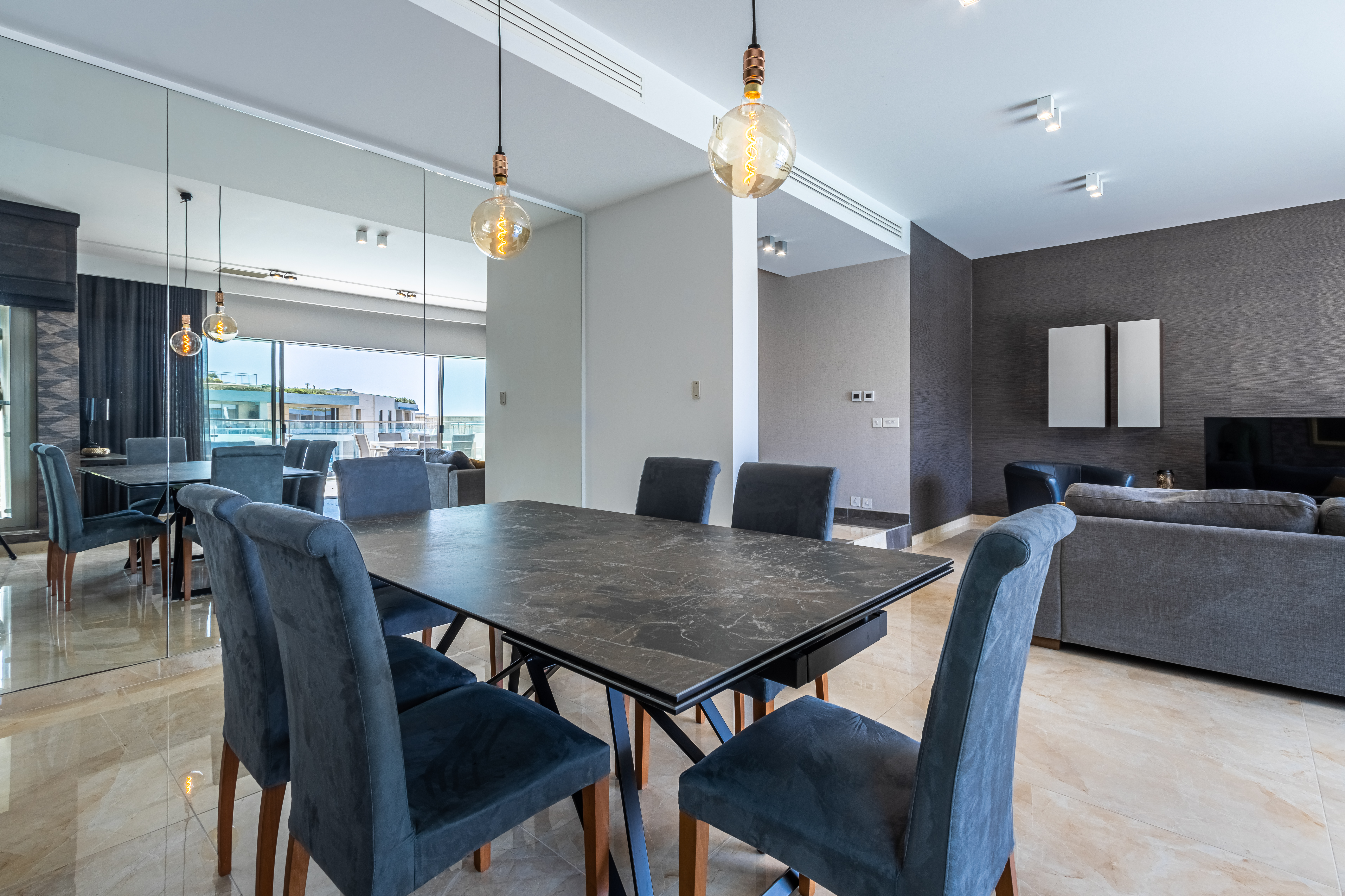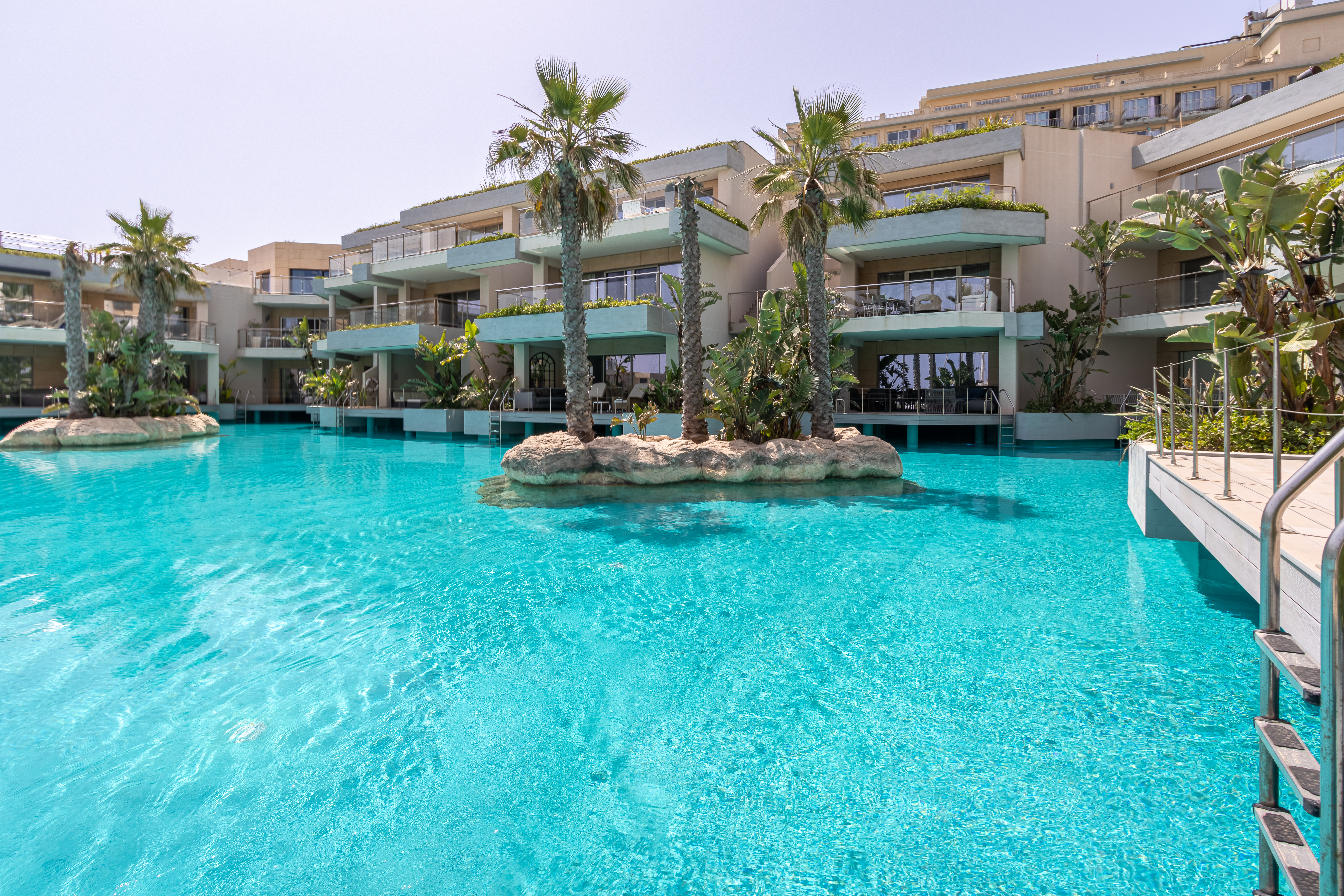 A modern, luxuriously finished, and fully furnished, two bedroom 166 sqm waterfront apartment in the new and unique Laguna development in Portomaso. This development is an extension of the Portomaso residential development, located adjacent to the existing marina and the sea. Here one can enjoy the private residential lagoon with direct access from your private deck from each apartment and swim out into the lagoon. Set on the second floor the layout comprises a welcoming entrance hall, washroom and guest WC, a modern fitted and fully equipped kitchen, which leads onto a bright and airy spacious open plan living and dining area opening onto an 18 sqm front terrace overlooking the Laguna, perfect for sundowners and outdoor entertaining. The sleeping quarters comprise two double bedrooms both with en-suite facilities. Other amenities include Parquet flooring in bedrooms and underfloor heating throughout, gypsum soffiting, and concealed air-conditioning. Also included is a 1 car space. Ideal for a couple.