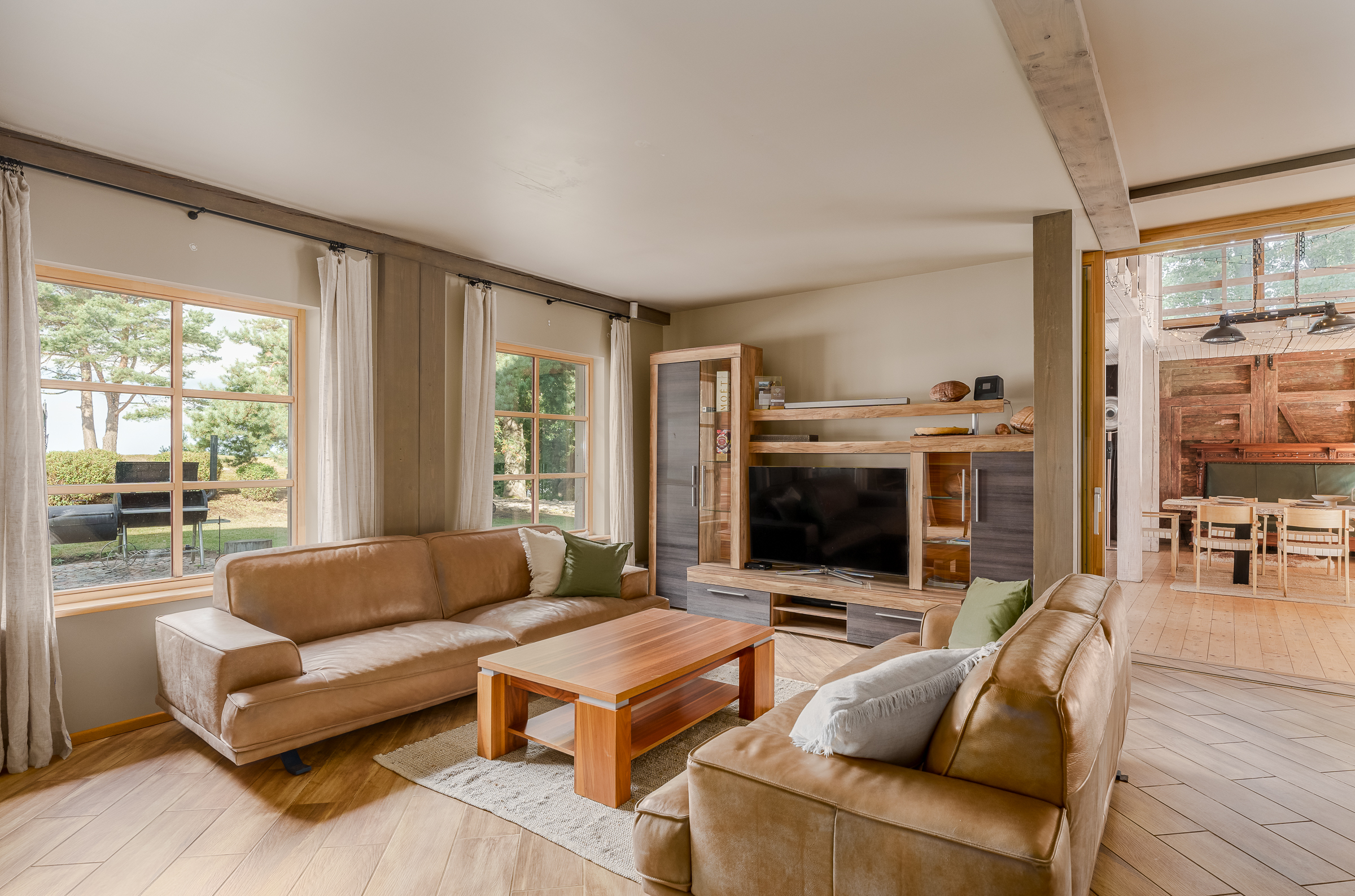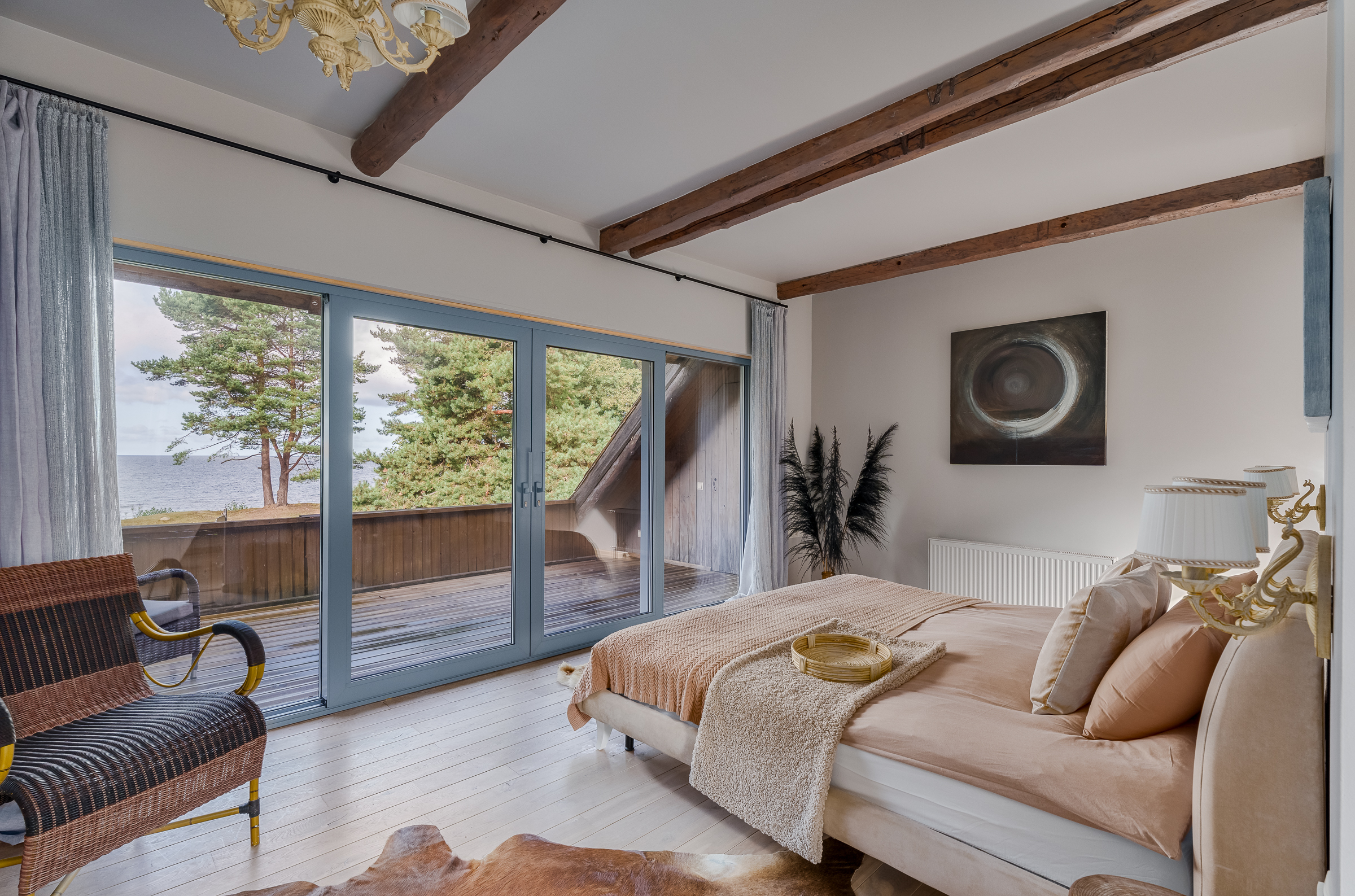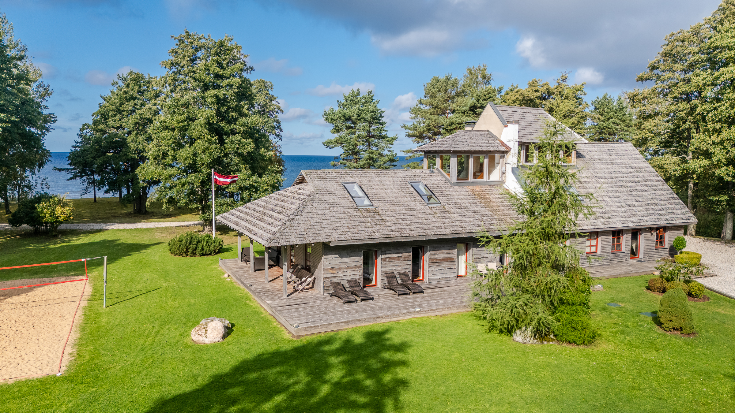 Imagine a place where nature and luxury merge into one – this is "Villa Ķurmrags," a property located right on the shores of the Baltic Sea in Latvia. This location is truly unique, as Ķurmrags enjoys the longest number of sunshine days per year, creating perfect conditions for peaceful relaxation or thrilling adventures in nature. Your neighbor will be one of Latvia’s oldest historic lighthouses – the Ķurmrags Lighthouse, which has guarded these shores for centuries, while the property boundaries stretch to majestic red sandstone cliffs. Only 70 kilometers from Riga and 90 kilometers from the international airport, this property offers an ideal balance between distance from the hustle and bustle of the city and convenient access to major roads. The property includes a fully restored fisherman’s house that combines tradition with modern comfort. Additionally, there is a spa area where you can relax in an outdoor jacuzzi, while guests can enjoy a separate two-bedroom apartment with a sea view. The utility buildings are perfect for both practical needs and family entertainment. The main house leaves a lasting impression – its design preserves the historic spirit of the fishermen, complete with an ancient net drying shed, while modern comfort is ensured by heated rooms with an automatic pellet boiler. Interestingly, the house does not require air conditioning – its unique structure provides a pleasant coolness even on hot summer days. This is a place where technology coexists with nature – there is excellent internet connection for work and entertainment, but mobile signal is weak in the villa, allowing for complete privacy. Villa Ķurmrags offers not only comfort but also an active lifestyle – an automatic lawn mower takes care of the garden, and the property features basketball and beach volleyball courts, inviting you to physical activities. The unique smokehouse allows you to enjoy traditional fisherman’s meals, while the outdoor fire pit and standalone pizza oven fulfill your culinary dreams. Your property is secure – a high-end video surveillance system and security operate 24/7. Moreover, this property is located in a protected nature reserve area, meaning that no construction work can disturb your peace. Villa Ķurmrags offers something rare today – flawless comfort, pristine shoreline, breathtaking sunsets, and complete privacy. The road leading to your property ends in wild nature, where life follows your own rules, and only two other properties share this exclusive road. For more information about the property, feel free to contact me.