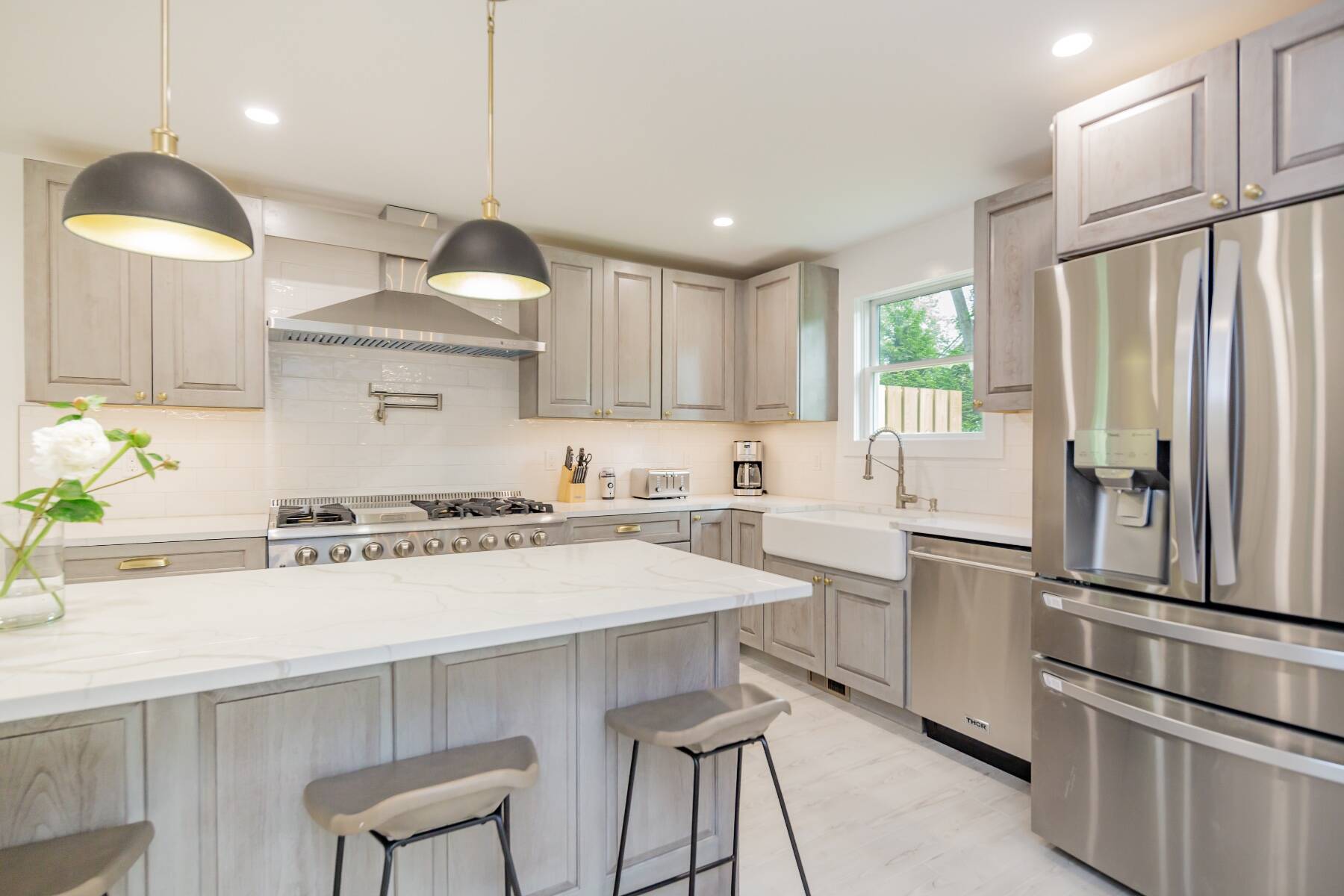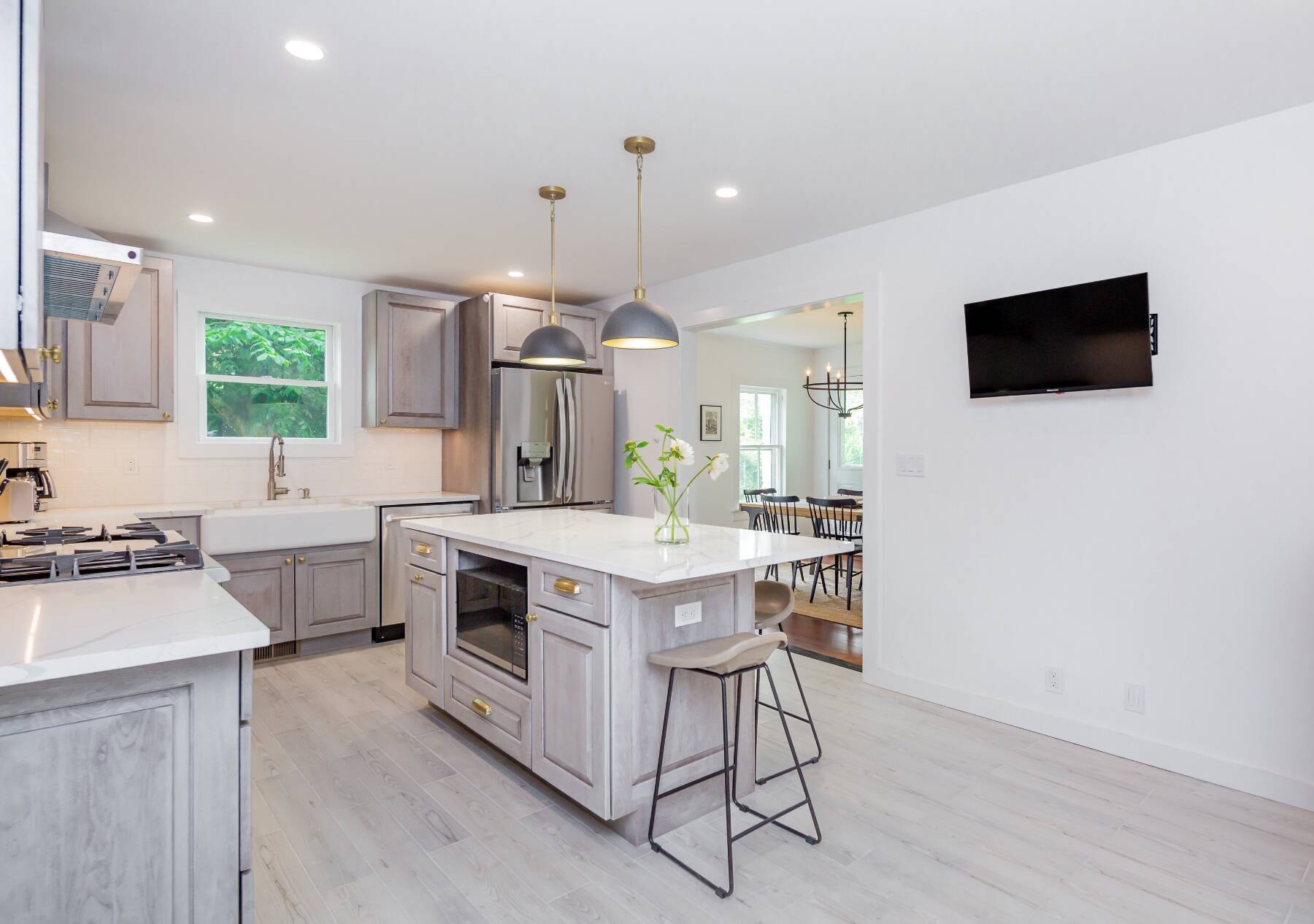Located in prime East Hampton Village, this newly renovated Farmhouse Classic is available for Summer 2025. Three bedrooms, two and one half baths, hardwood and tile floors with ultimate sunlight throughout. All new bathrooms, cook's kitchen with large island incorporates outdoor dining and fun. This property has Location, Location, Location waiting for the future tenant. Call today to see.