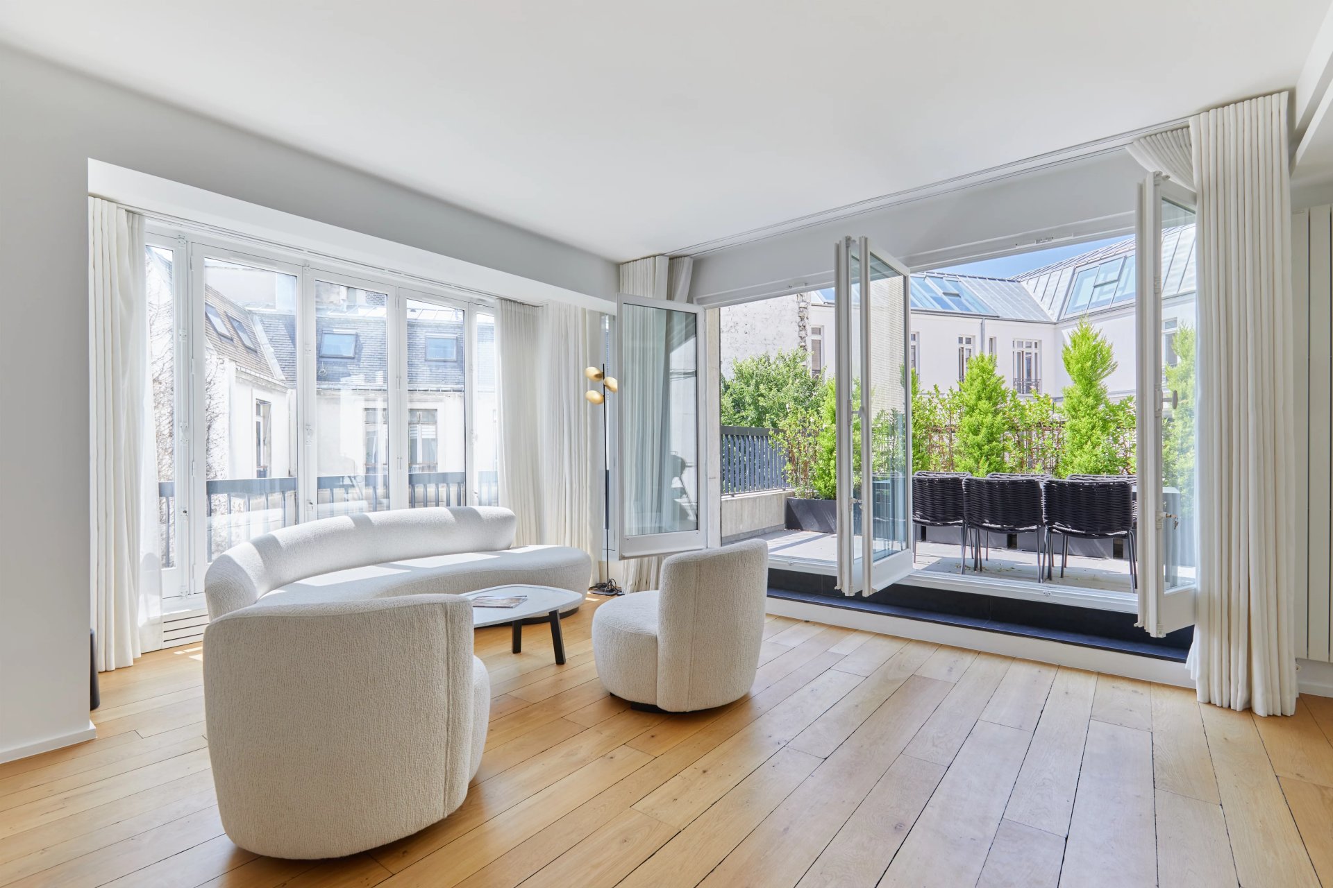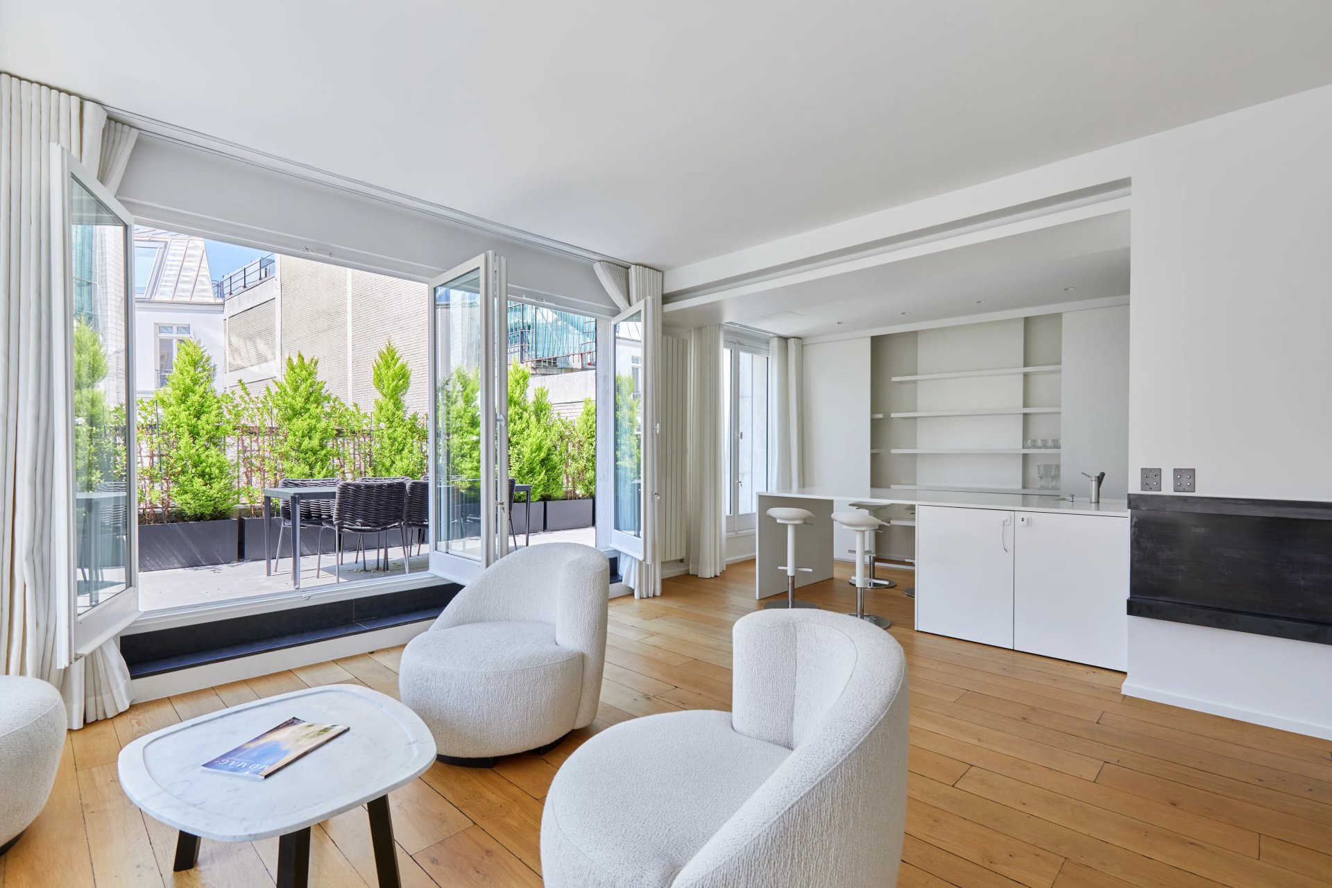 This entirely renovated 164.67 sqm apartment is on the 6th floor of a secure mid 20th century building located in prestigious Avenue Montaigne.