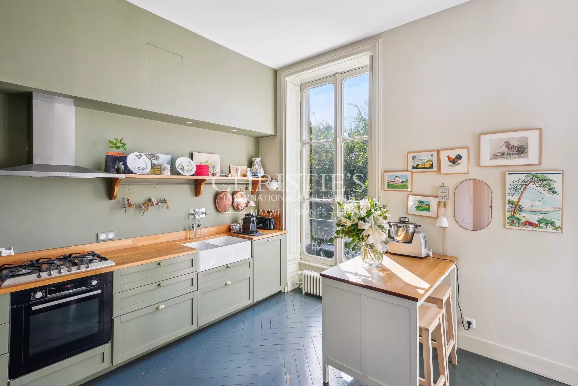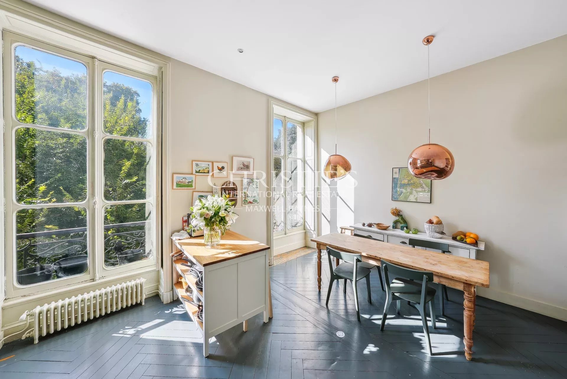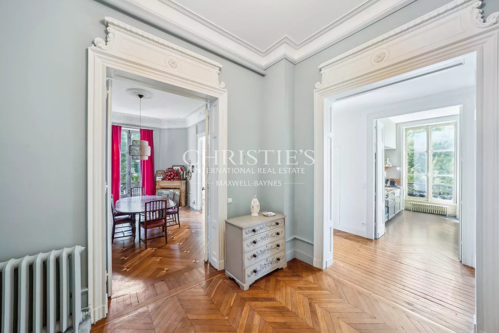 The apartment comprises a vast reception room: beautiful entrance hall, living room and dining room with fireplaces, vast kitchen, 3 bedrooms, 2 bathrooms, fully air-conditioned. Cellar. Parking nearby.