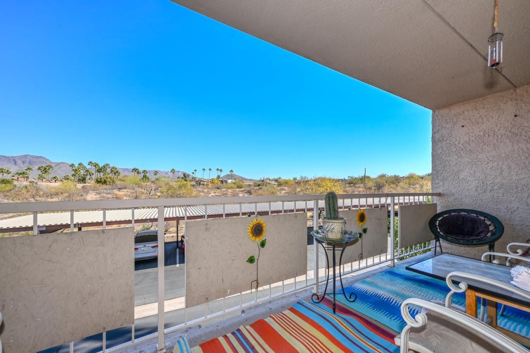 Home is tenant occupied. Buyer to honor lease until 6/30/26 at $1800 p/ mo. Comfortable 2nd floor end unit in Carefree Terrace Condos. Split 2 bedroom, 2 bath with pretty mountain views from the interior and spacious outdoor balcony/patio. Featuring an open concept that is light & bright. Across the street from downtown Carefree, this location offers the ability to casually stroll to restaurants, shops, the beautiful botanical gardens & so much more. No Dogs allowed. 48 hr. notice to show