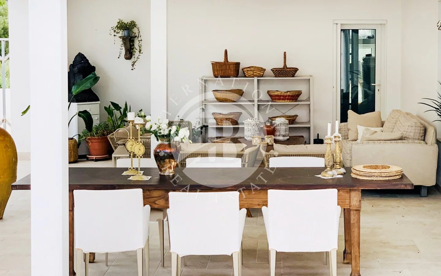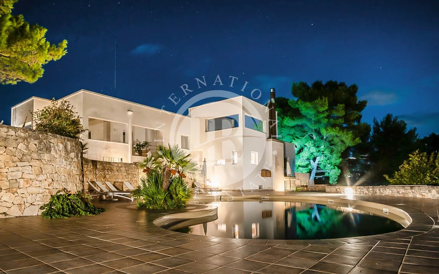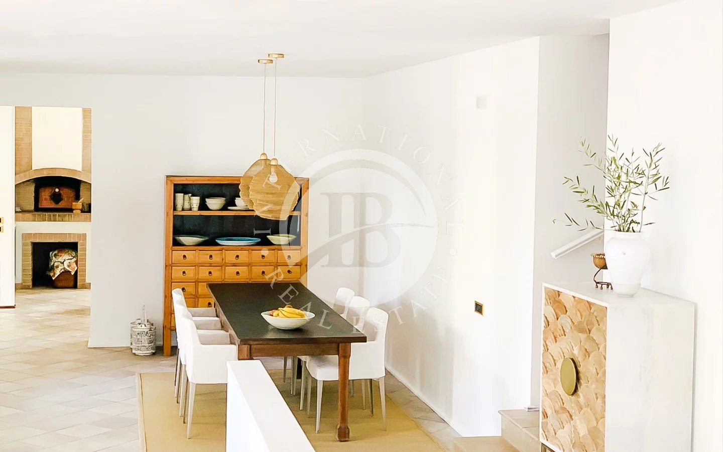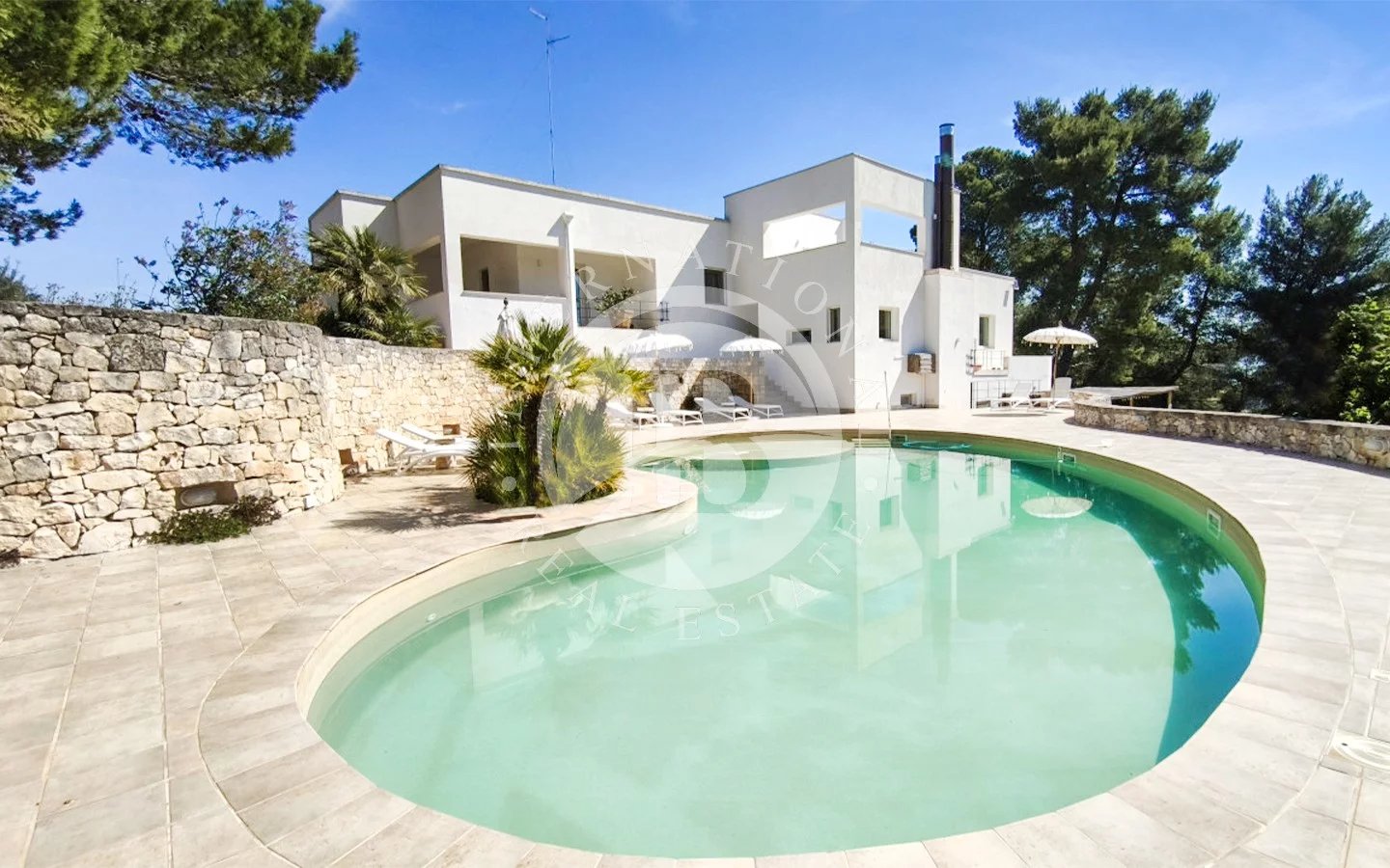 Located in the heart of the verdant countryside of Martina Franca, just 2 km from the historic centre and easily accessible, we offer for sale this extraordinary spacious Ibiza-style villa, designed by a renowned architect.Nestled among the hills, the property offers privileged views over the wonderful Itria Valley, a UNESCO World Heritage site, famous for its characteristic trulli. The strategic location allows for a private and tranquil setting, whilst remaining a short distance from the lively town life.The villa is spread over two levels and is distinguished by its spacious, bright rooms: two elegant living rooms with fireplaces create a warm and inviting atmosphere; a large covered terrace is perfect for enjoying moments outdoors in total relaxation; the new semi-open kitchen, complete with a traditional pizza oven, is ideal for convivial culinary experiences. The sleeping area comprises three spacious and well-lit bedrooms, two modern bathrooms, and an additional guest toilet.On the ground floor, there are two independent apartments, ideal for tourist rentals: a studio flat perfect for couples and a larger apartment capable of accommodating up to four people, both equipped with a kitchenette.The outdoor spaces are equally charming: a large 85 sq m swimming pool is surrounded by a well-kept solarium area, perfect for enjoying the Puglian sun in complete privacy.The property is completed by a large garage and several technical rooms. Also available, with separate negotiation, is a second, completely renovated trullo nearby, comprising two bedrooms, a living area with kitchen, a covered patio, and two bathrooms, ideal as a guesthouse or customizable additional space.Surrounded by fenced land adorned with centuries-old olive trees and fruit trees, the property fully expresses the authentic charm of the region. Perfect as both a high-level tourist investment and an exclusive private residence in the heart of splendid Puglia.