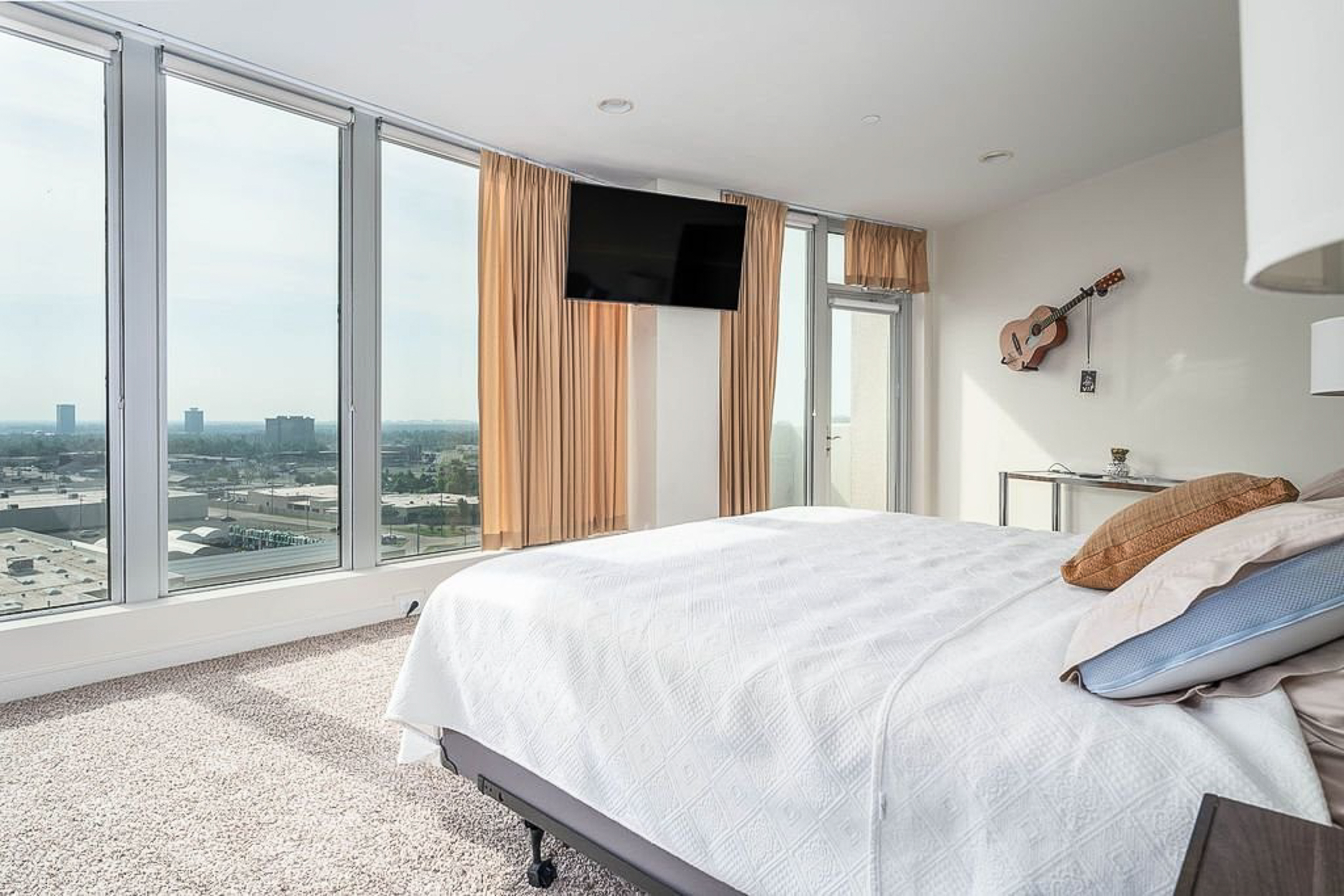 Luxury high-rise living in the heart of OKC! Welcome to Oklahoma City's most iconic residential skyscrapers! This spacious one-bedroom unit is among the largest of its kind, offering an expansive bedroom, oversized kitchen and three private balconies. Enjoy panoramic views stretching from Lake Hefner to Downtown, framed by floor-to-ceiling windows that flood the space with natural light. The interior showcases mid-century modern cabinetry. granite countertops, and GE profile appliances including a glass-top stove and stainless-steel refrigerator. The building has many amenities w/24 hour concierge service, indoor saltwater pool & spa, outdoor saltwater pool & kitchen, full fitness center w/state of the art equipment, recreation room w/living area, pool table & ping pong. There is secure keyless entry, 2 parking spaces per unit, storage units available. It is truly a remarkable upscale community. Luxury, carefree living in the heart of OKC.