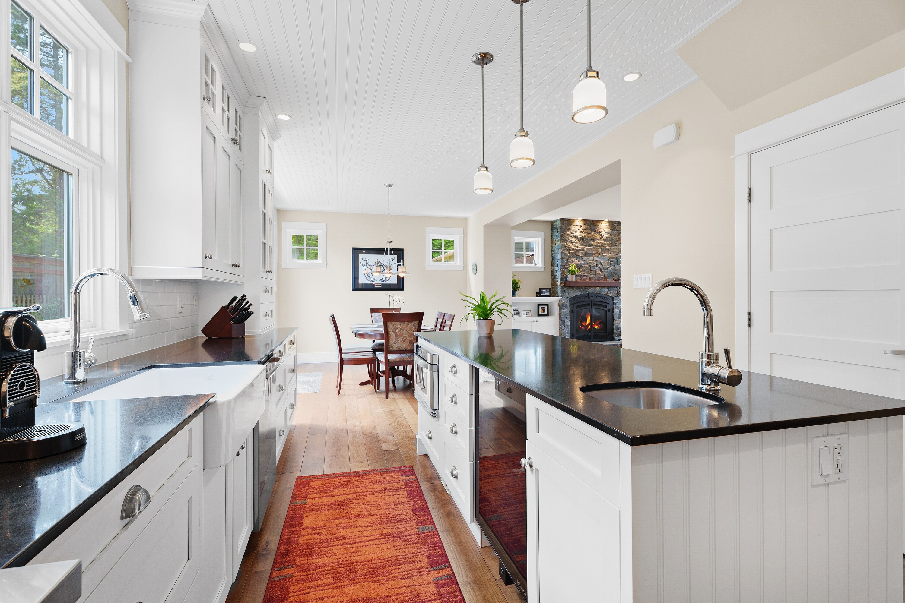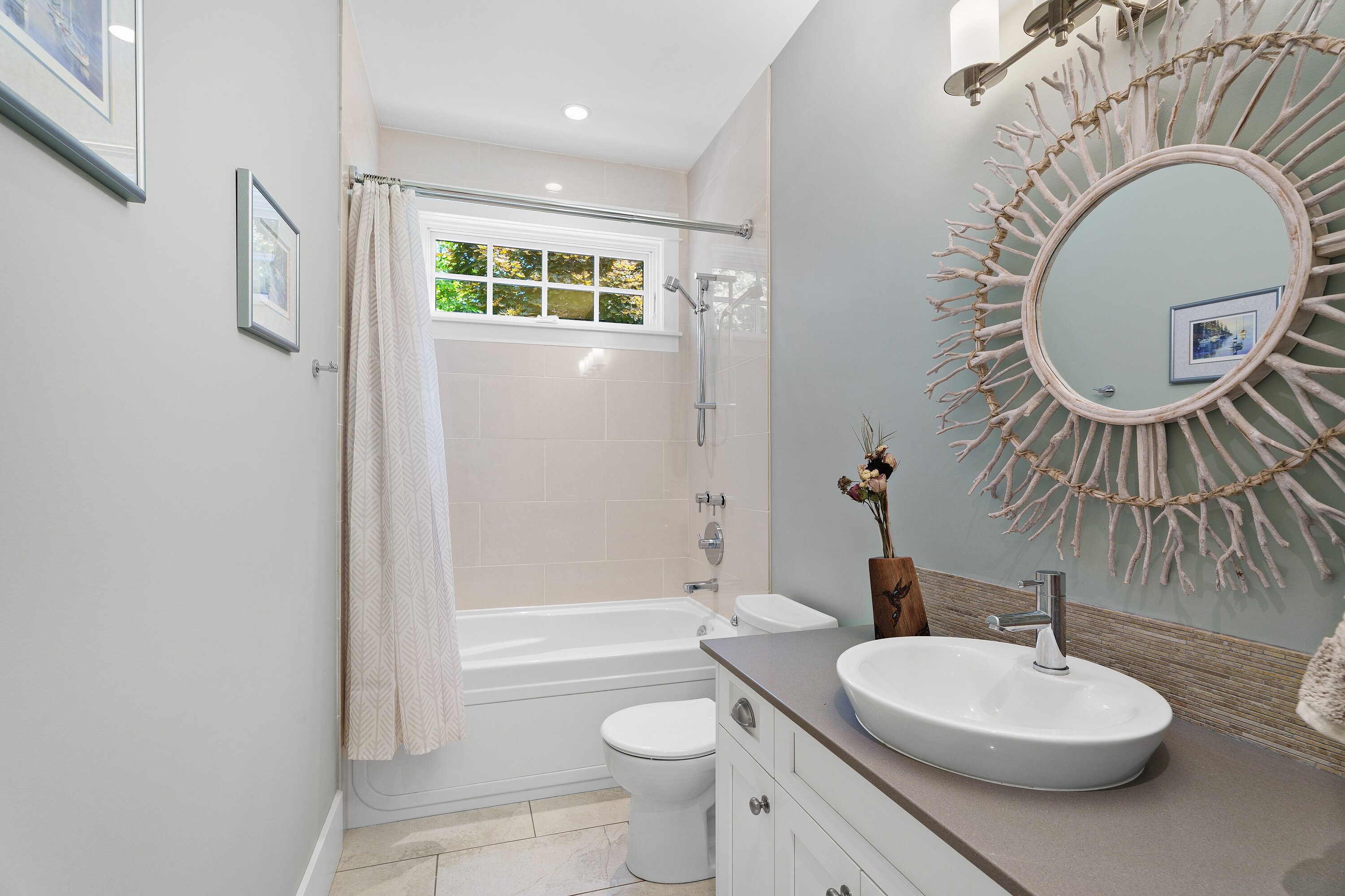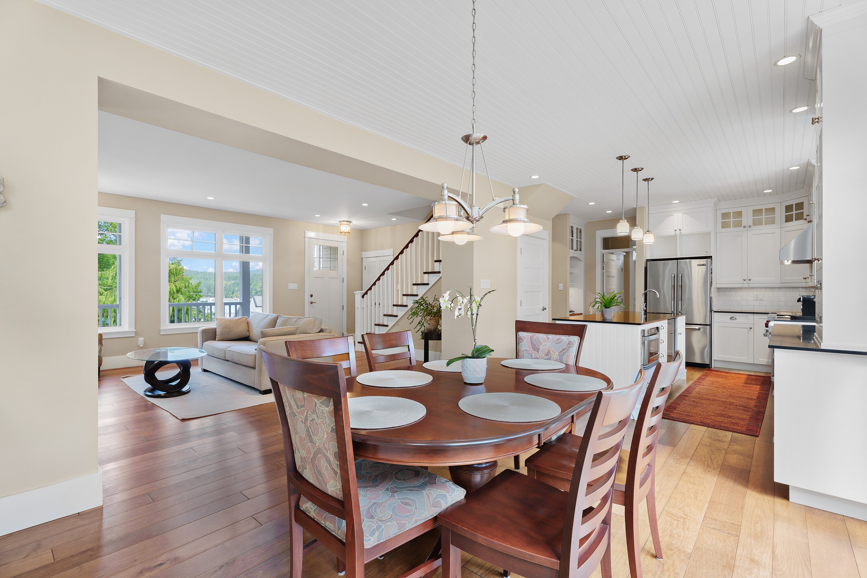 Spectacular custom built home with ocean views front and back, and just steps from Genoa Bay Marina! At 3850 square feet total, with 2650 square feet finished, this home has been built and finished with no expense spared. This home was constructed in 2009 to reflect the style of a 1930’s east coast seaside home. The yard is fully fenced and the backyard very private. When you enter the home through the oversized period front door you will feel the warmth and charm of the waxed wide plank wood flooring, and open space on the main floor. The wood finished windows are large and allow for lots of natural light and views to all directions. The custom kitchen with floor to ceiling cabinetry and quartz and marble countertops will inspire you. Upstairs you will find the media room and den along with the master bedroom and luxurious ensuite bath. Steps from the main house, you will find a guest suite located over the garage, perfect when company arrives! This is a most scenic and peaceful area, favorite among locals and visitors alike!