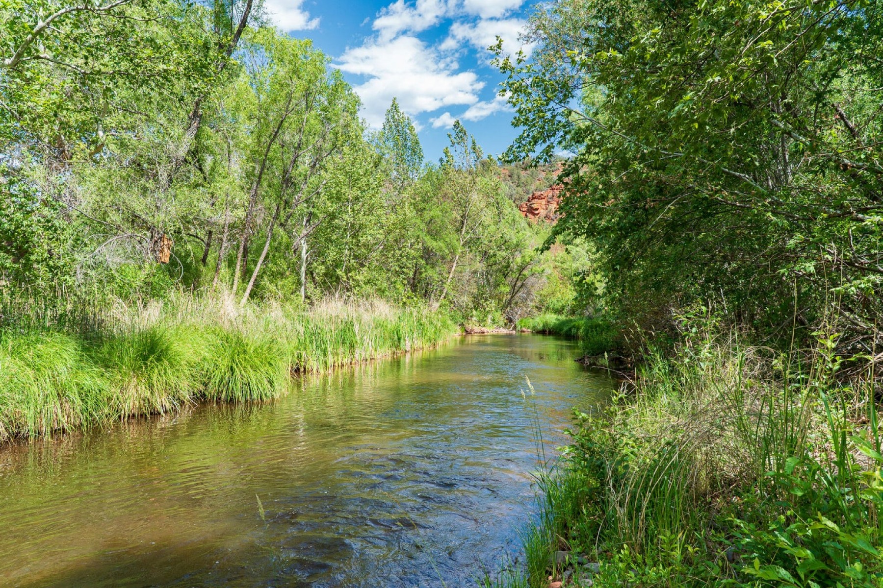 Located in one of Sedona's most peaceful neighborhoods, this stunning 2.99-acre parcel offers direct creek frontage on Oak Creek and borders National Forest on two sides. A rare chance to build amid red rock views, abundant wildlife, and refreshing Oak Creek access. Situated in the Cup of Gold neighborhood, STR's ok - there is no HOA governing the property, although CCRs apply to all lots. The land was recently surveyed and available to buyer. Property lines are clearly marked, along with the bridle trail easement for accessing Lot 34; parcel: 40819035A. Water is provided by the Cup of Gold Water Company & responsible for bringing water to the property line. A $5K capital improvement fee is required at the close of escrow. Every lot owner pays an annual $1,300 assessment to the Water Co.Vacant lots are currently unmetered. Electric service is available through APS. Propane gas available through private companies. All lots are on their individual wastewater septic system and responsible of the owner.There are no requirements to build and no time constraints to build.Seller Disclosures, CCR's, Financials, Subdivision Plat Map available and recent Survey available through the MLS documents.Directions: Take scenic Lower Red Rock Loop Rd to Eagle Mountain Ranch Road to River Cliff Rd (Left) into Cup Of Gold Estates to the end of paved road. Go to the end of the dirt road, go past gate & do not trespass signs. Stay On bridal path and follow ORANGE stakes to Lot 34.