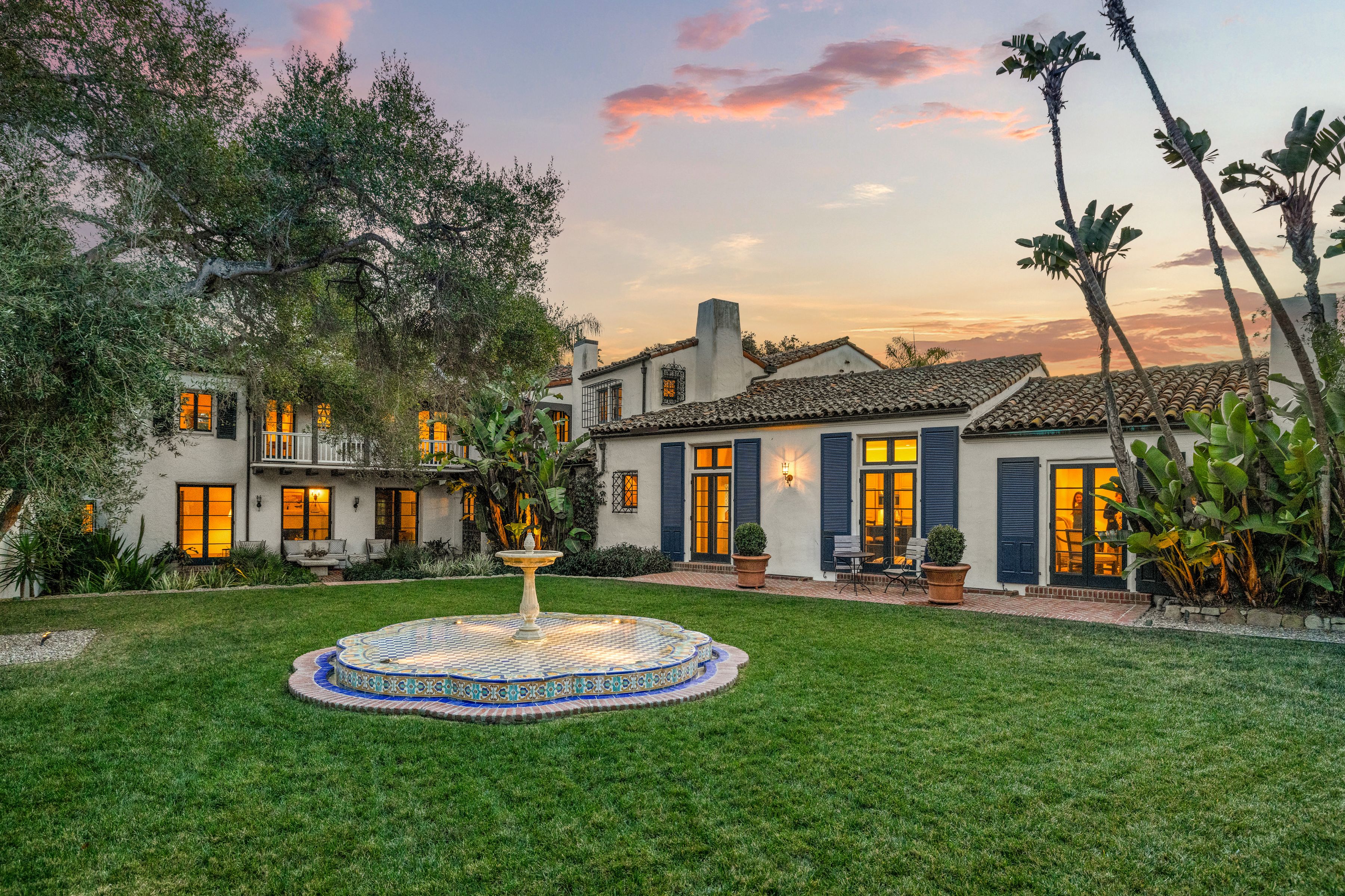 Grand G.W. Smith Spanish Colonial Revival estate set on approximately 1.40± acres in the heart of Montecito. Originally built between 1922 and 1925 & thoughtfully restored, the residence blends historic character w/ modern comforts. A circular gated motor court w/ fountain and lush plantings sets the stage. The main residence offers 6 bedroom suites, including a grand entry-level primary w/ spa-like bath & dressing areas, plus 5 additional ensuite bedrooms and office. Living room w/ beamed ceilings, fireplace, & French-style doors opens to sun-filled terraces. Great room kitchen w/ center island & pantry adjoins the family room, while formal dining connects to wine cellar. Resort-style grounds feature manicured lawns, mature trees, pool, patios, mountain views, private well, & backup generator.