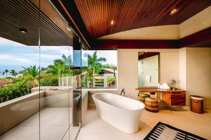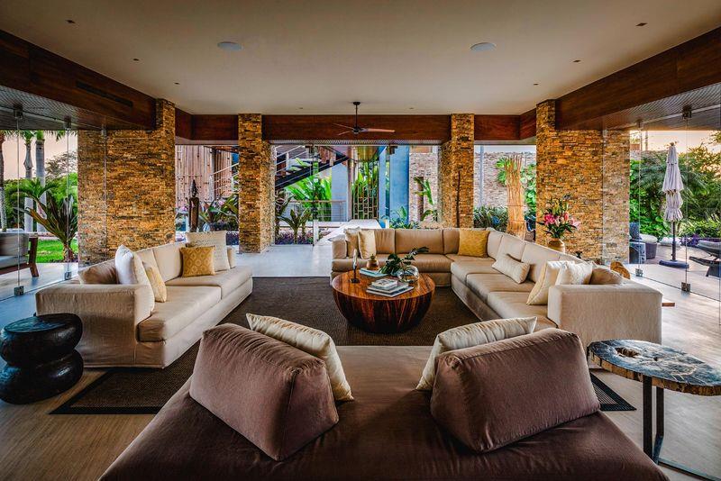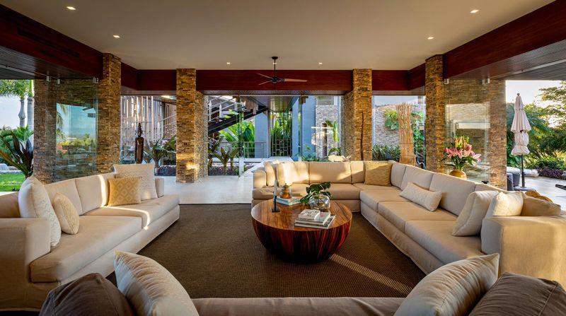 Breezes move through the open floor plan. Every room captures a view—of the ocean, the fairway, or the lush gardens. Two infinity-edge pools—one facing the ocean, the other the golf course—offer choices in perspective and mood. There’s a stargazing terrace with a fire pit, a hidden cinema, and a rooftop lounge to take in golden hour and galaxies alike.