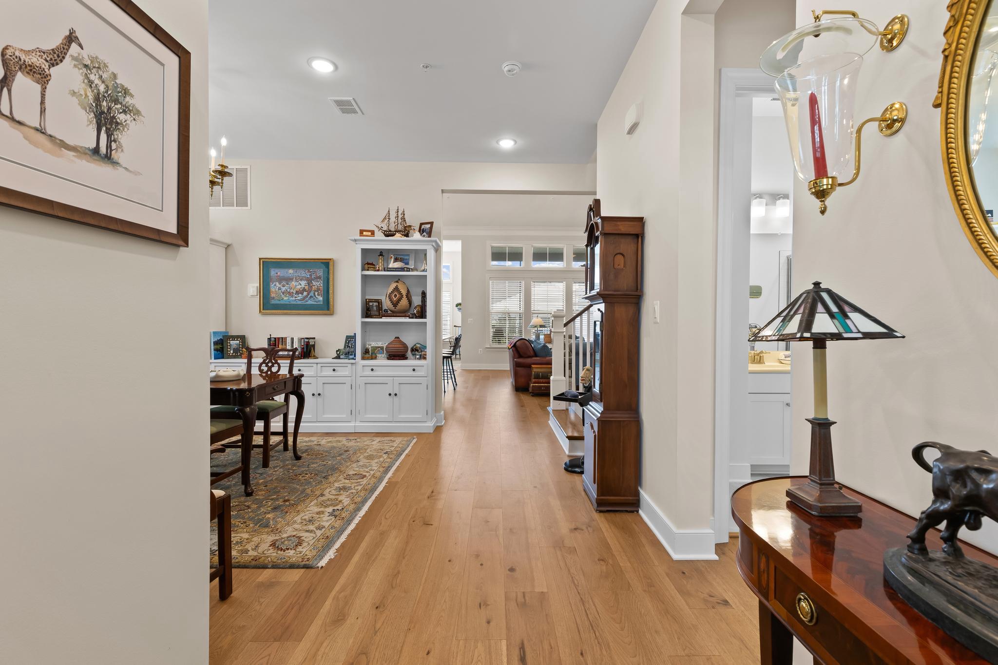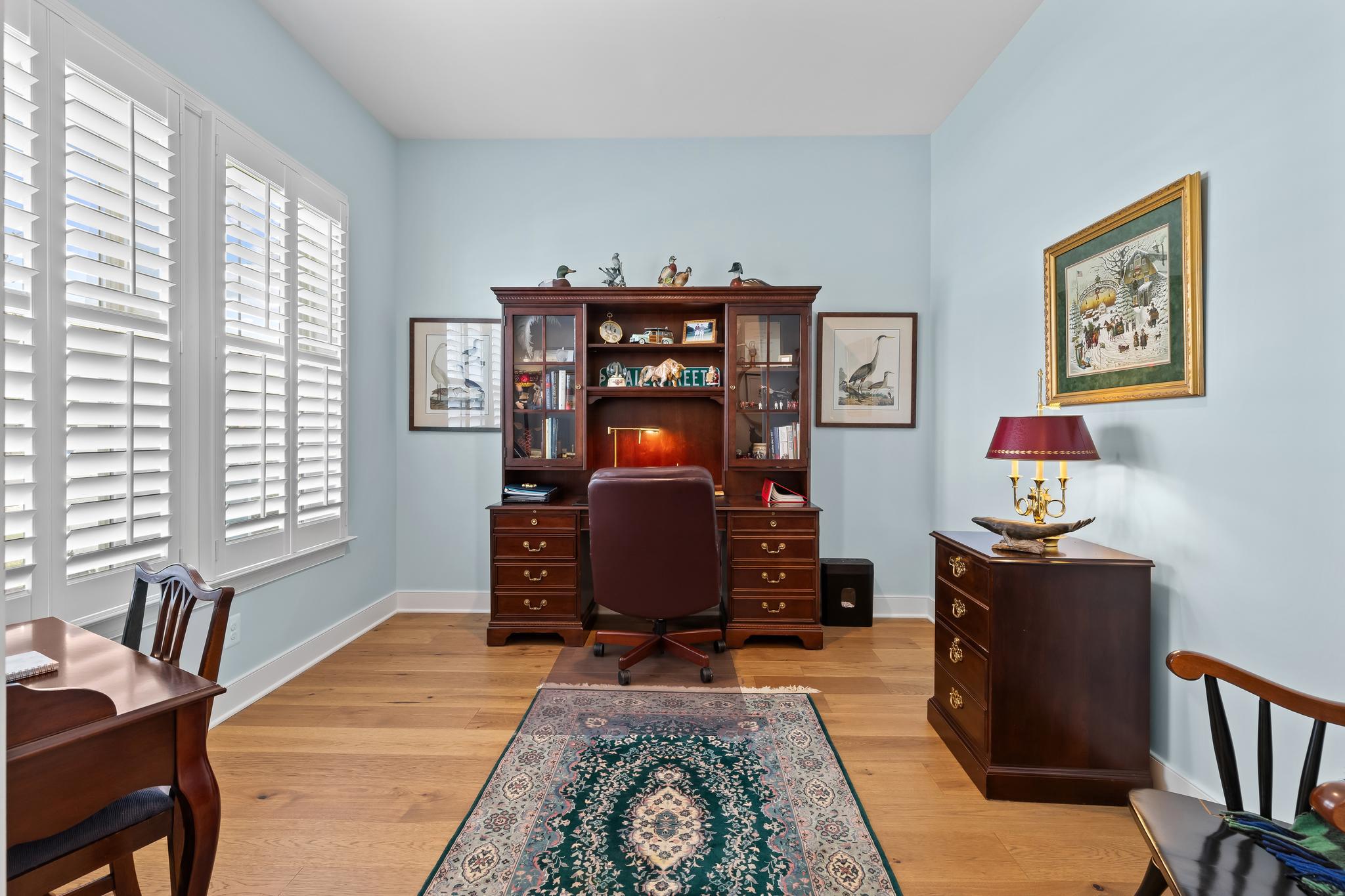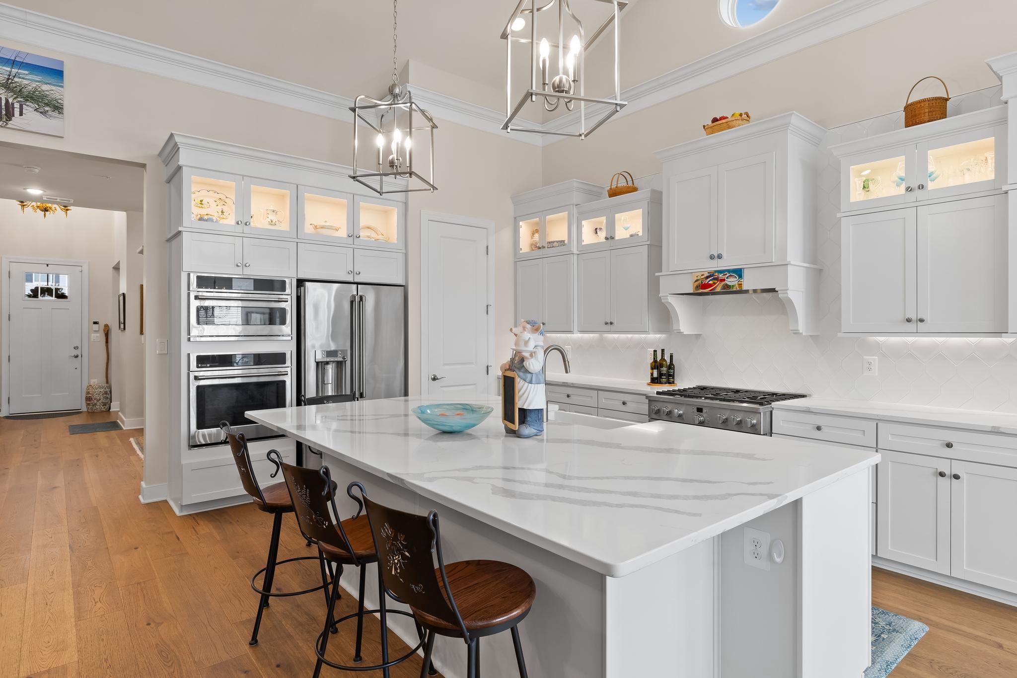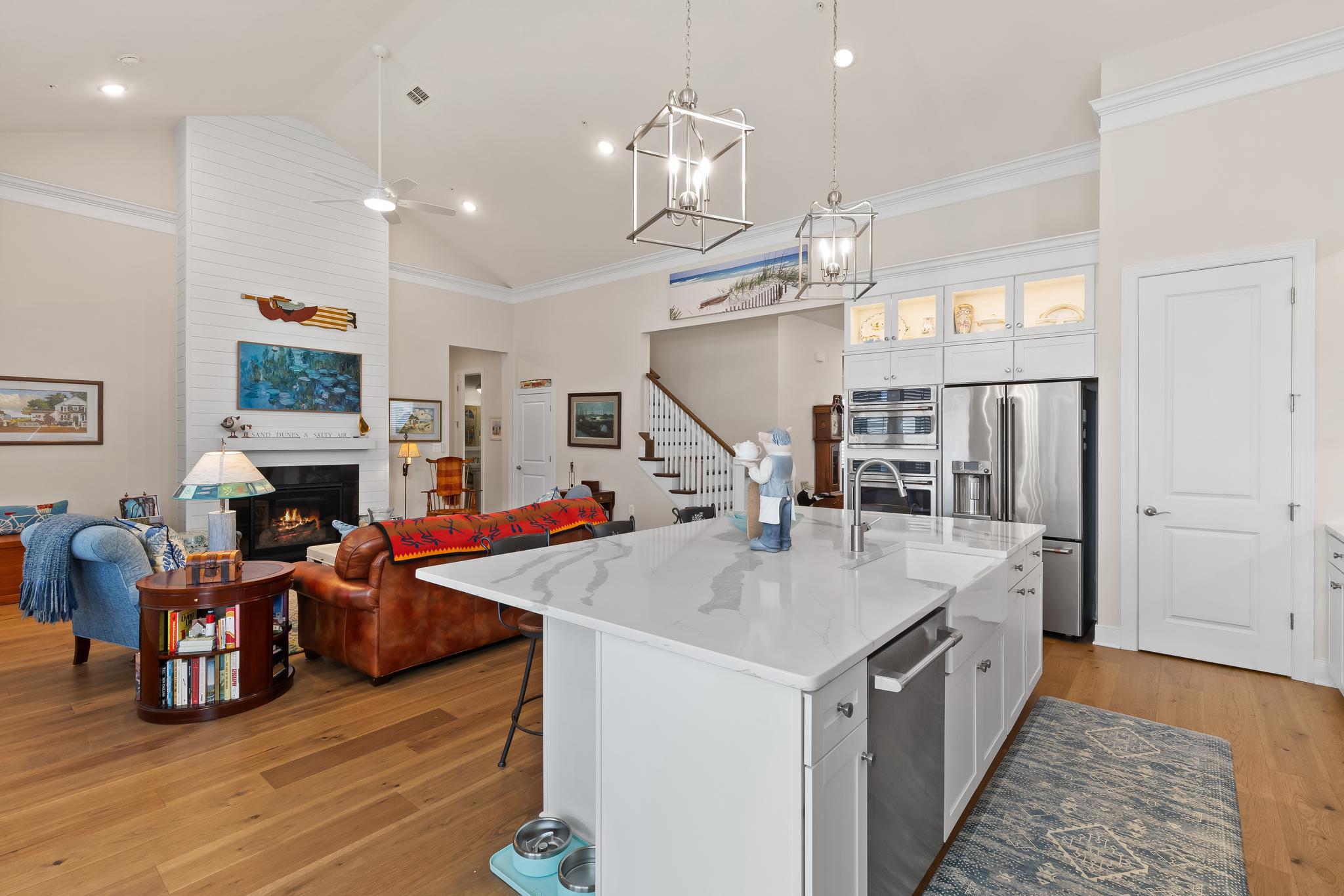 Welcome to 132 Kestrel Lane, an exceptional home in the premier waterfront community of Four Seasons at Kent Island. Offering over 3,600 square feet of thoughtfully designed living space, this residence combines elegant design, modern functionality, and a lifestyle centered around comfort, connection, and the natural beauty of the Chesapeake Bay.From the moment you arrive, the covered front porch and charming curb appeal set the tone for what awaits inside. The grand two-story foyer opens to soaring ceilings, wide plank wood flooring, and light-filled spaces dressed in timeless plantation shutters. The main level is designed for easy living, with 10-foot ceilings that create a sense of openness and flow. At the heart of the home, the great room features cathedral ceilings, crown molding, and a gas fireplace, providing a warm gathering place for both intimate evenings and lively entertaining.The designer kitchen blends beauty and function with a large island, stainless steel appliances, a gas range, backlit cabinetry, and a beautifully lit backsplash that adds a touch of sophistication. The open-concept design extends into the breakfast area, making mornings and casual meals a delight. A screened-in porch and fenced patio create a seamless transition from indoor living to outdoor enjoyment, perfect for entertaining or simply savoring quiet moments surrounded by nature.The first-floor primary suite is a true retreat, complete with a spacious walk-in closet outfitted with built-ins and a spa-inspired bath designed with relaxation in mind. A second bedroom with its own private bathroom on the main level offers comfort and privacy for family or overnight guests, while a dedicated office provides the flexibility to work from home with ease. The convenience of a mudroom with built-ins and a first-floor laundry adds to the thoughtful design of this home.Upstairs, a large loft-style living area can serve as a media or game room, offering additional space for recreation, relaxation, or hobbies, while two generously sized bedrooms share a well-appointed bathroom. A large two-car garage with an extra storage and workshop area provides ample space for all your needs—including the perfect spot to store multiple kayaks. Every detail of this home has been carefully curated, from the crown molding to the custom finishes, creating a space that feels both refined and welcoming.Beyond the home itself, life at Four Seasons at Kent Island offers an unparalleled resort-style experience. Residents enjoy exclusive access to the Chester House Clubhouse, where a ballroom, bar and lounge, gathering spaces, and a demonstration kitchen set the stage for community and celebration. Fitness and wellness are at the forefront with indoor and outdoor pools, a state-of-the-art fitness center, yoga room, and walking paths. Outdoor amenities abound, from tennis, pickleball, and bocce courts to a kayak launch, fishing pier, and dog park. Evenings can be spent at the fire pit, tiki bar, or amphitheater, creating countless opportunities to connect with neighbors and enjoy the Chesapeake lifestyle.Perfectly situated on Kent Island, this home is more than just a place to live—it’s a way of life. Here, every day feels like a retreat, with the Chesapeake Bay as your backdrop and a vibrant community at your doorstep. Welcome to 132 Kestrel Lane, where luxury, comfort, and lifestyle meet.