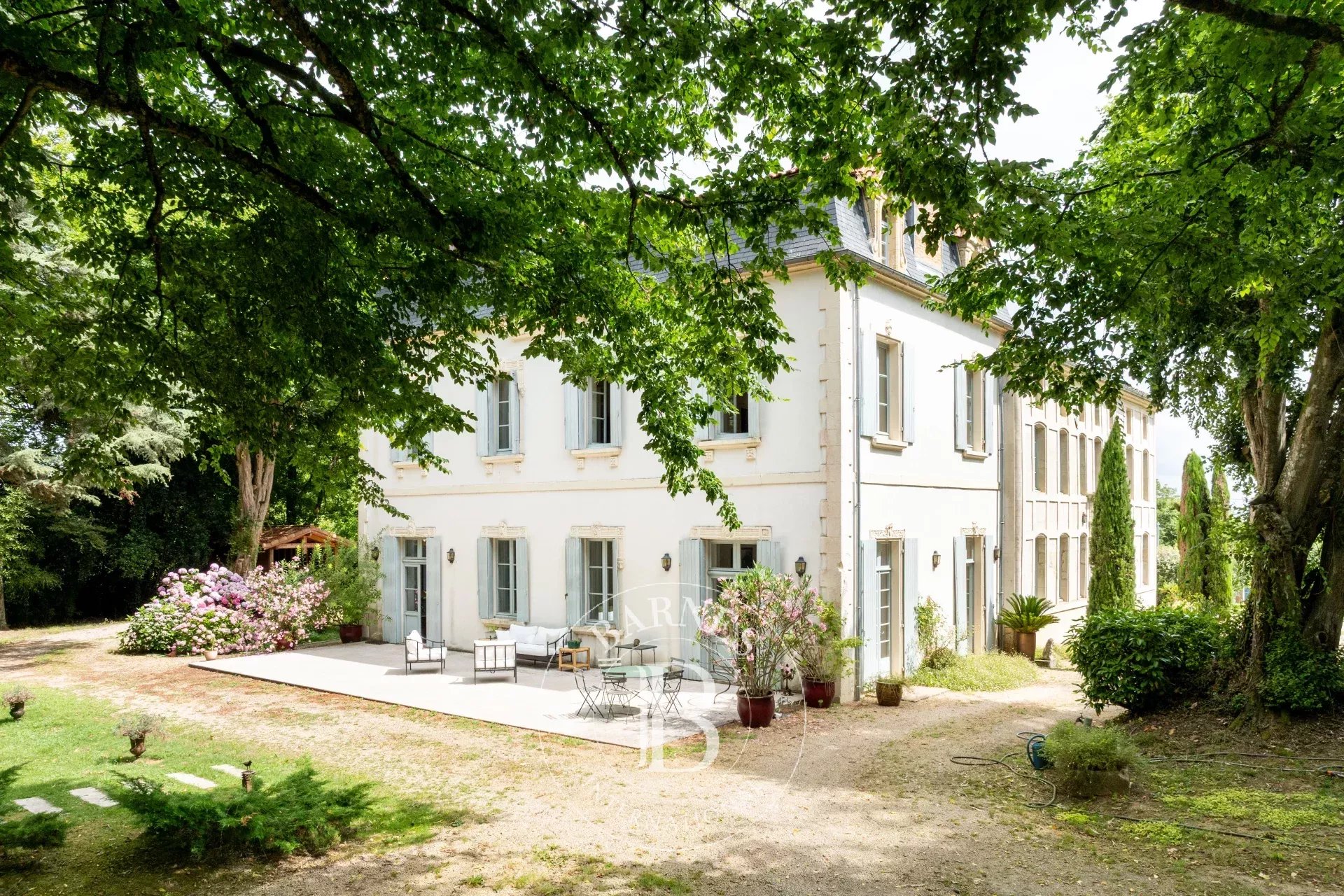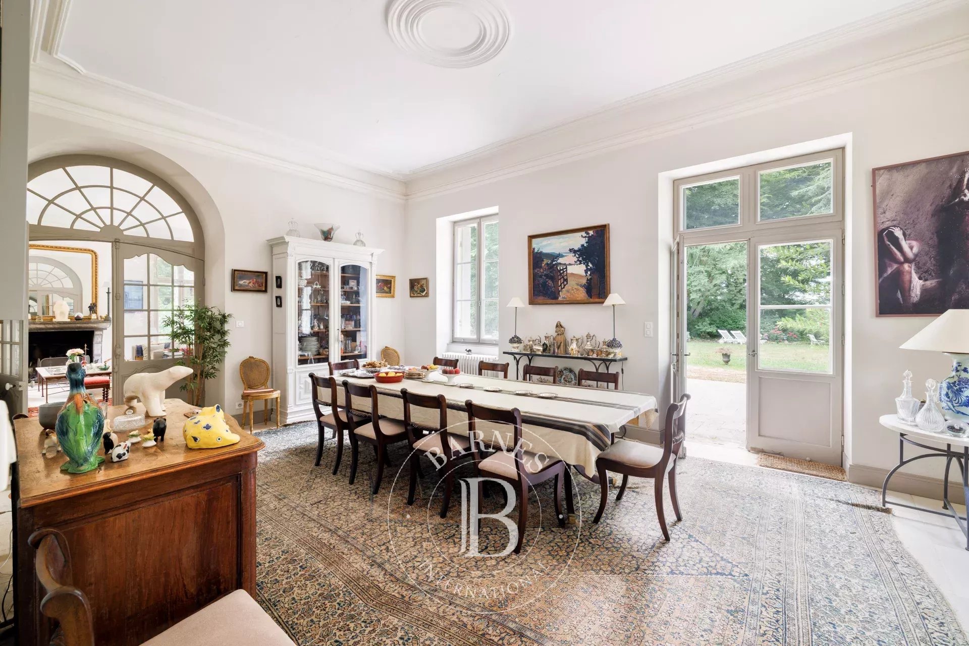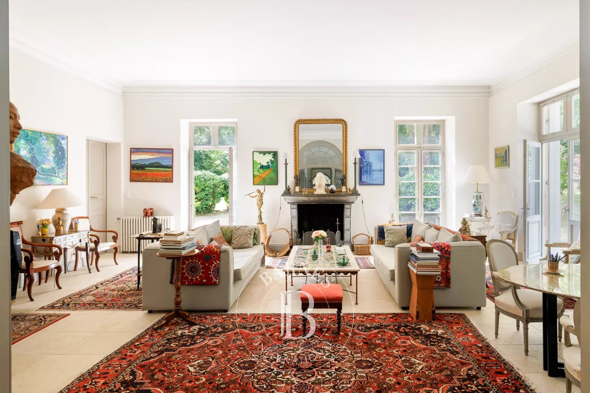 Located just 2 minutes from shops, this elegant family château, built around 1800 and in excellent condition, offers approximately 700 m² of living space set in 1.5 hectares of parkland.On the ground floor: a large entrance hall, 3 reception rooms including one of 56 m² with fireplace, a dining room, 2 fully equipped kitchens, and an independent apartment of about 38 m² with a bedroom, living room, and shower room. Stone or terracotta floors.On the first floor: 6 bedrooms and 5 bathrooms/shower rooms, a dressing room, a living room, and an office. Parquet floors.On the second floor: a vast 120 m² library and a dormitory of about 110 m².The property is very well maintained with refined decoration. Original moldings, doors, and staircase. Central oil heating, tiled and slate roof. Largely renovated in 2012. Option to purchase furnished.The park of about 1.5 hectares (with the possibility of acquiring an additional hectare) features century-old trees, cedars, oaks, beeches, and crape myrtles, as well as a labyrinth, hydrangeas, oleanders, and an orchard. Swimming pool 14x6m. 4-car garage, carport, and 2 garden sheds.Beaches of Les Landes are 45 minutes away, Hossegor 40 minutes, and Dax with its TGV station just 20 minutes.