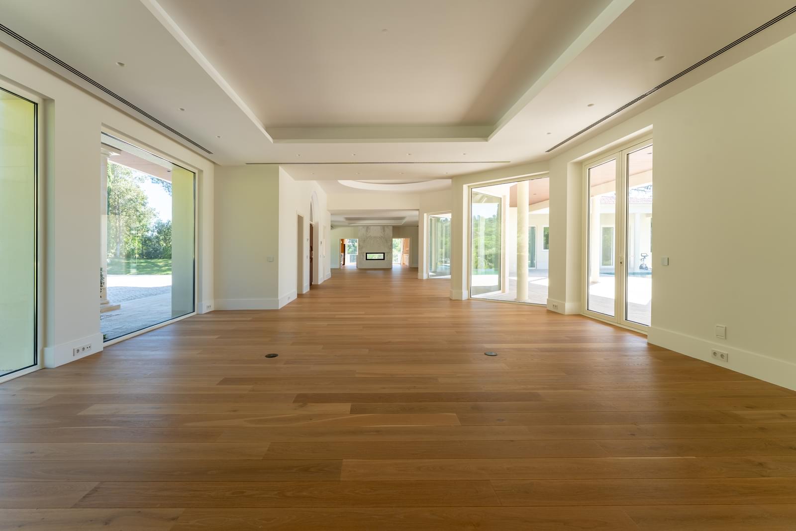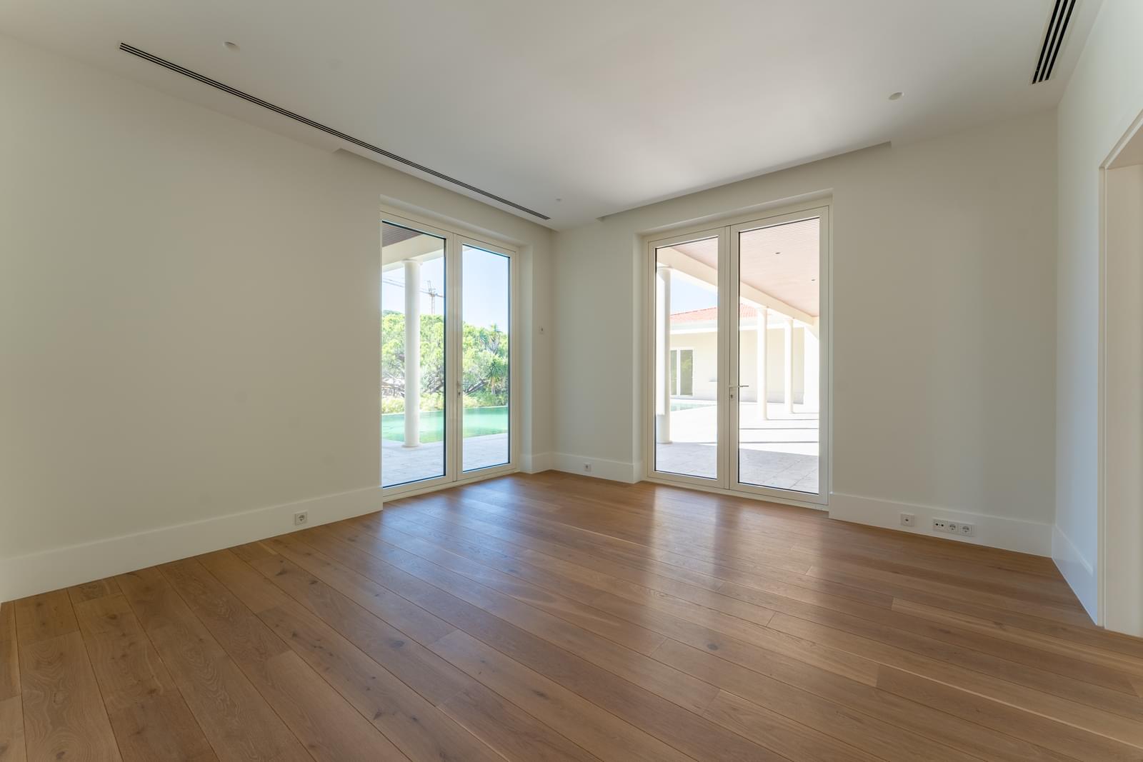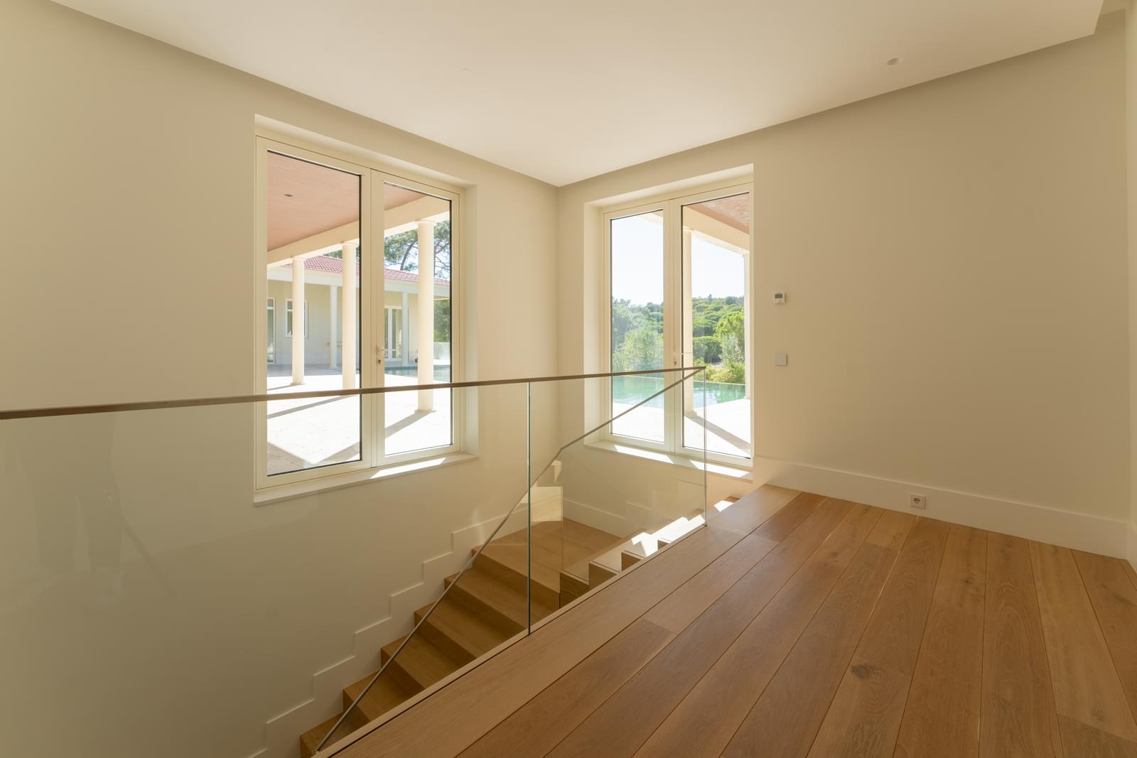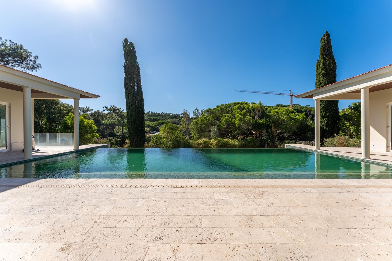 Fabulous 8 bedroom villa, inserted in one of the most prestigious condominiums in Portugal, Quinta Patino, with a 551 sqm private gross area, implanted in a 4.605 sqm plot of land, with an excellent sun exposure, swimming pool and garden. This property is one of the most impressive examples within one of the best and most prestigious private condominiums in Portugal. A magnificent mansion, facing south and recently completed, located on a plot of 4,600m2 with a construction area of over 700 m2, spread over two floors - basement, and ground floor with garage and swimming pool, cinema room and gym.Upon entering this state-of-the-art home, you are immediately confronted with contemporary and luxurious interiors, with unique details. From the Greek white Volkata marble in the bathrooms and handcrafted Nicolazzi faucets, as well as all the climate control done by air conditioning ducts and underfloor heating. Solid oak doors with magnet locks and indirect LED lighting all controlled by state-of-the-art simplified technology switches.The basement, located on the lower ground level, is bathed in 2 large wells of natural light, with independent and fully equipped accommodation for internal domestic workers or guests. On this floor there is also an independent space for a Gym, a cinema room and 2 large rooms that open onto interior gardens, as well as a large garage space.On the first floor we have a large oak kitchen, equipped with top equipment.A majestic entrance hall will divide a room of more than 100 meters with several environments. Transparent glass walls on the ground floor extend the huge living room with a fabulous view of the pool and garden, as well as all suites on this floor.Great focus was given to natural light, with intelligent solutions for upper windows that direct sunlight into the house, as well as automatic windows that open for natural ventilation or darken so as not to heat the house too much.Delight in expansive floor-to-ceiling windows, where light and airy open-plan living is the order of the day throughout the home, and where all main rooms feature unobstructed views of nature.The property extends along a plot of land circumscribed by natural landscape walls to create the maximum façade, exploiting the wonderful views of the garden and thus creating unique and 'infinite' open space interiors. The Bali stone-inspired infinity pool gives an impression of limitless spaciousness, surrounded by natural surroundings.Facing south with total privacy, it provides unforgettable sunsets for all occasions.Although imposing in form, the house silently merges with the landscape, providing a unique perspective on nature associated with complete privacy.Quinta do Patino is today one of the most sophisticated and intimate condominiums in Portugal, with more than 50 hectares endowed with lush vegetation — of which the stone pine and olive groves stand out.Far beyond luxury housing, residents here cultivate a unique lifestyle, with all the tranquility of the countryside, so close to the seaside.At your disposal are many kilometers of trails and maintenance circuits, a football field with synthetic turf, a children's playground, a gym, three tennis courts, a lake and a communal swimming pool.Discretion and privacy are imperative, which is why the condominium's security system is active 24 hours a day, 365 days a year, including permanent patrols along extensive kilometers of road.Quinta do Patino is flanked by the Estoril Golf Club, conveniently located 5 minutes from the center of Estoril and just 2 minutes from the entrance to the A5 motorway.