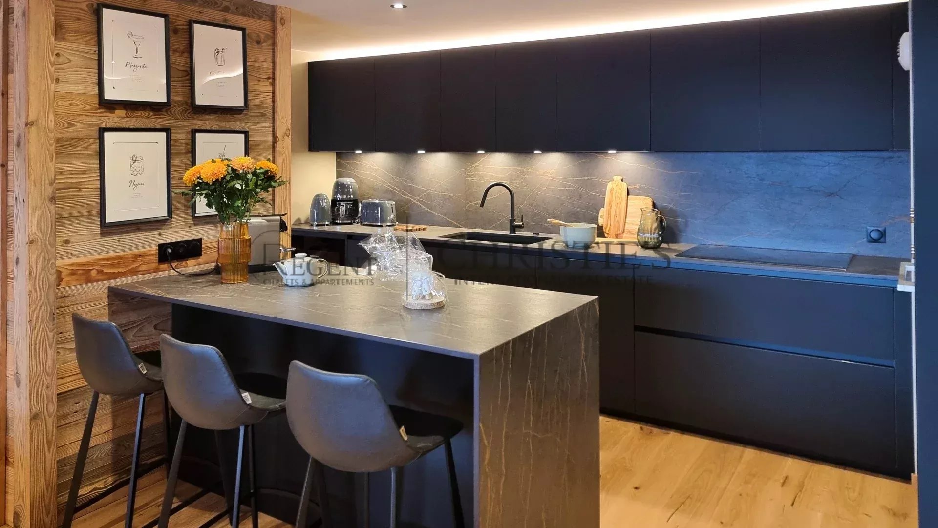 Built using noble materials such as old wood and stone, this top-of-the-range residence reflects the charm and soul of Alpine chalets while incorporating modern features. A lift serves every level for optimum comfort, and basement parking is provided to make your day-to-day life easier.