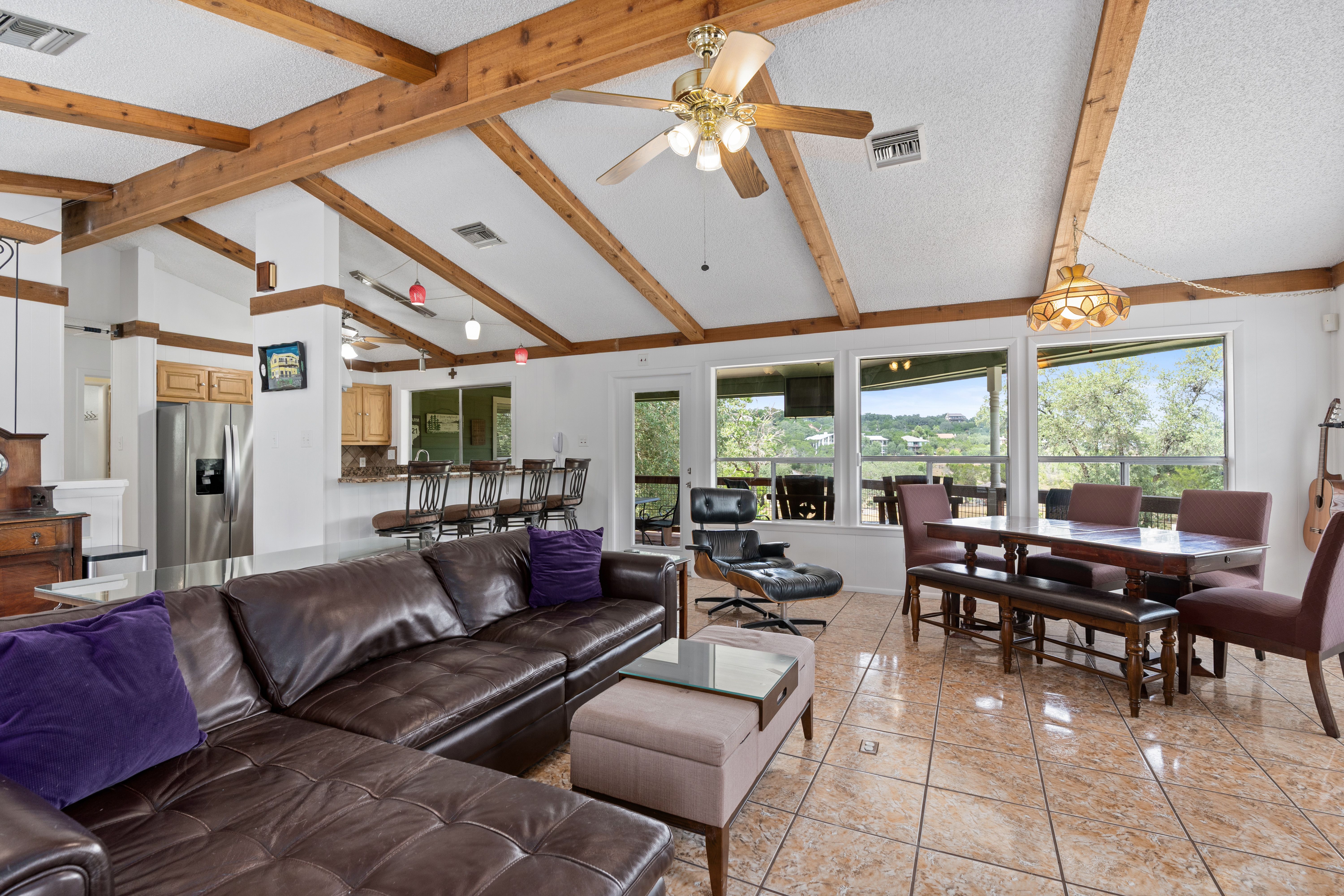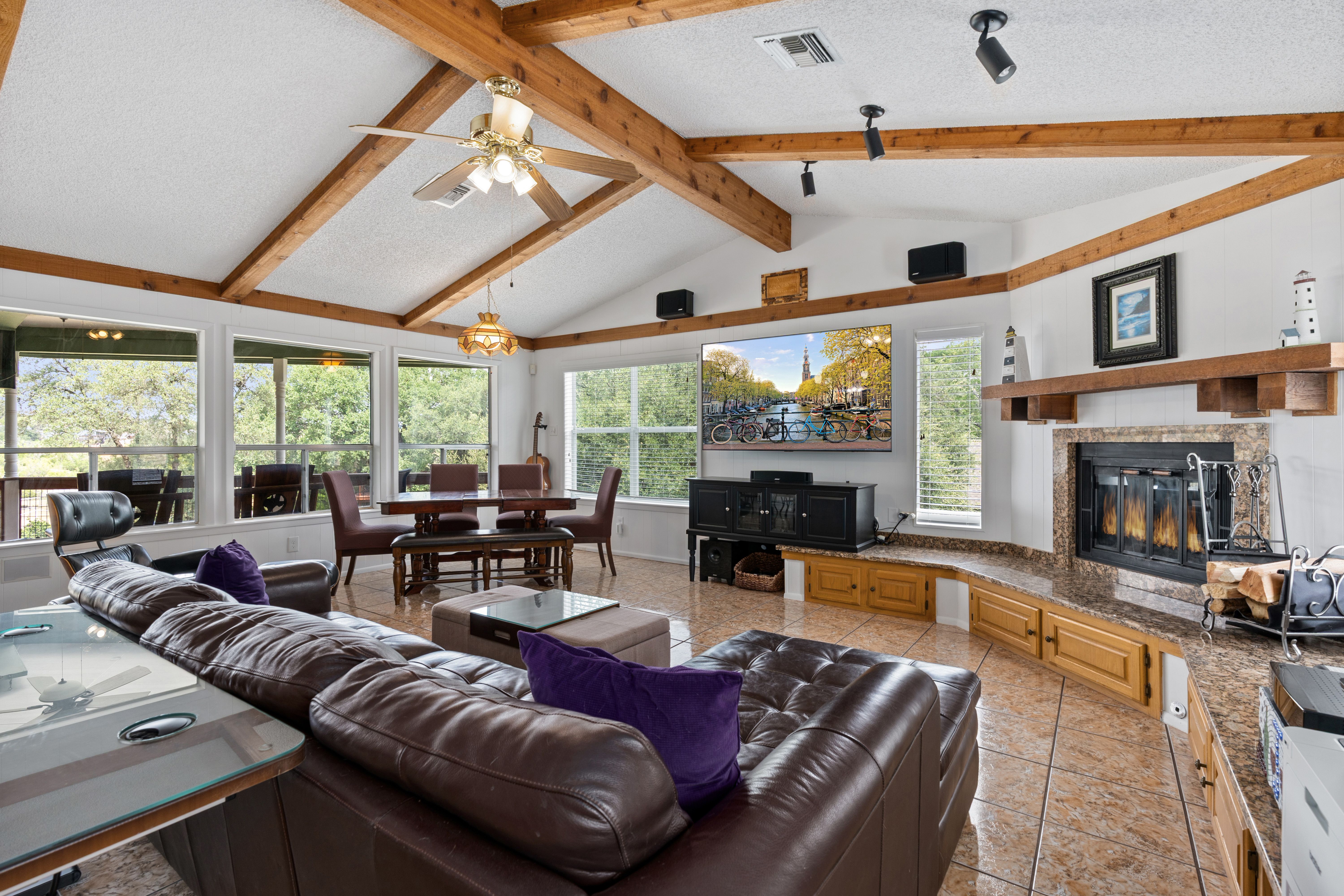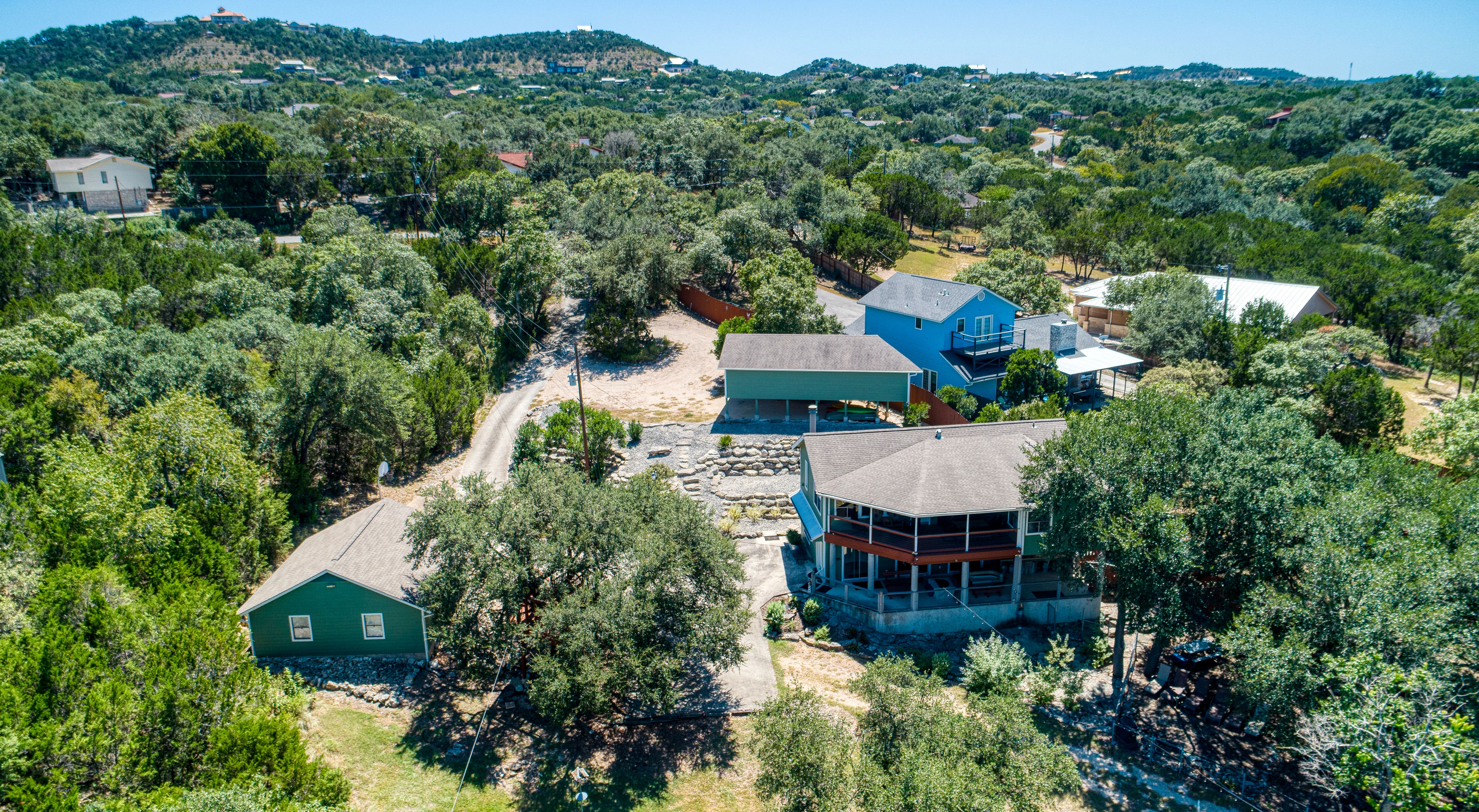 This is your chance to own a one-of-a-kind waterfront retreat with 275 feet of shoreline on the south side of the lake! Nestled on nearly 3 acres—two platted lots combined into one—this property offers unmatched space and privacy.Outdoor living takes center stage at 407 Nancy, with a gravel road for vehicle access to the water’s edge, two expansive decks, a bocce court, and a charming gazebo. Inside, the home boasts a bright, open layout with the living room, kitchen, dining area, primary suite, and a secondary bedroom all on the main level. The lower level features a large bedroom, a full bath, a versatile flex space, and an office that can easily serve as a fourth bedroom. Both living spaces open to covered patios- where you can soak in sweeping views of the lake and surrounding hills. Practicality meets convenience with abundant storage and parking, including a detached oversized two-car garage, covered boat storage, and a fully fenced property. A dedicated dog run with direct access to the home makes it pet-friendly, too. Located near the Turkey Cove boat ramp, this lake house offers easy access to the water. It is just a short drive to Canyon Lake’s dining and entertainment, the Guadalupe River, New Braunfels, Gruene, and Whitewater Amphitheater. Whether you’re looking for a full-time residence, a weekend getaway, or an income-producing short-term rental, this property delivers. A true lakeside paradise—don’t miss this rare opportunity!