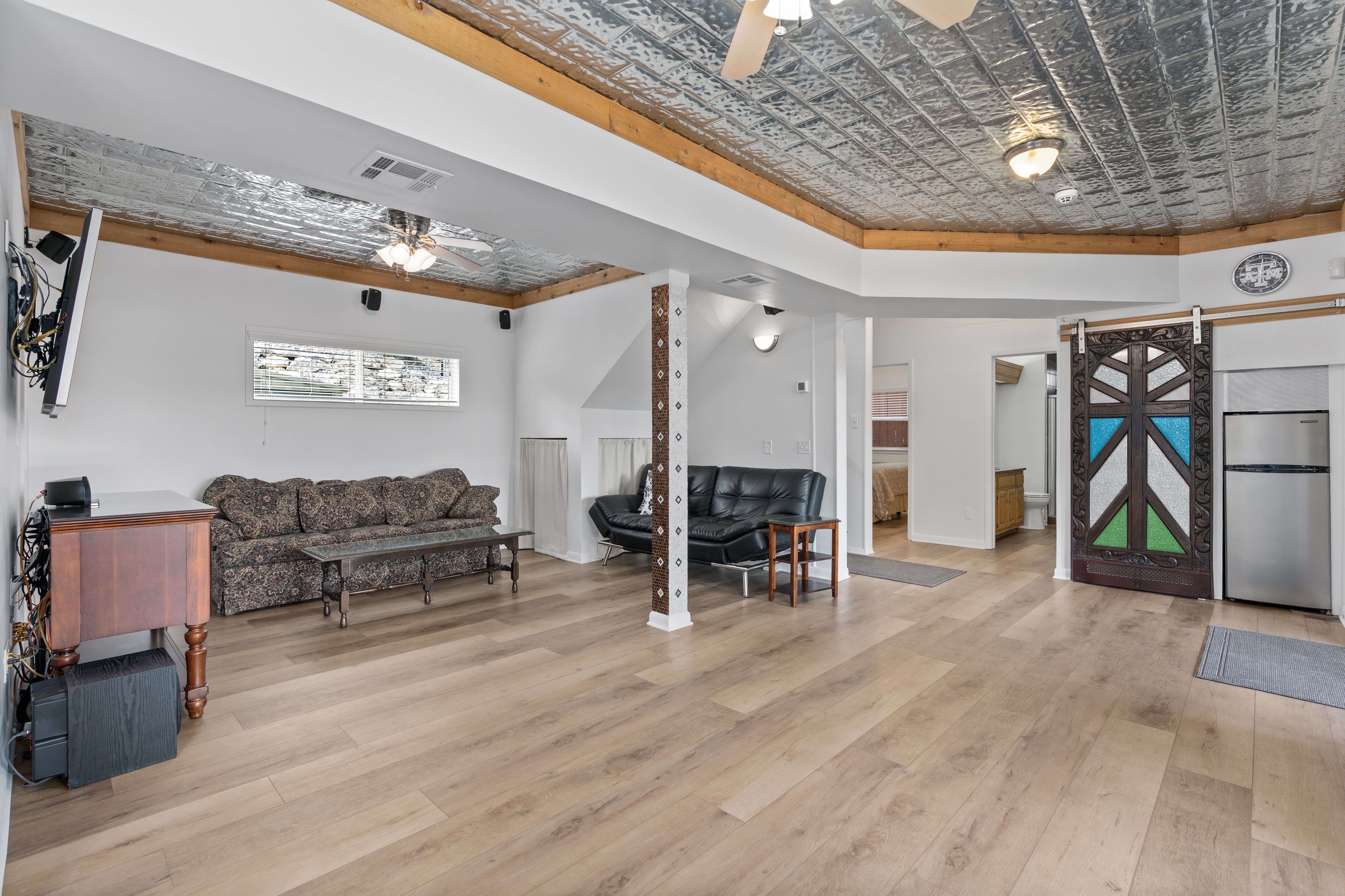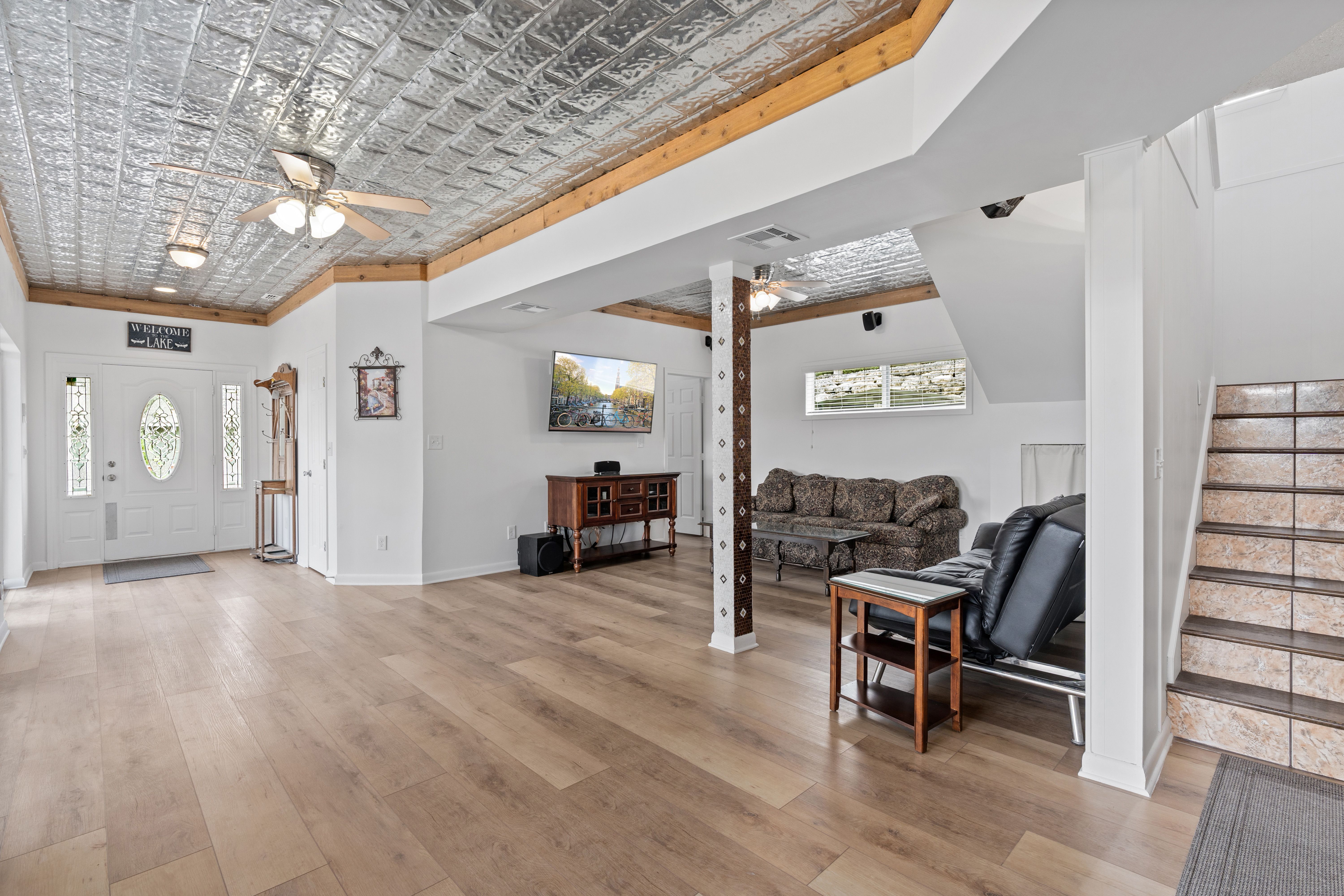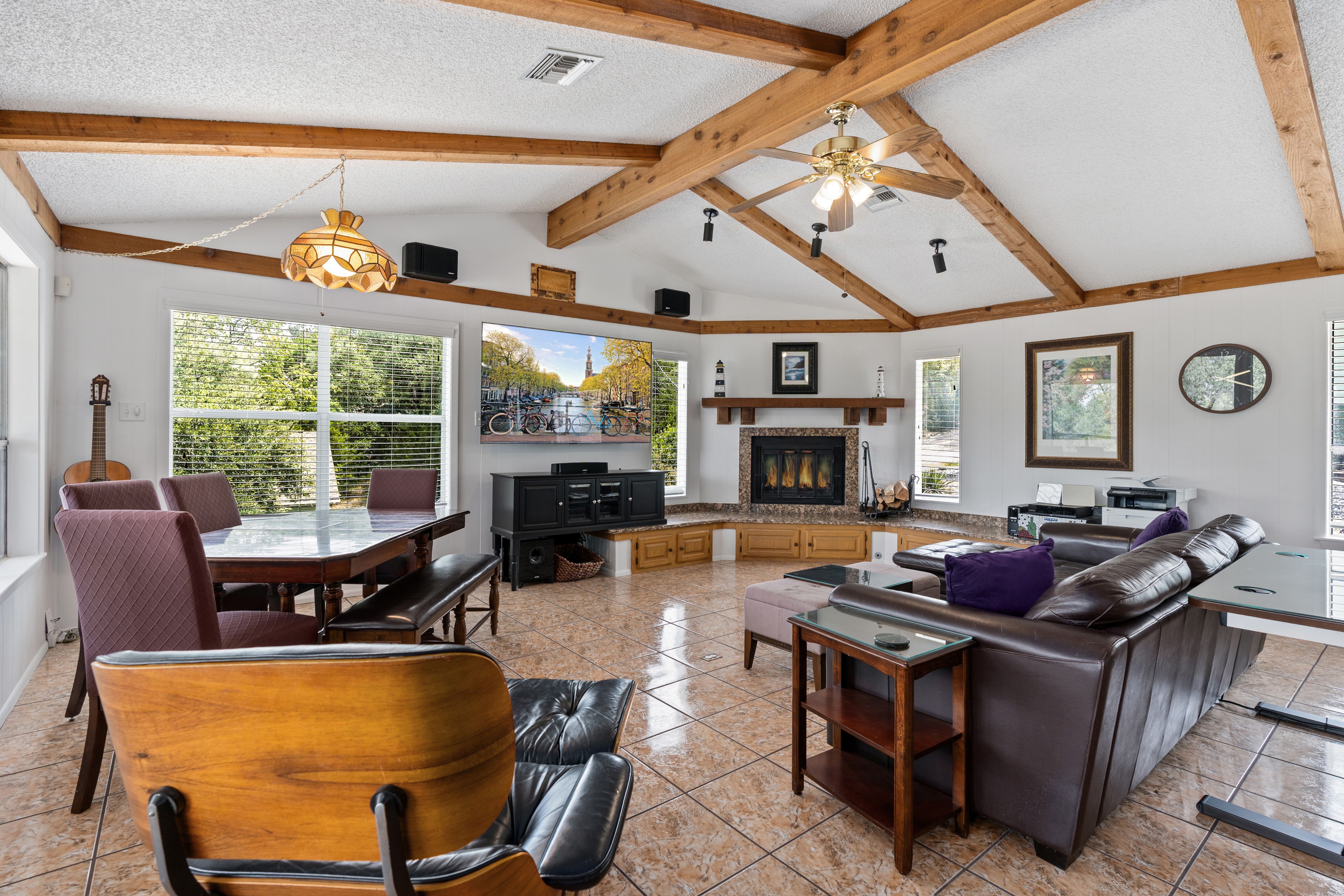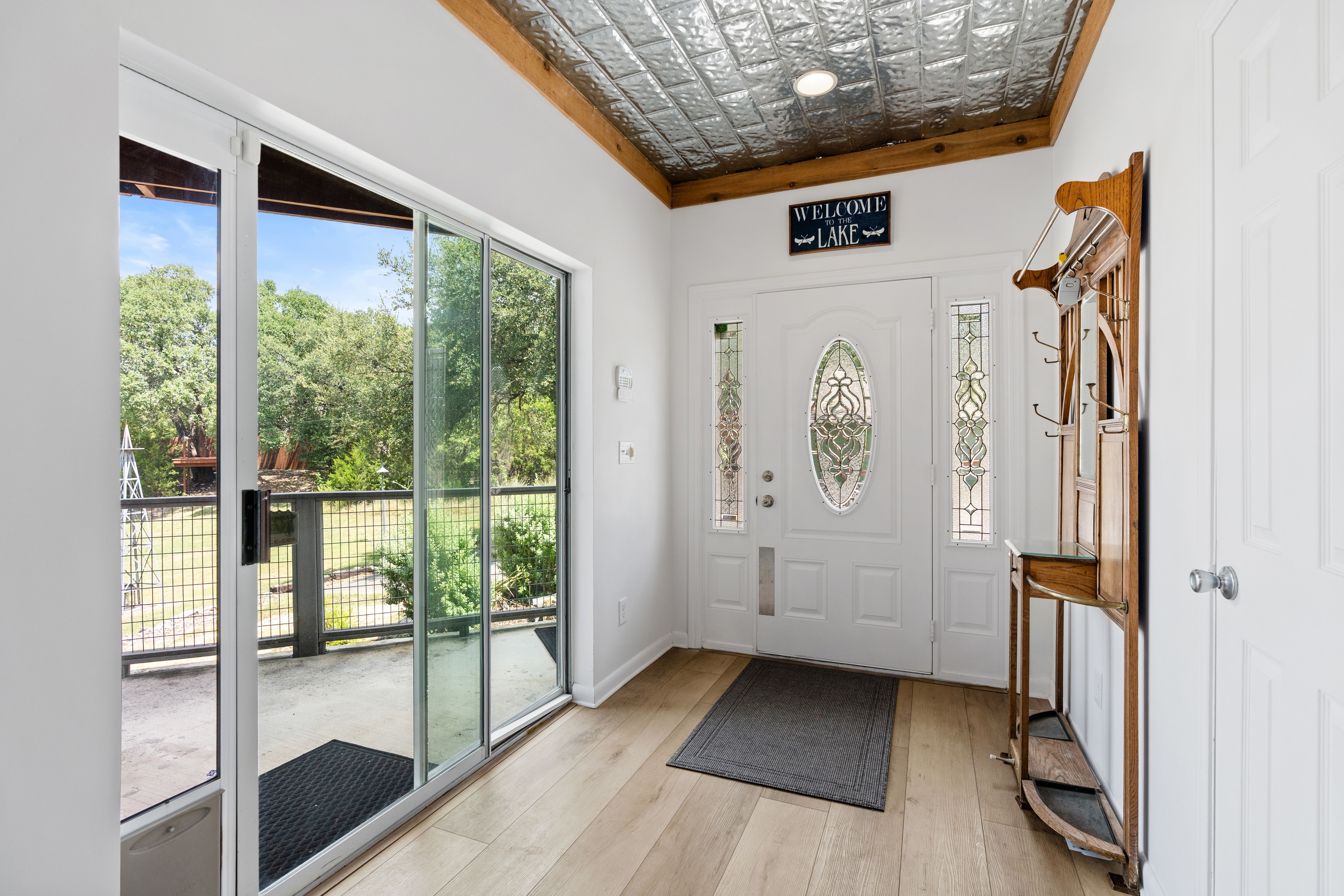 This is your chance to own a one-of-a-kind waterfront retreat with 275 feet of shoreline on the south side of the lake! Nestled on nearly 3 acres—two platted lots combined into one—this property offers unmatched space and privacy.Outdoor living takes center stage at 407 Nancy, with a gravel road for vehicle access to the water’s edge, two expansive decks, a bocce court, and a charming gazebo. Inside, the home boasts a bright, open layout with the living room, kitchen, dining area, primary suite, and a secondary bedroom all on the main level. The lower level features a large bedroom, a full bath, a versatile flex space, and an office that can easily serve as a fourth bedroom. Both living spaces open to covered patios- where you can soak in sweeping views of the lake and surrounding hills. Practicality meets convenience with abundant storage and parking, including a detached oversized two-car garage, covered boat storage, and a fully fenced property. A dedicated dog run with direct access to the home makes it pet-friendly, too. Located near the Turkey Cove boat ramp, this lake house offers easy access to the water. It is just a short drive to Canyon Lake’s dining and entertainment, the Guadalupe River, New Braunfels, Gruene, and Whitewater Amphitheater. Whether you’re looking for a full-time residence, a weekend getaway, or an income-producing short-term rental, this property delivers. A true lakeside paradise—don’t miss this rare opportunity!