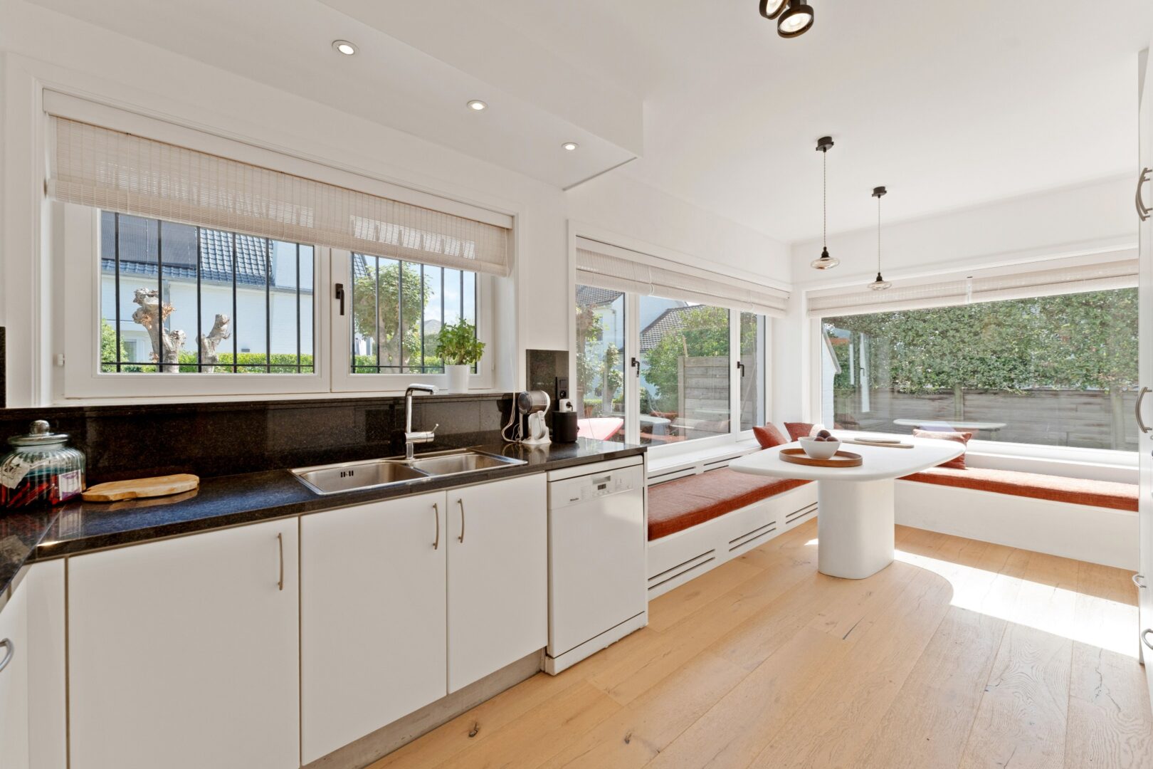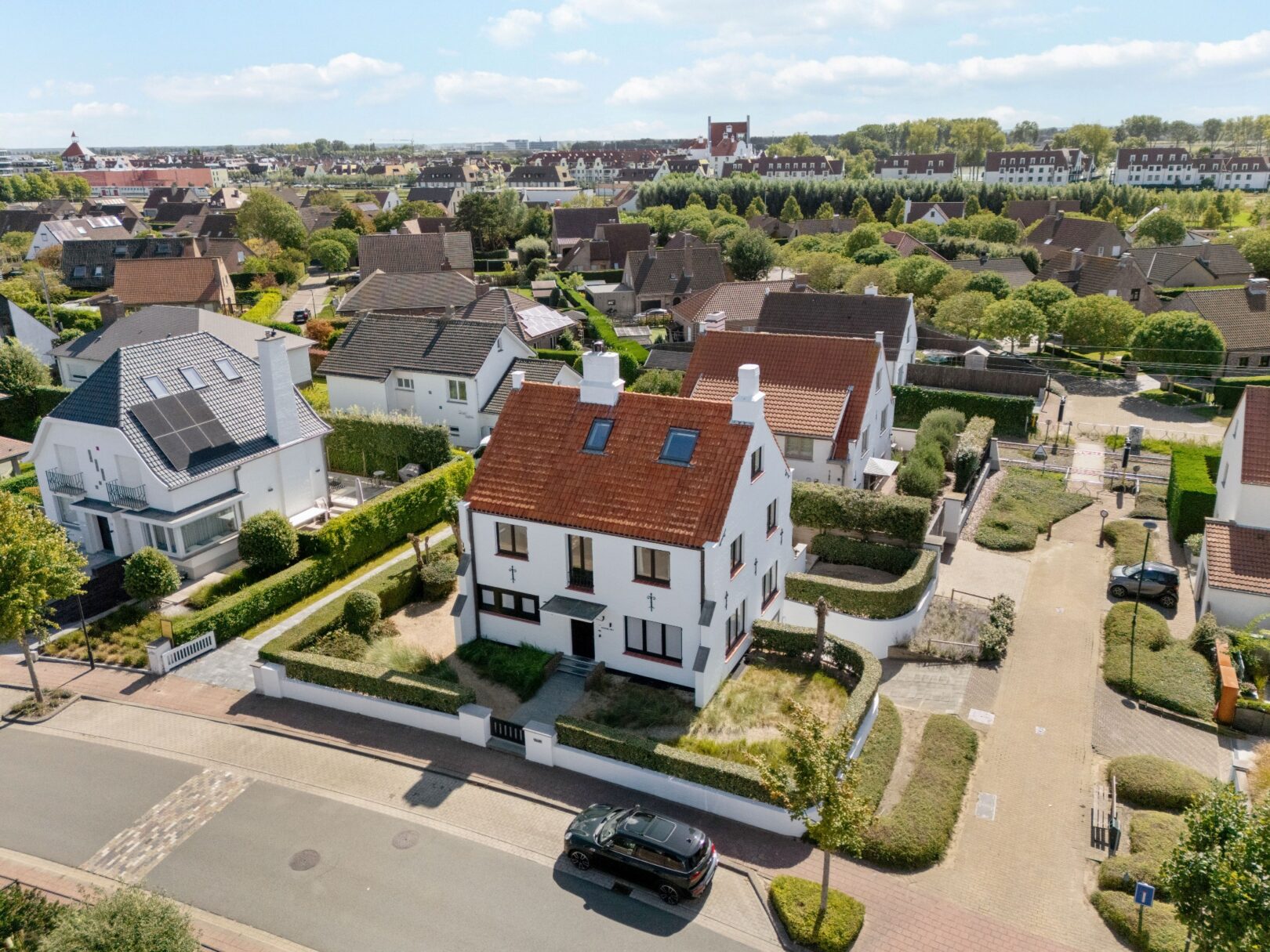 In this prestigious and peaceful avenue in Knokke, near the Zegemeer, we present to you this magnificent villa. Thanks to its excellent location, you will live within walking distance of the seawall, the bustling shops of Knokke-Heist, and at the same time enjoy a green, residential environment. Here you experience the best of both worlds: peace and privacy, with all amenities and the beach within reach.Upon entering the house, you will be greeted by a charming entrance hall with a guest toilet. The spacious living room is bathed in natural light and offers a cozy sitting and dining area with direct access to the sunny, well-maintained garden and inviting terrace. The separate kitchen is fully equipped and has a practical dining area, ideal for daily use.On the first floor, you will reach a landing with three full bedrooms and an extra room that can be used as a children's room, office, or dressing room. The bathroom is equipped with a bathtub with a shower screen, double sink, and toilet.The second floor is fully furnished as a luxurious master bedroom with built-in closets and an ensuite bathroom, equipped with a bathtub, walk-in shower, double sink, and toilet. This floor forms a comfortable and stylish private space.The villa is fully basemented, providing plenty of extra storage space. In addition, the property has an exceptionally spacious garage, accessible via the driveway. An additional asset is the installation of solar panels, which contributes to a favorable EPC score and lower energy costs.This villa combines an absolute top location with space, light, and comfort, a unique opportunity for those looking for a high-quality home in Knokke.